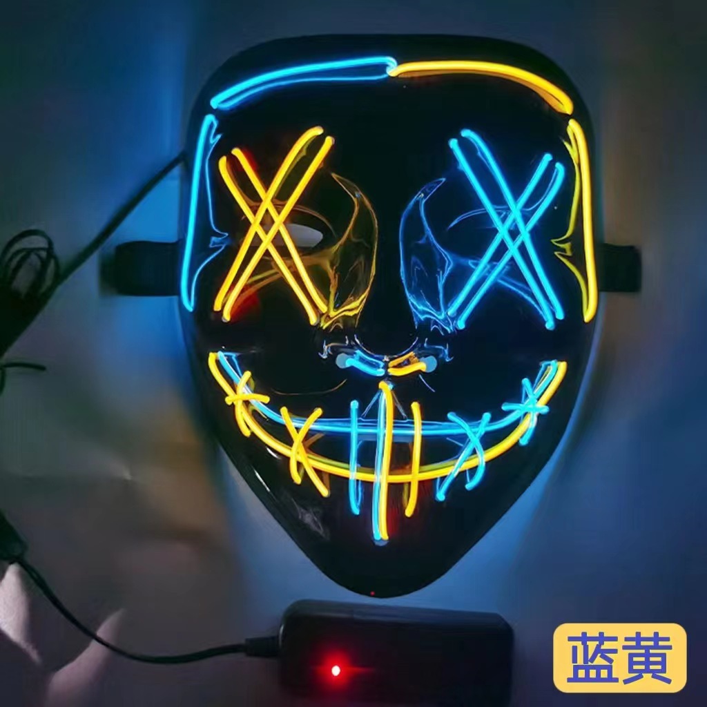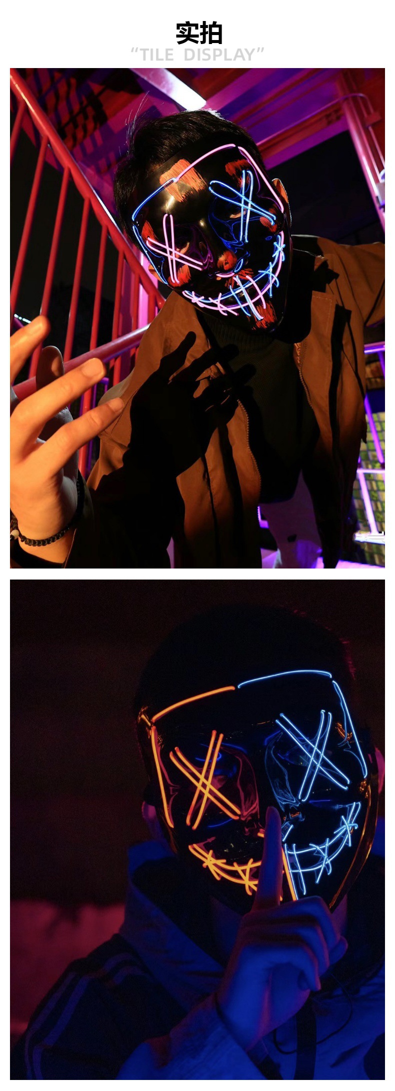跨境亚马逊led发光黑V字面具冷光万圣节面具鬼步舞发光面具现货