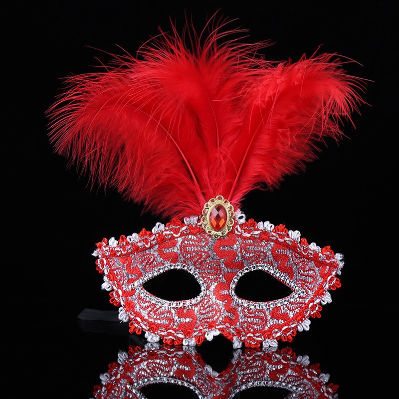 万圣节半脸面具女式化妆舞会面具塑料面具派对装扮皮质羽毛面罩