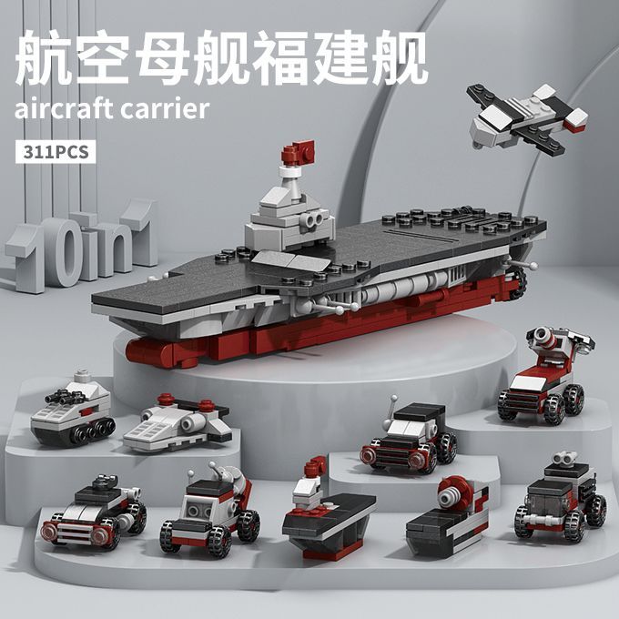 兼容乐高积木小颗粒创意拼装益智玩具儿童男孩消防车航空母舰模型