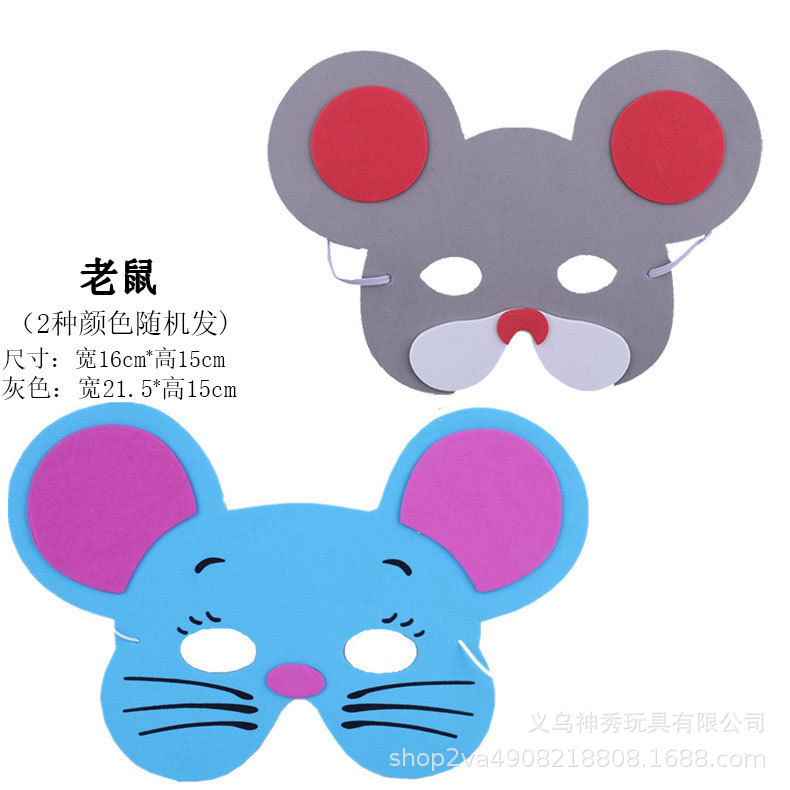EVA动物卡通半脸面具表演道具老鼠猴子青蛙猫狗兔面罩