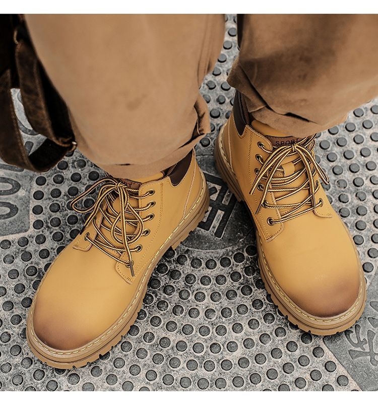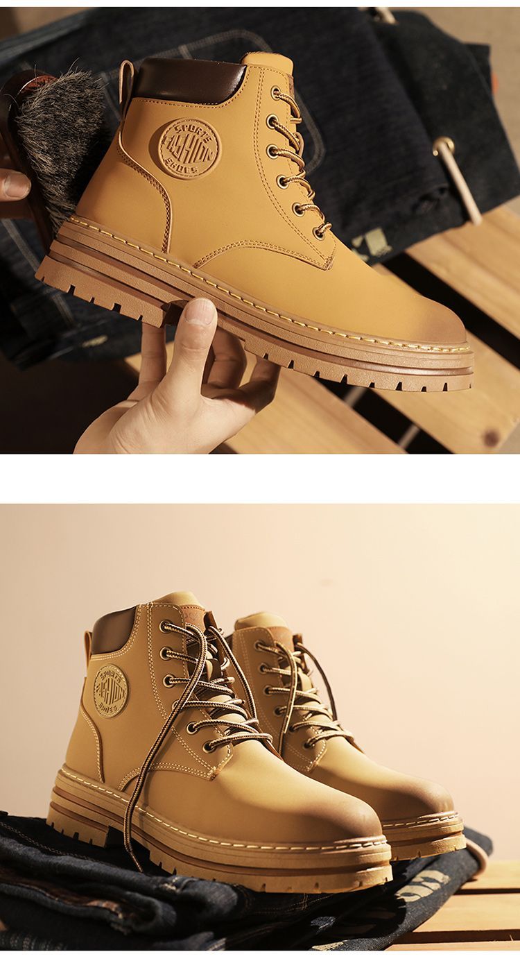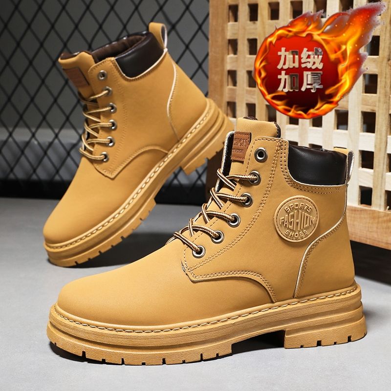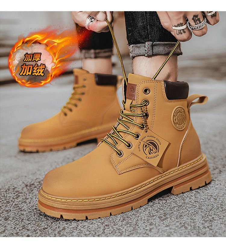 鞋子男款大棉鞋马丁大黄靴男秋冬厚底切尔西英伦风工装靴防水防滑