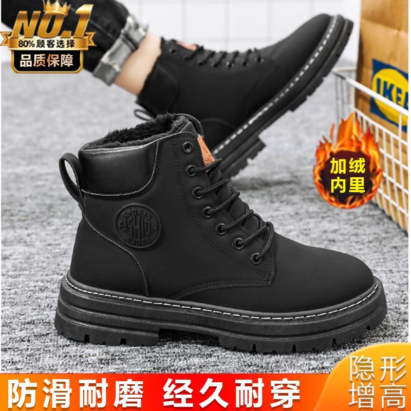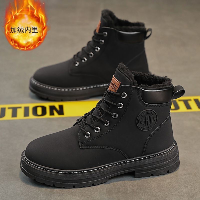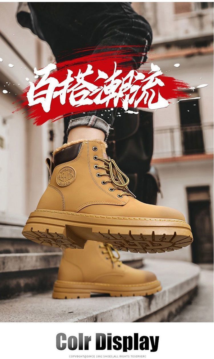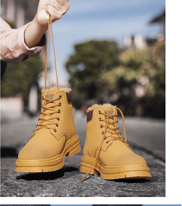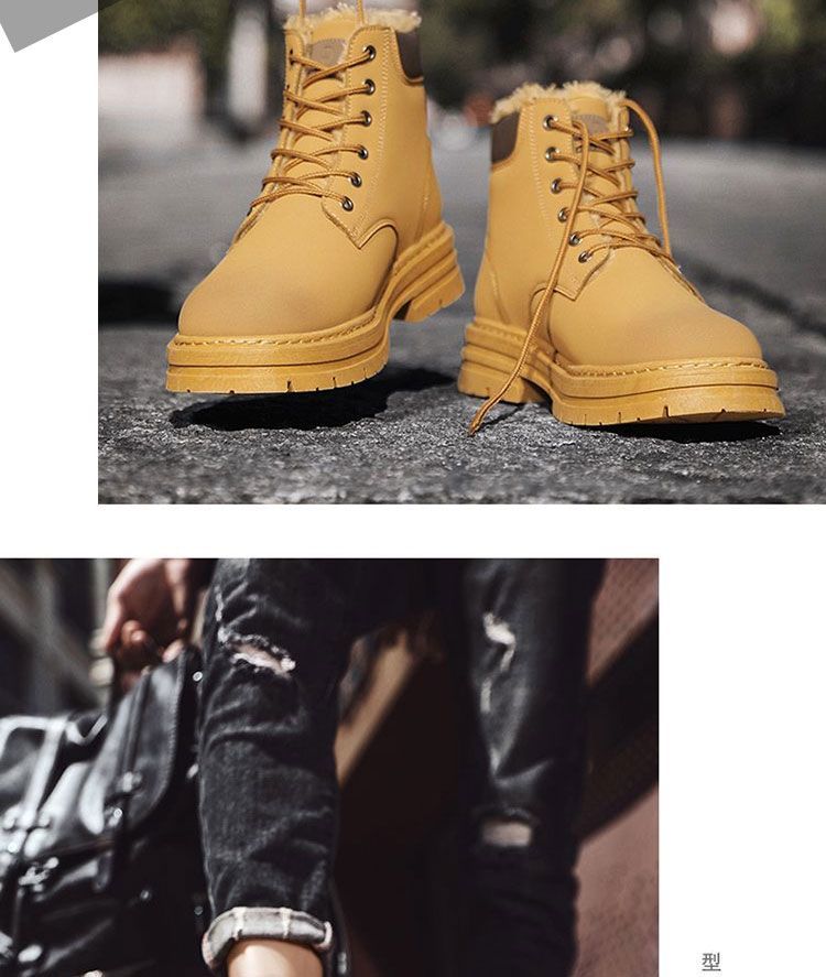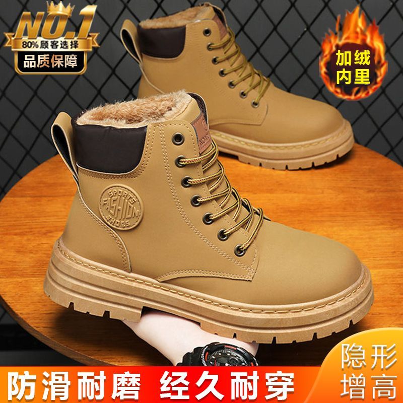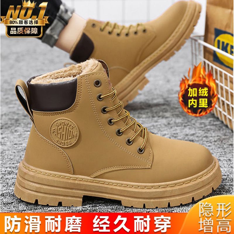 马丁靴男款冬季加绒复古休闲工装大黄靴防滑耐磨雪地靴男棉鞋男鞋