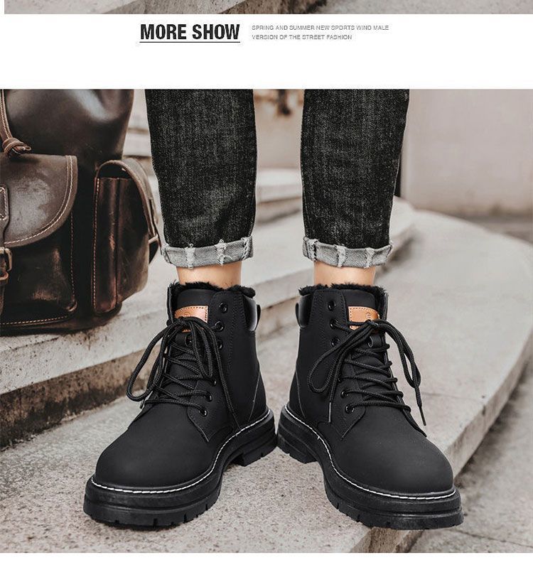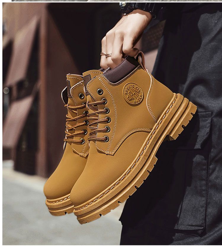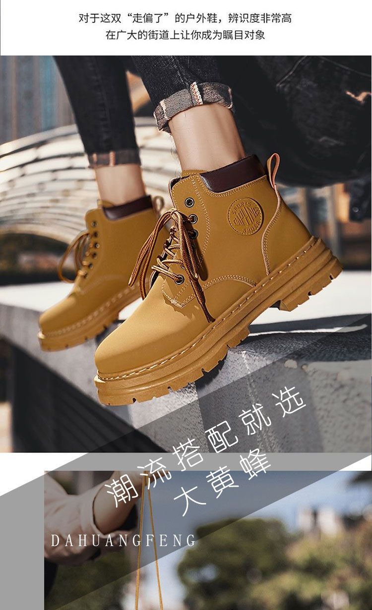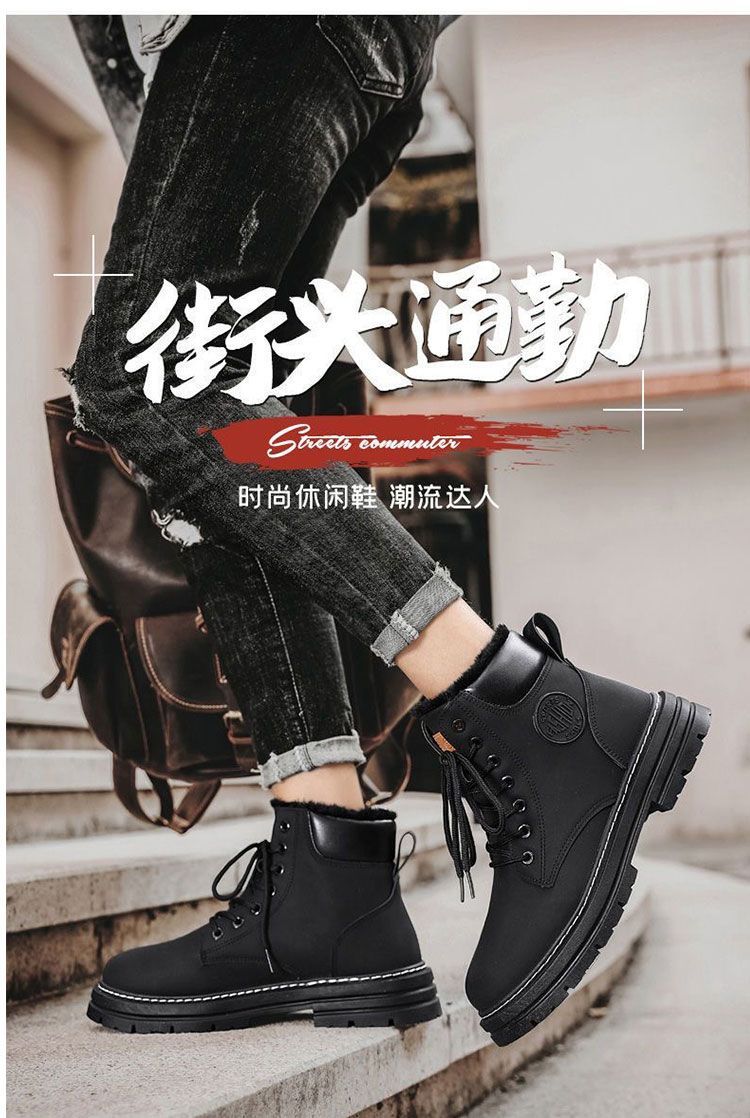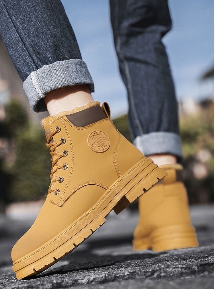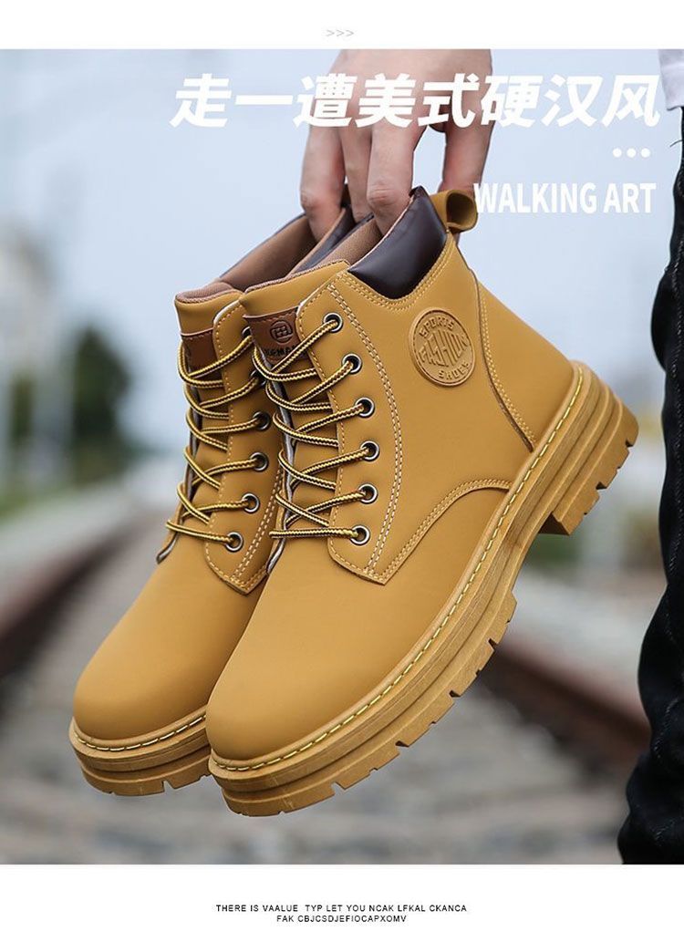马丁靴男款冬季加绒复古休闲工装大黄靴防滑耐磨雪地靴男棉鞋男鞋
