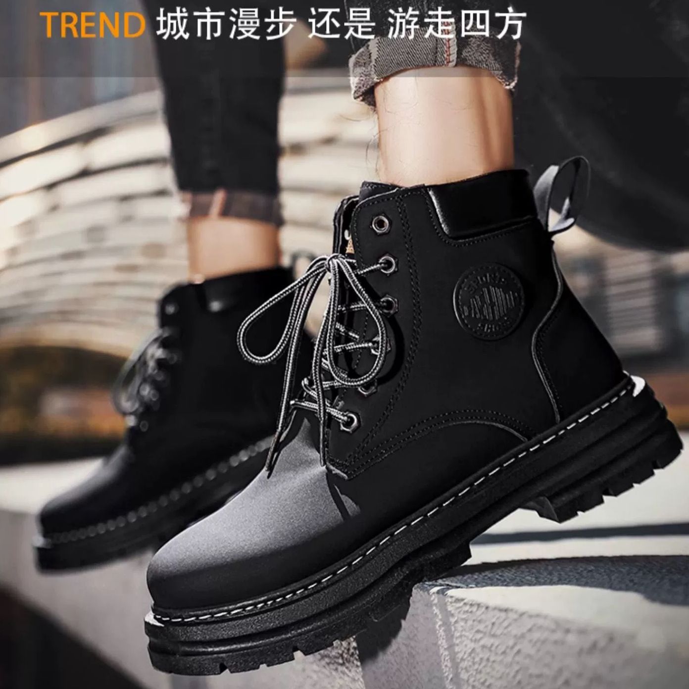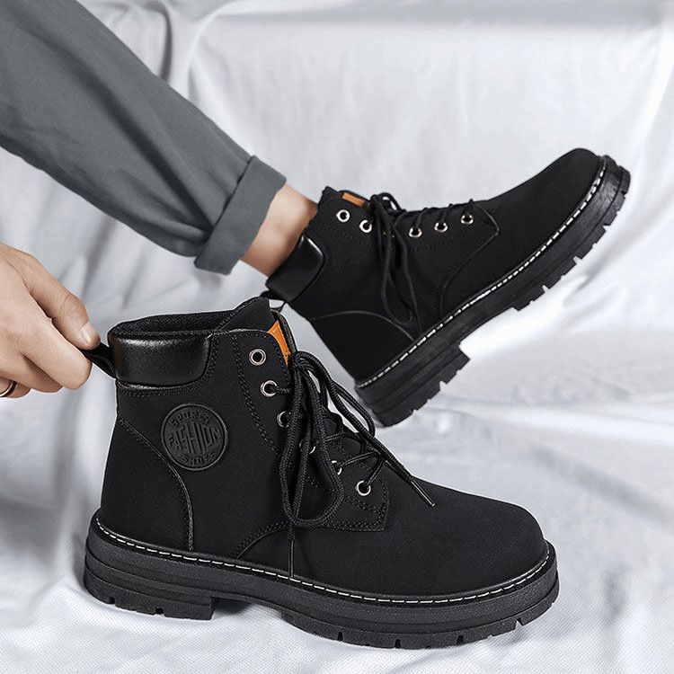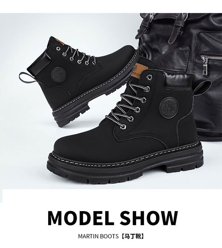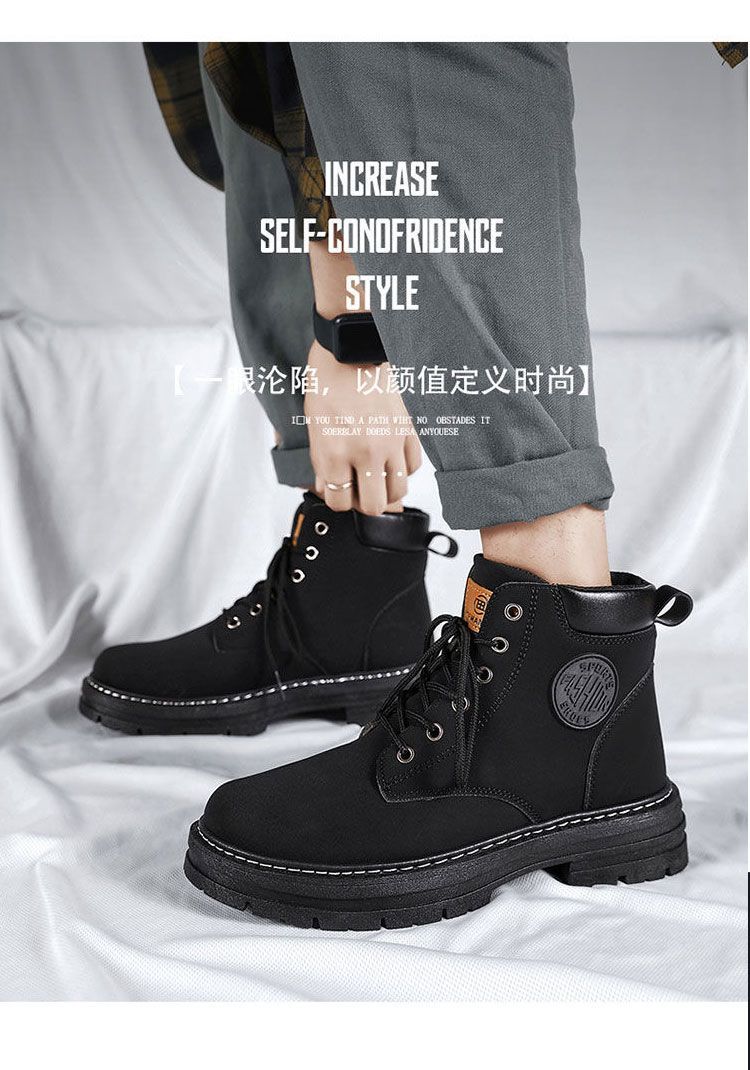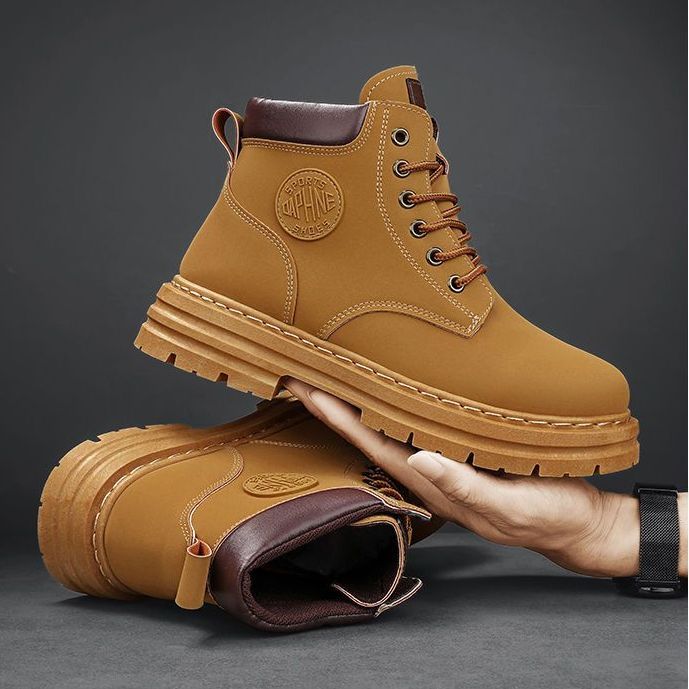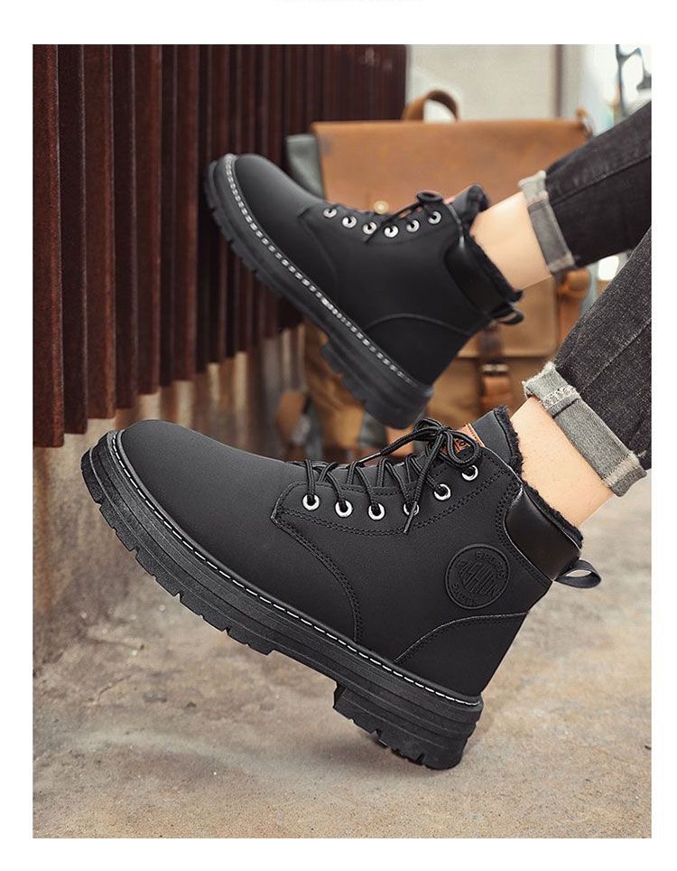 马丁靴男款冬季加绒复古休闲工装大黄靴防滑耐磨雪地靴男棉鞋男鞋