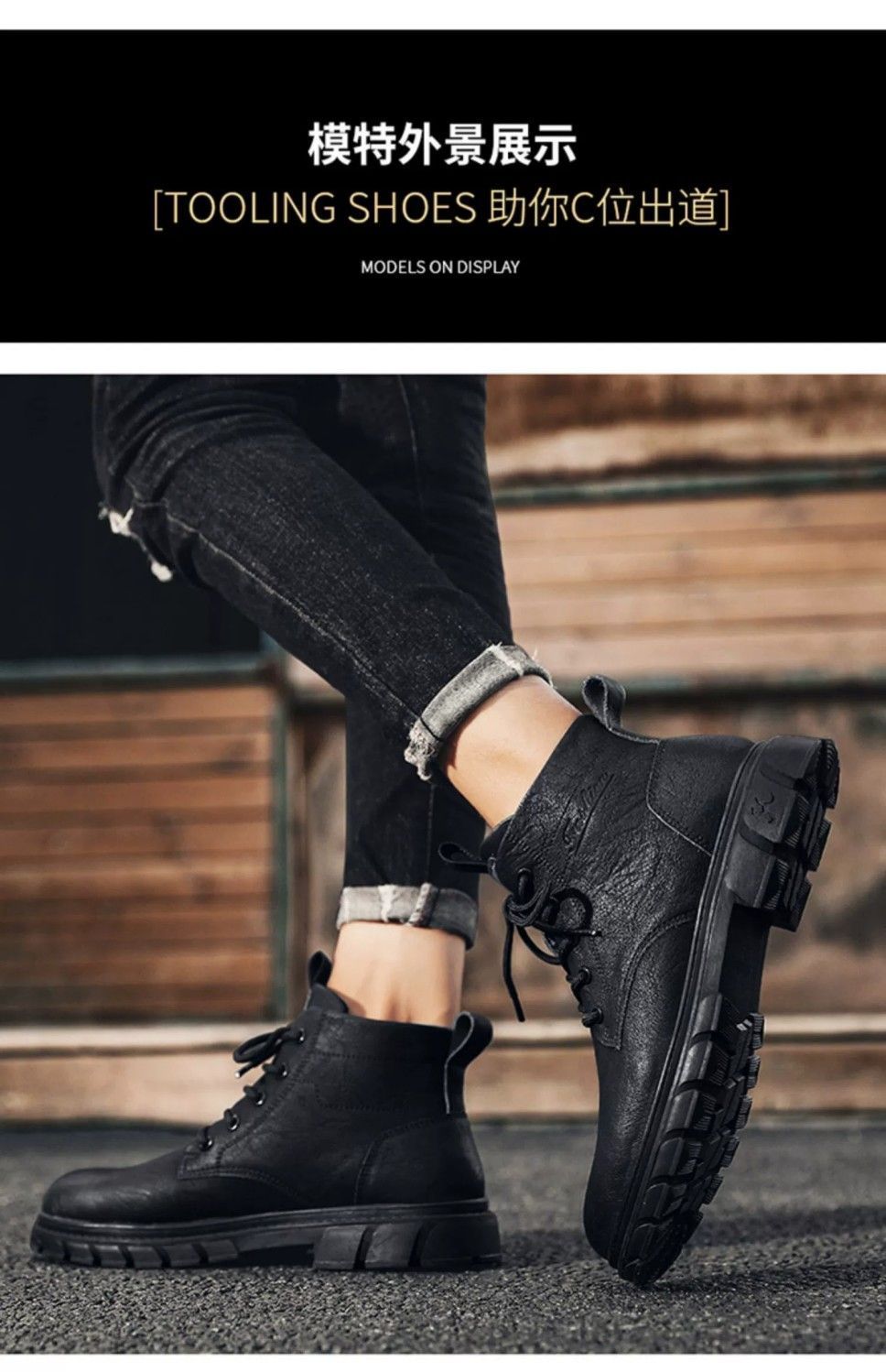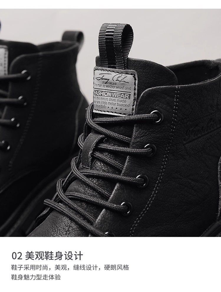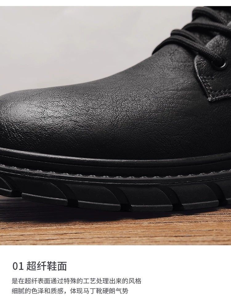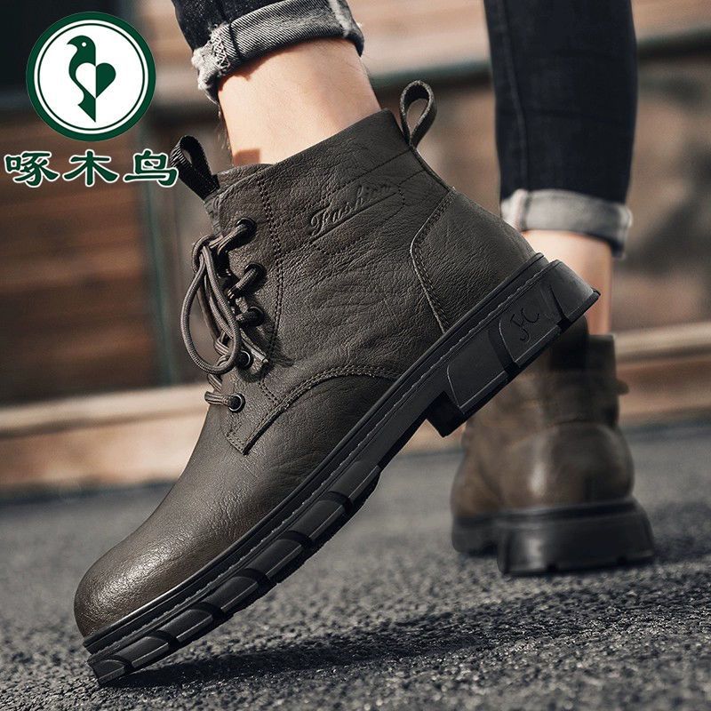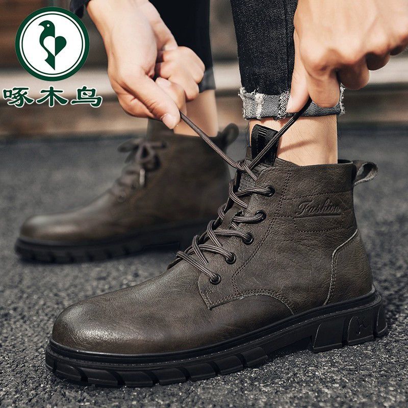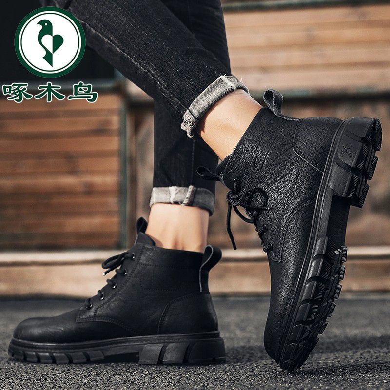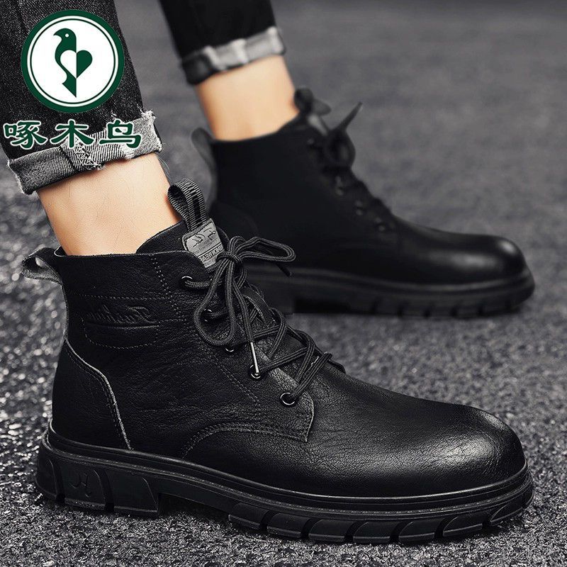 啄木鸟断码真皮马丁靴男2024秋季新款英伦风中帮皮鞋黑色工装靴男