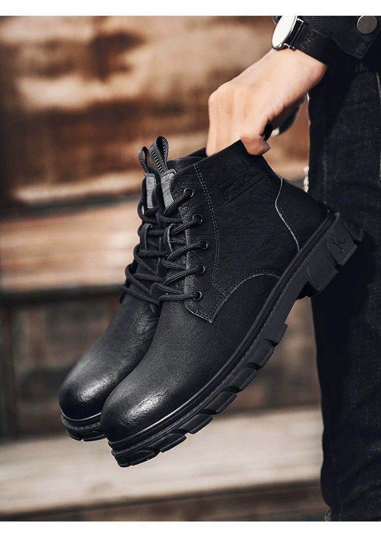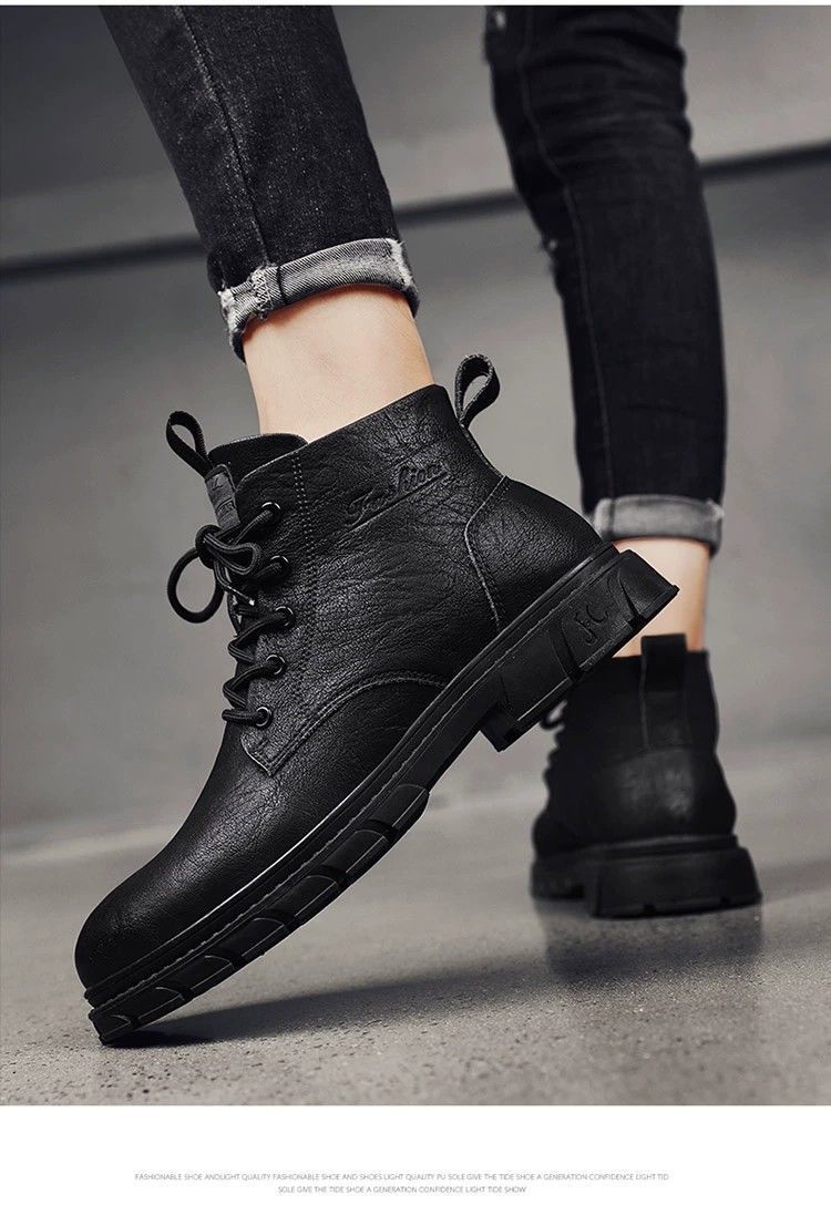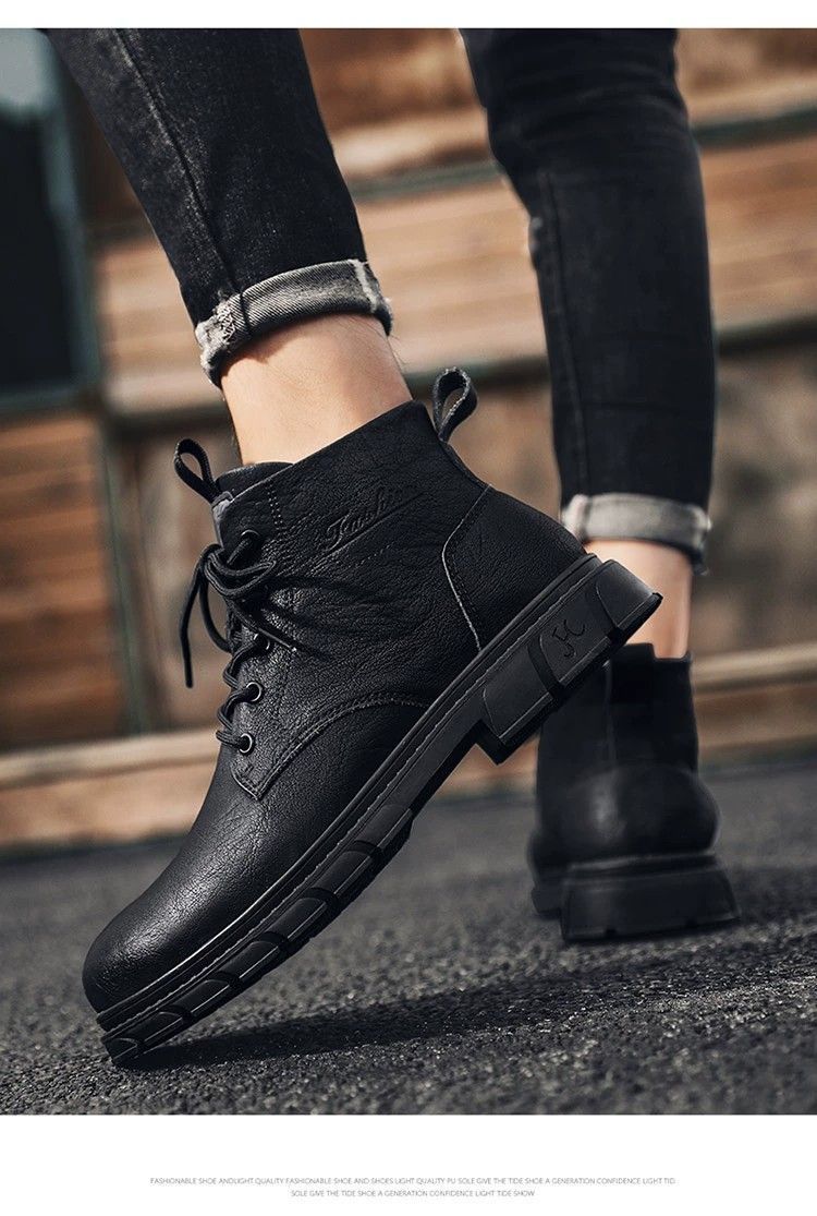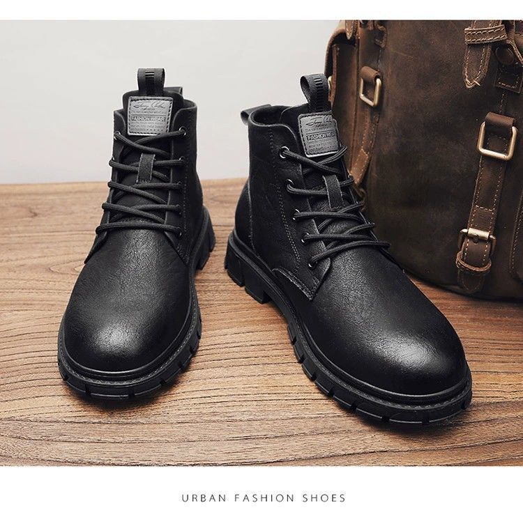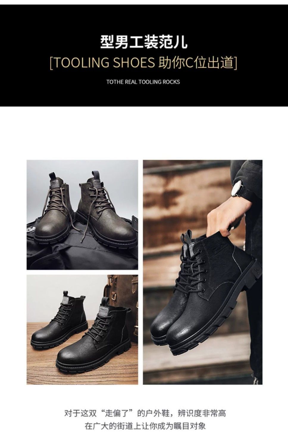 啄木鸟断码真皮马丁靴男2024秋季新款英伦风中帮皮鞋黑色工装靴男