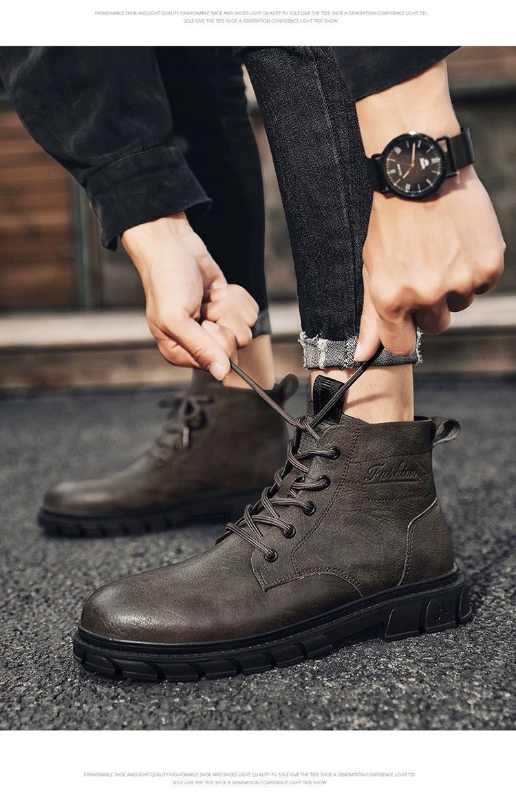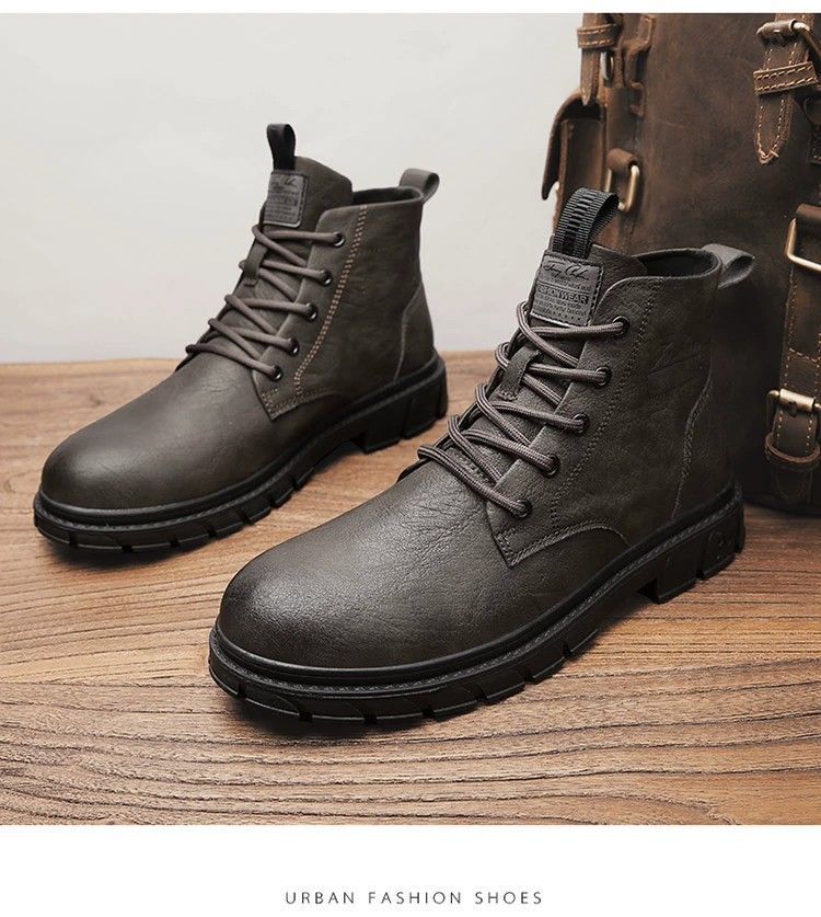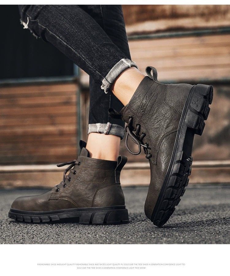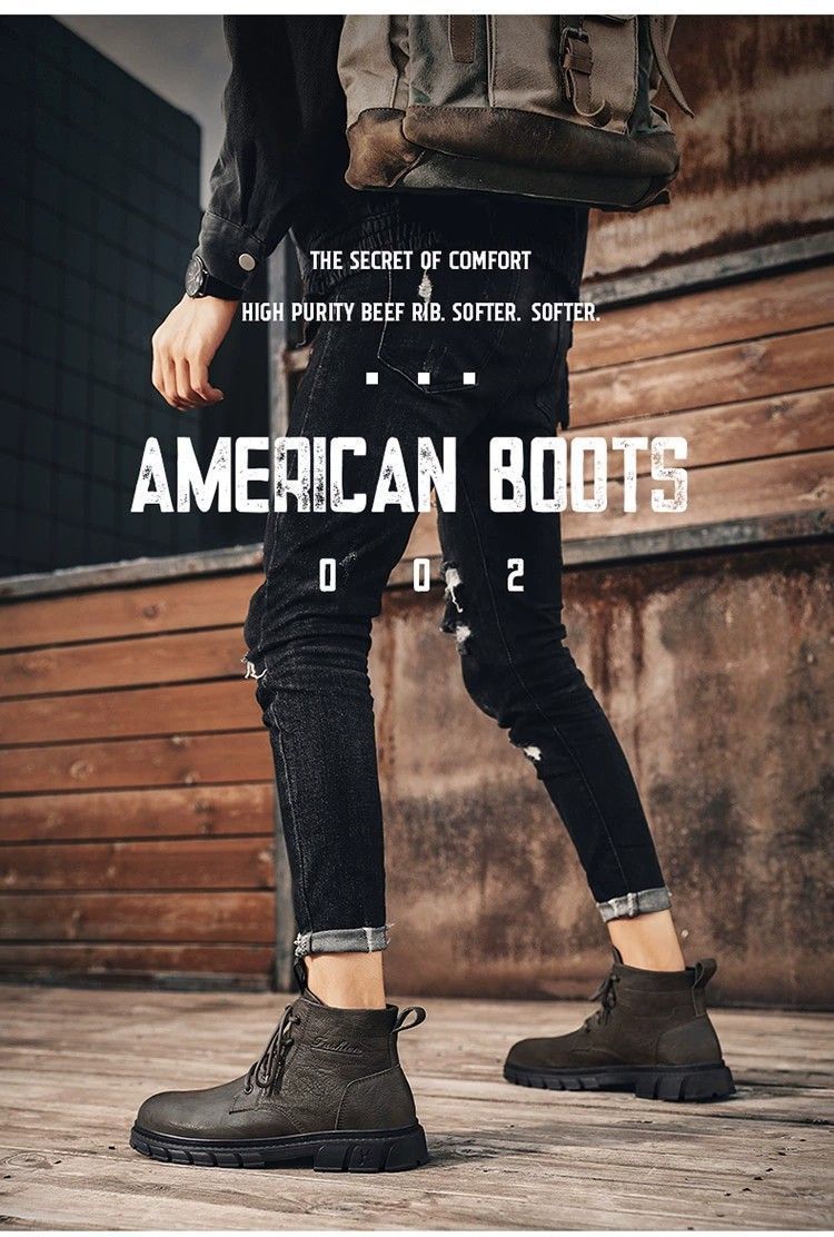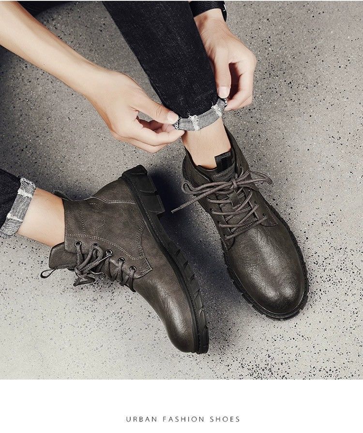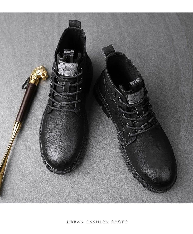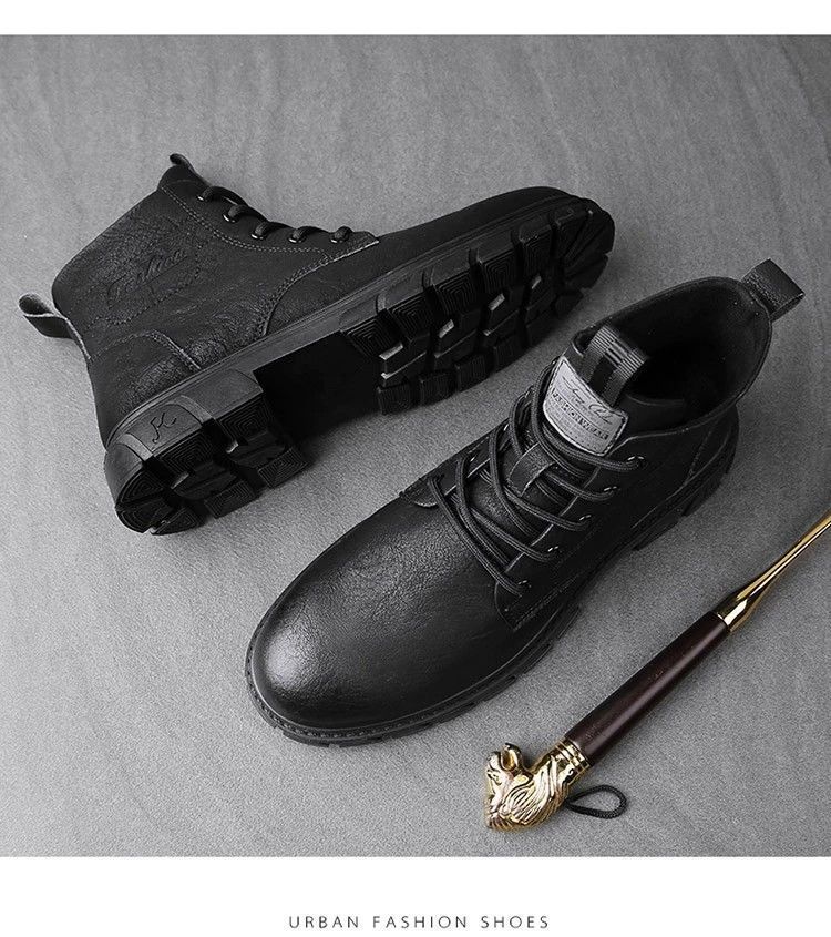 啄木鸟断码真皮马丁靴男2024秋季新款英伦风中帮皮鞋黑色工装靴男