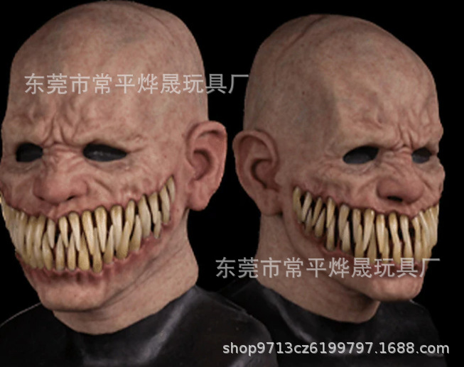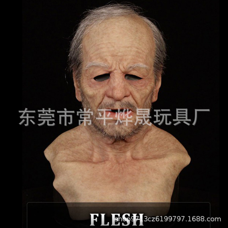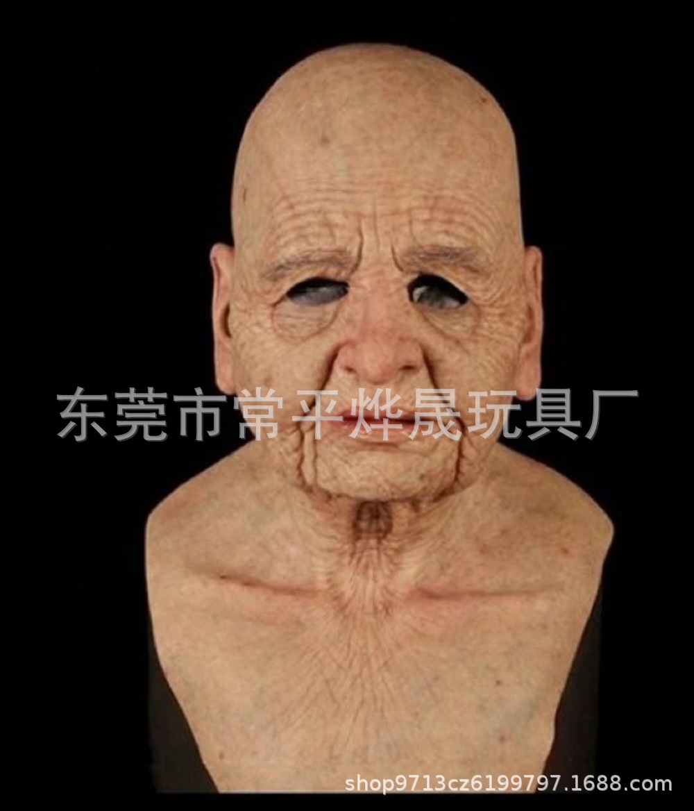 万圣节新品老奶奶乳胶人物面具头套 老太婆光头老人面具厂家现货