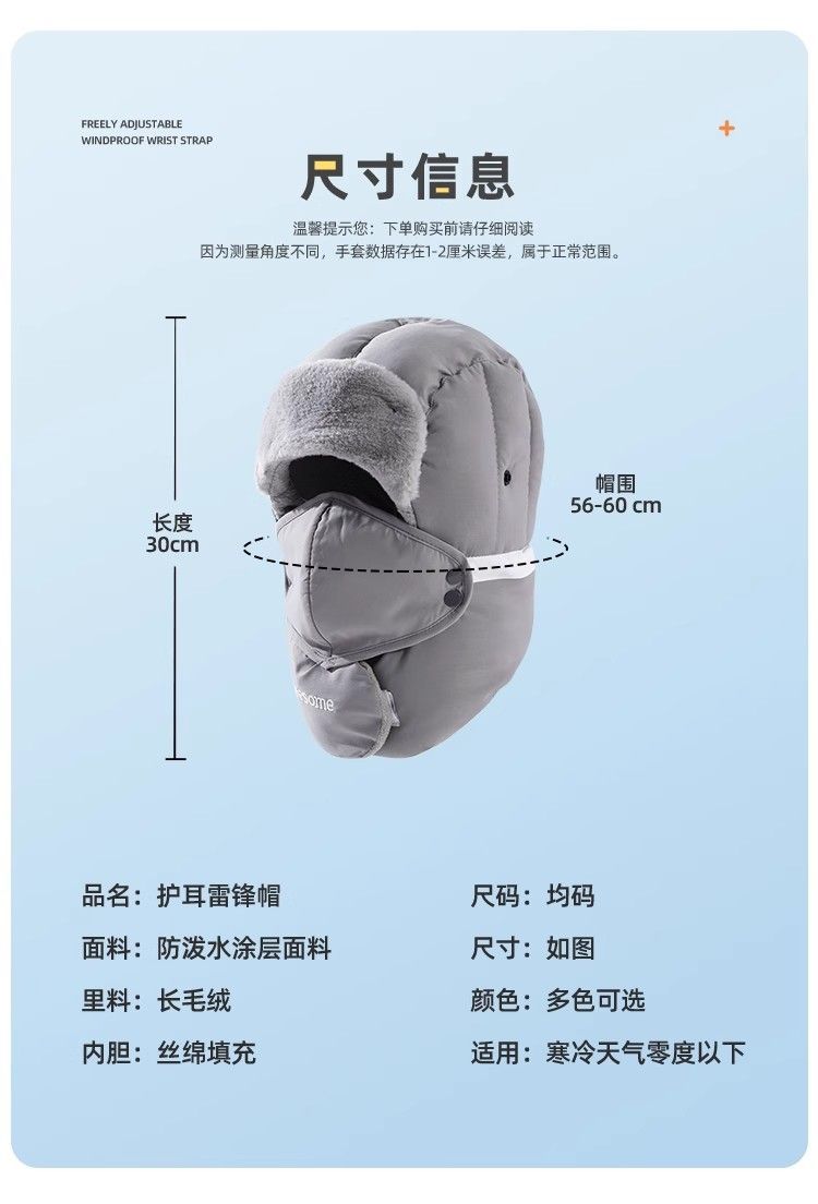 东北防风帽子男冬季加厚保暖棉帽骑行电动车防寒面罩护耳雷锋帽女