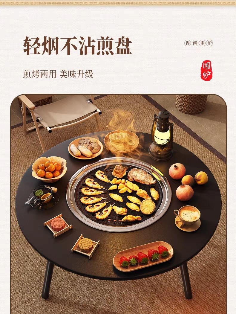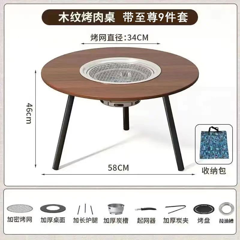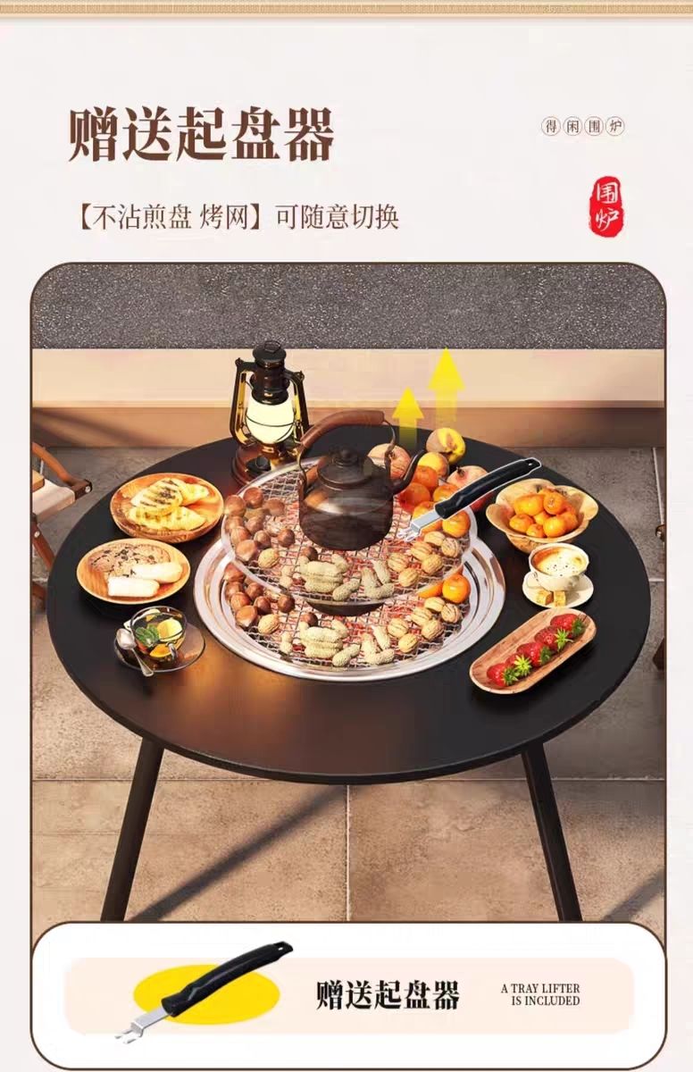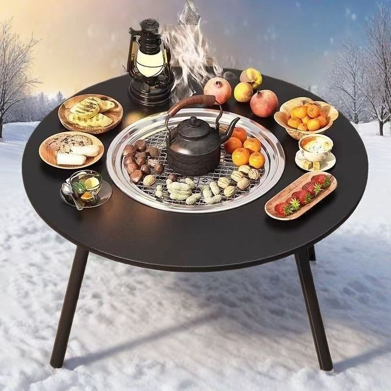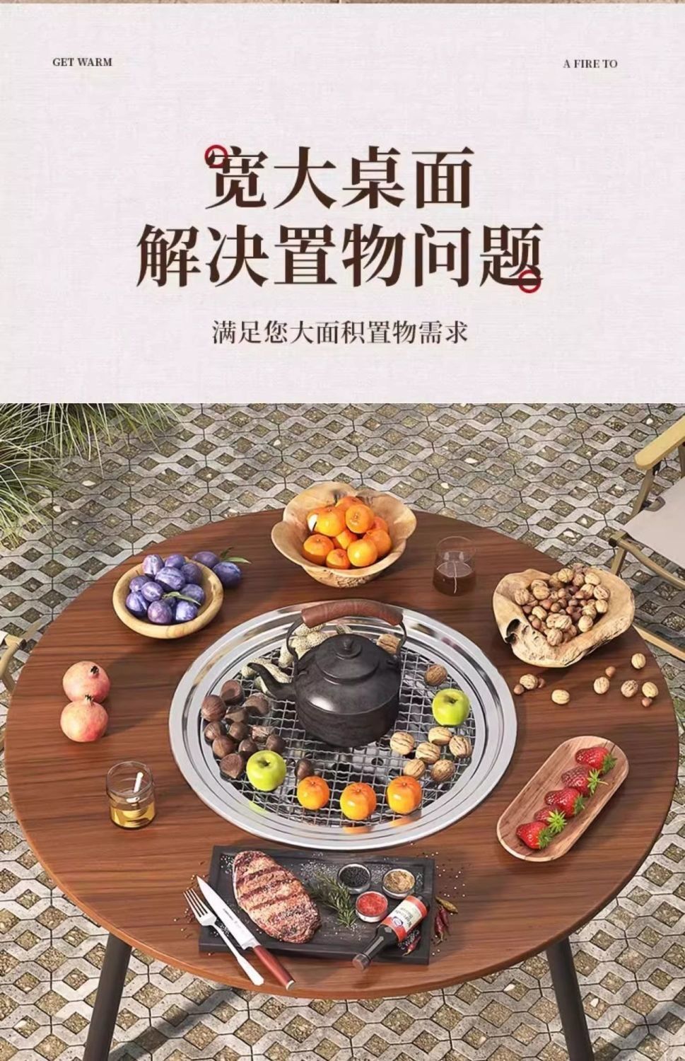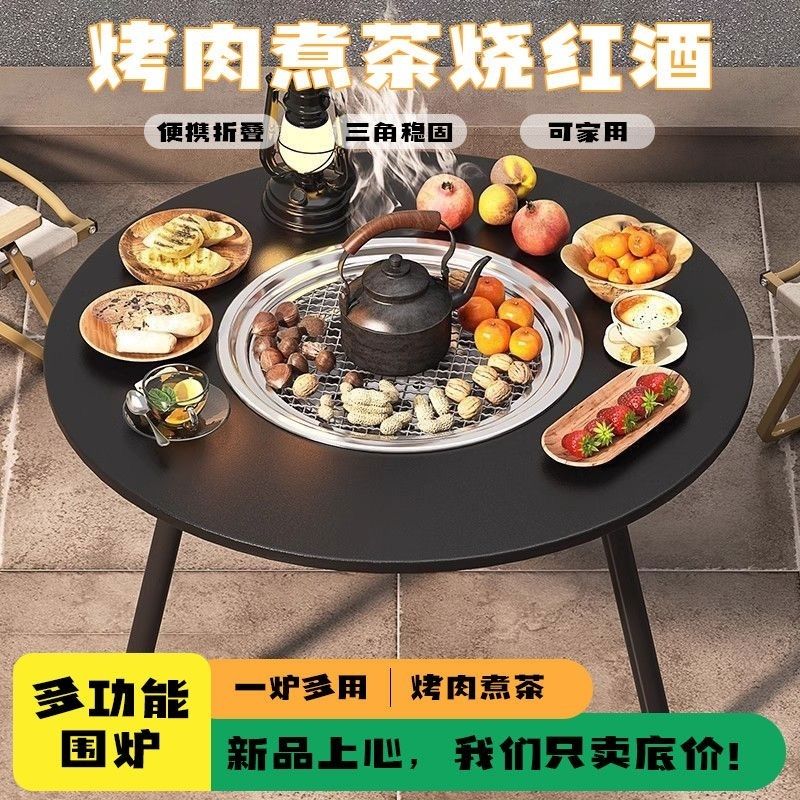 户外折叠桌露营烧烤桌子家用户外野炊便携式烤火炉围炉煮茶一整套