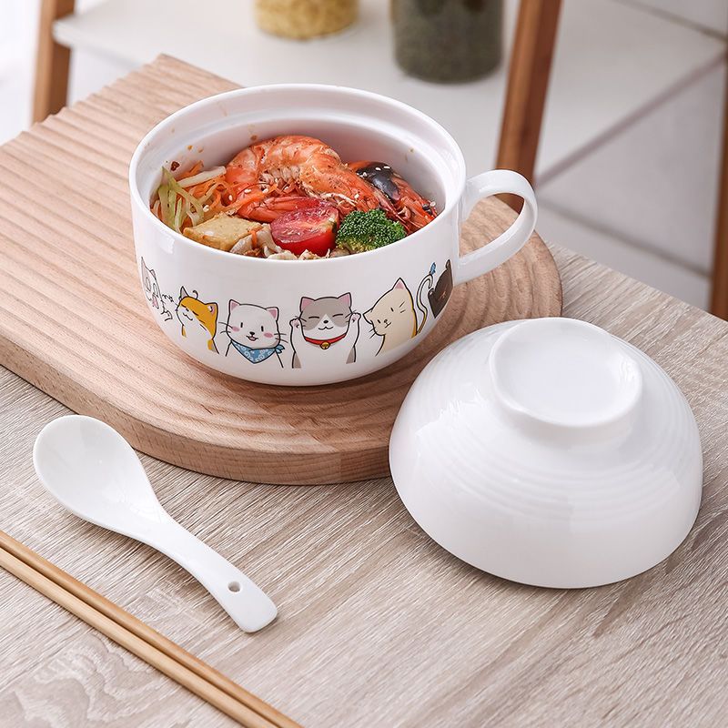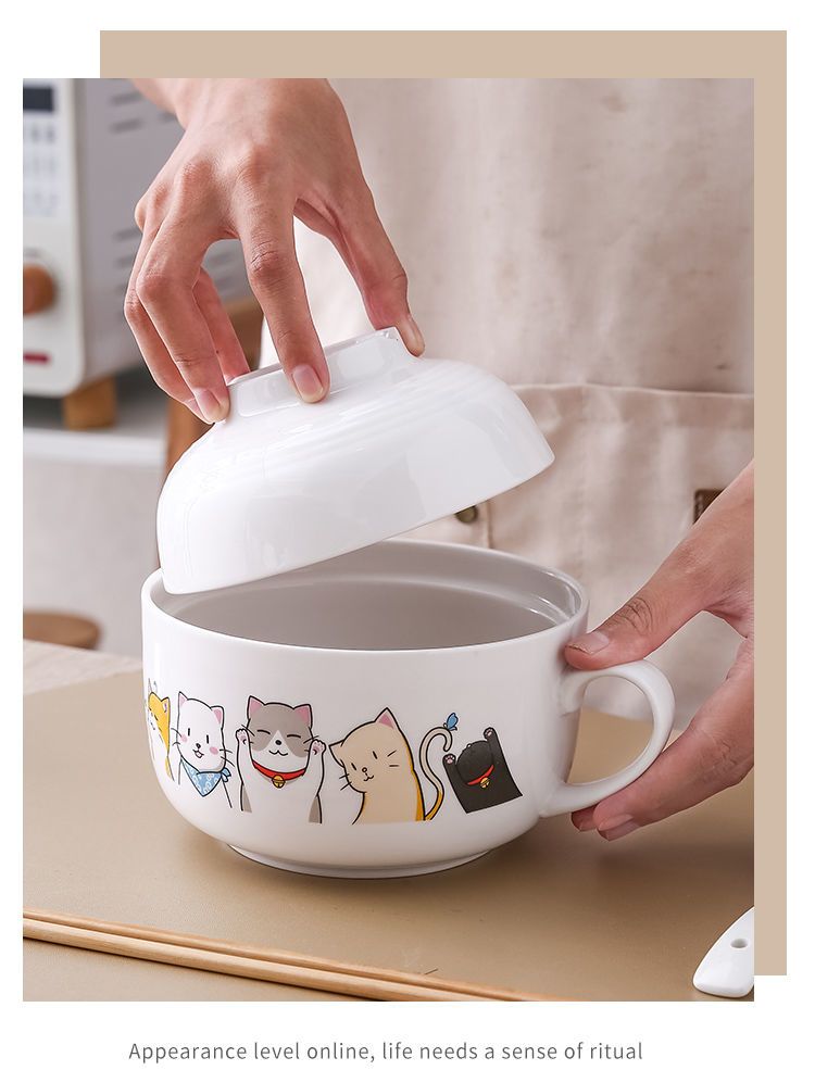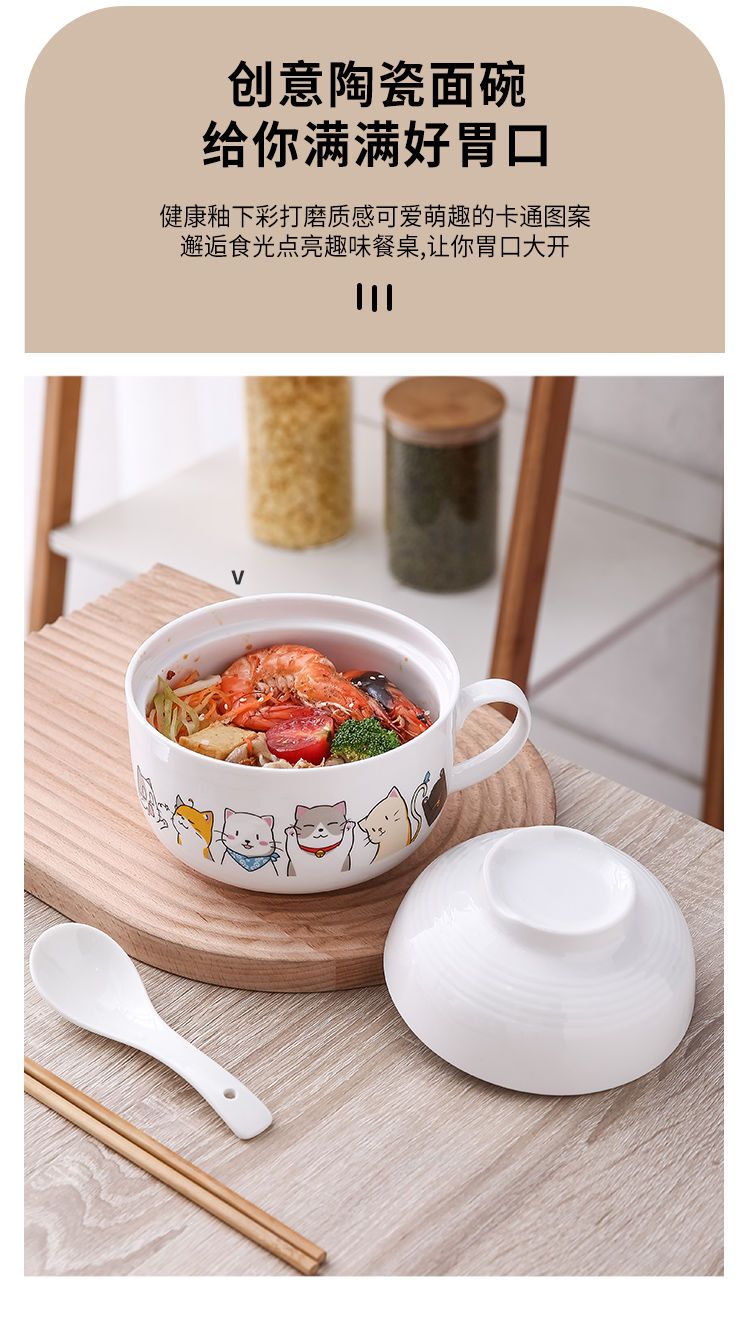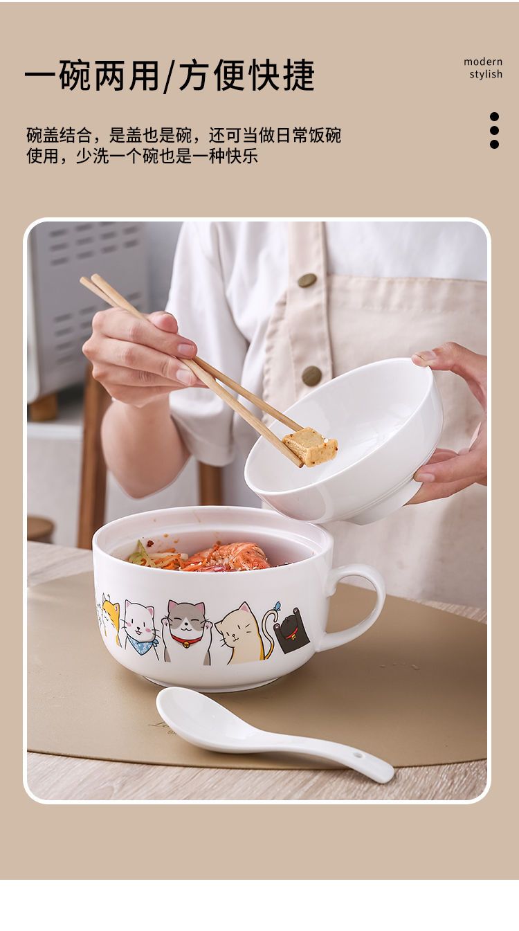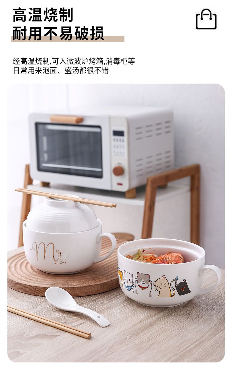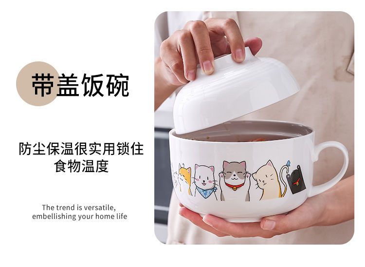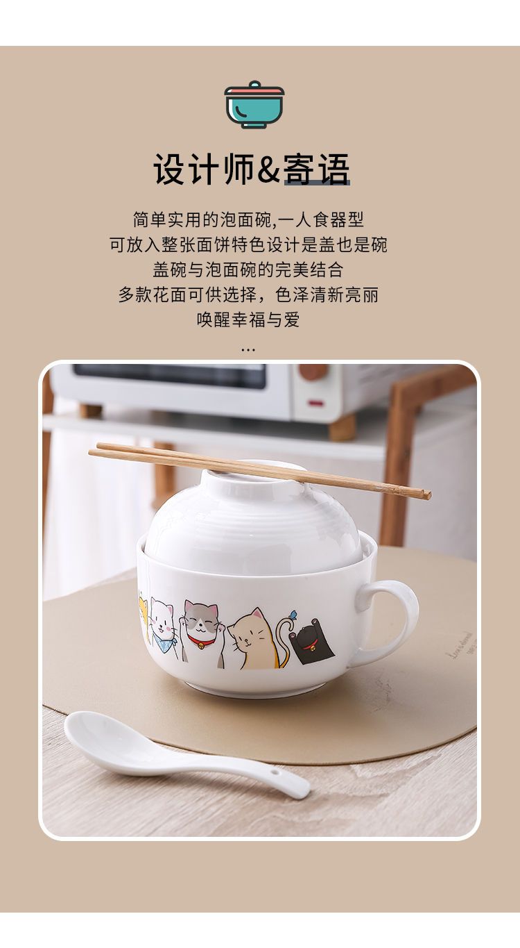 日式餐具泡面碗陶瓷饭盒微波炉碗带盖上班族学生可爱宿舍饭碗家用
