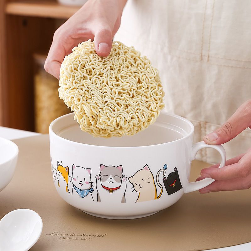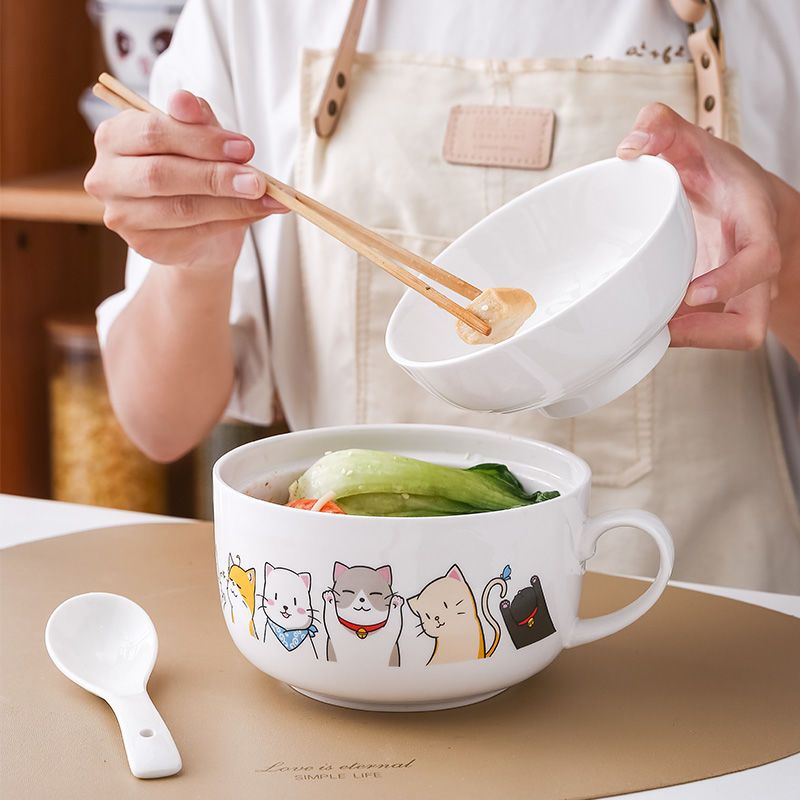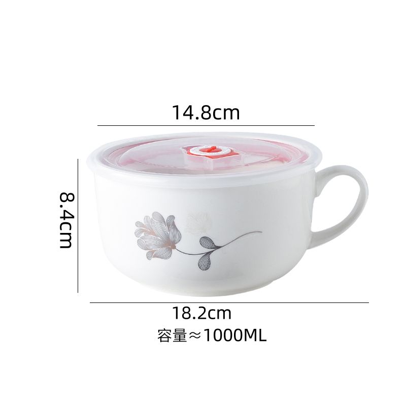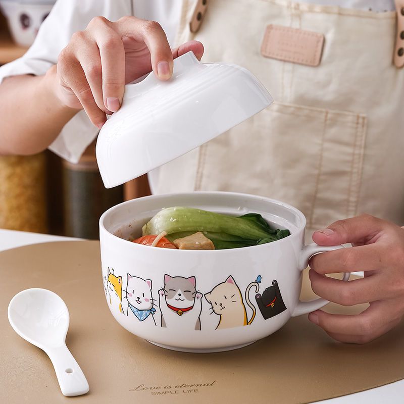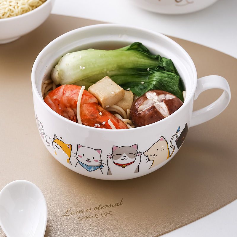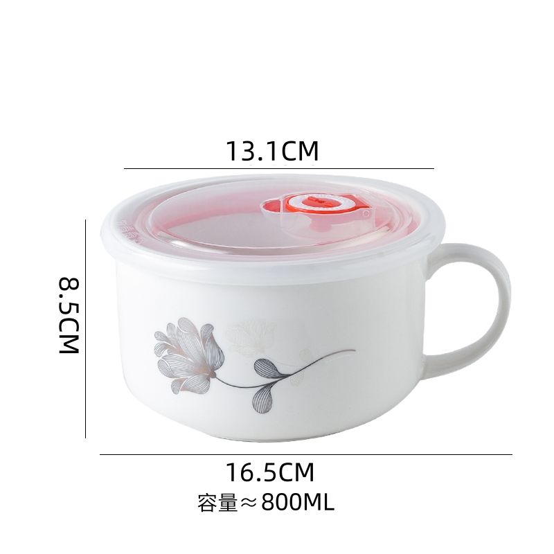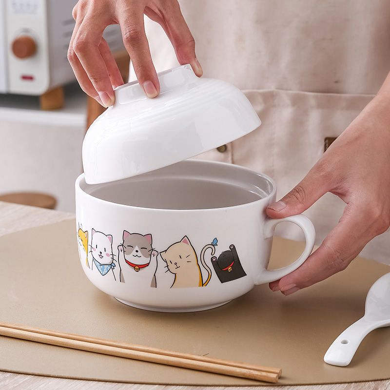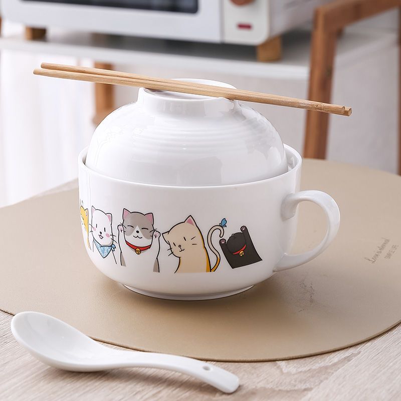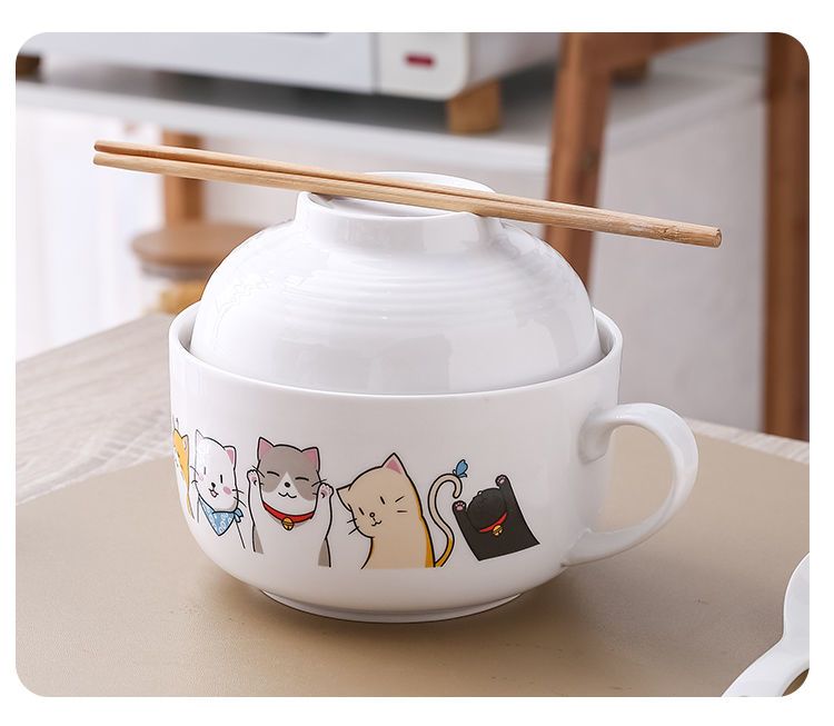 日式餐具泡面碗陶瓷饭盒微波炉碗带盖上班族学生可爱宿舍饭碗家用