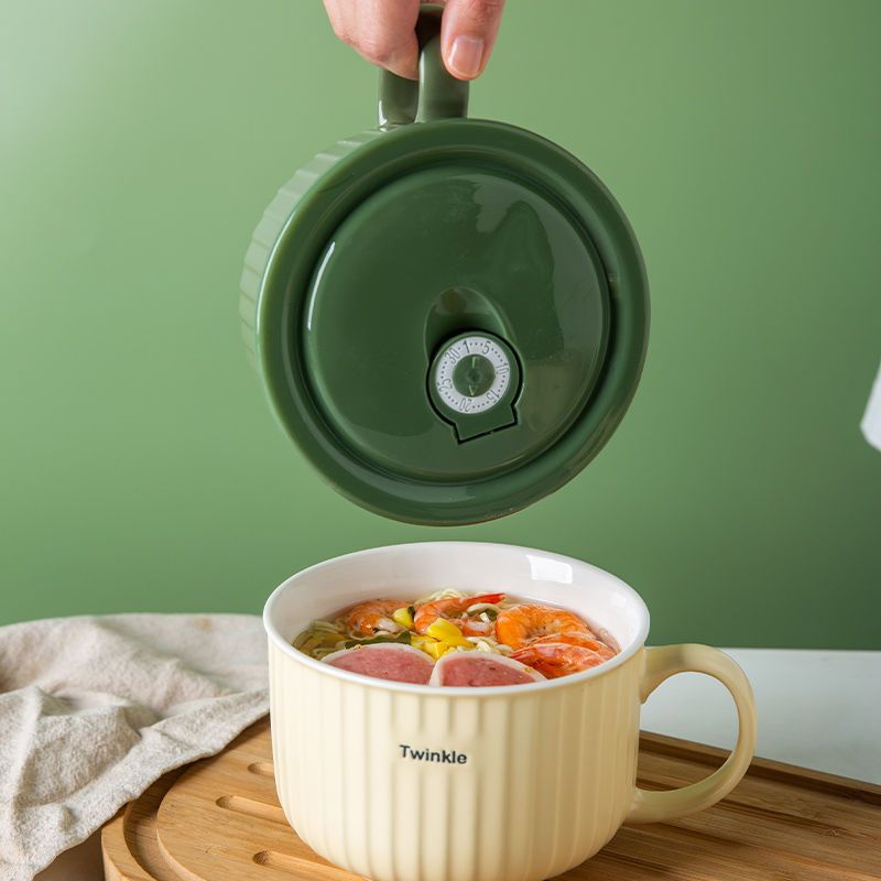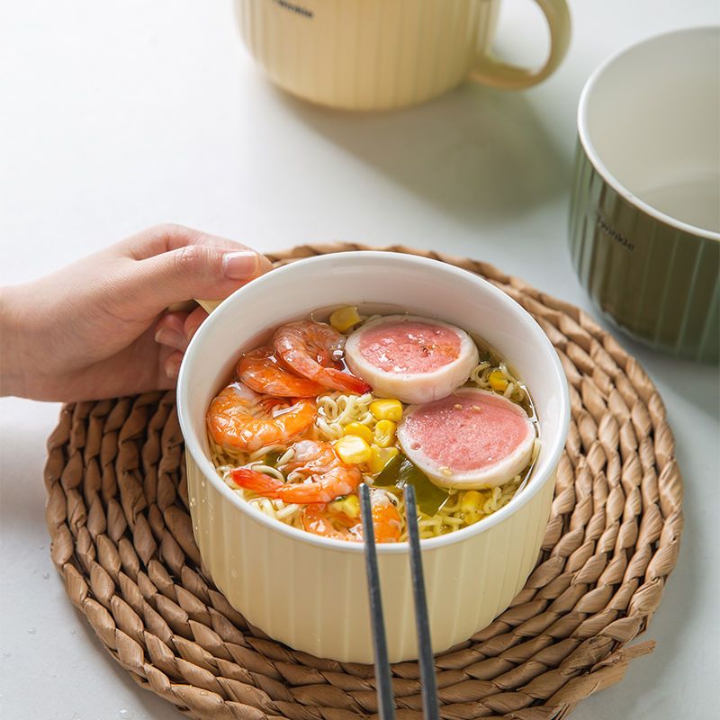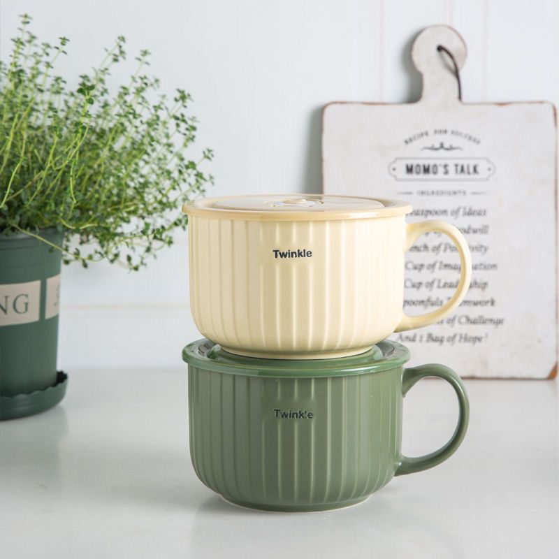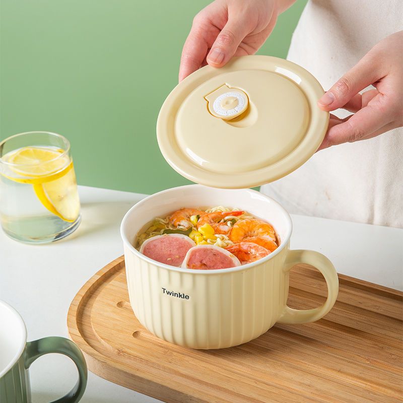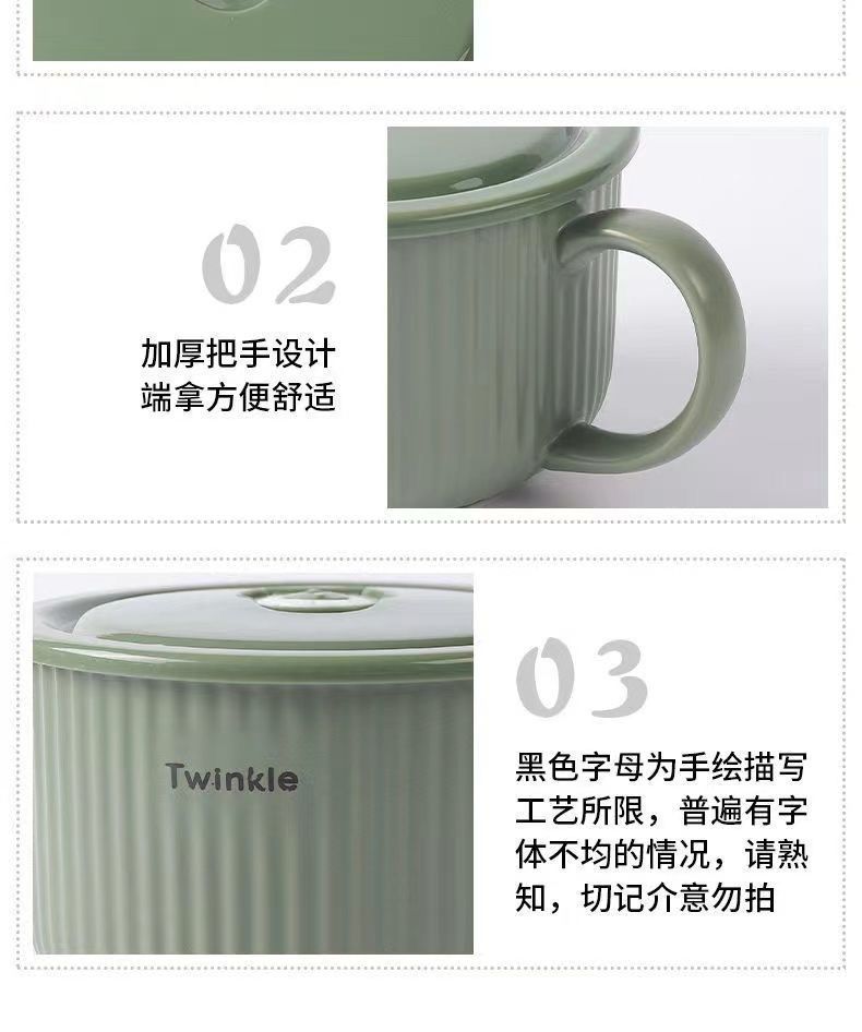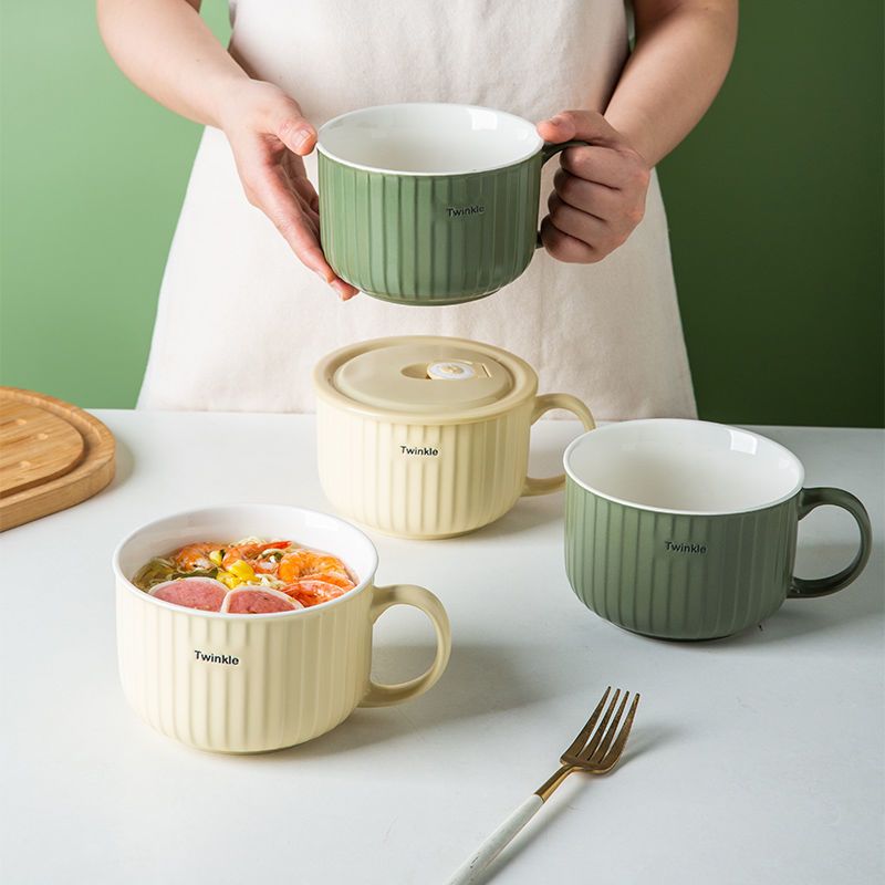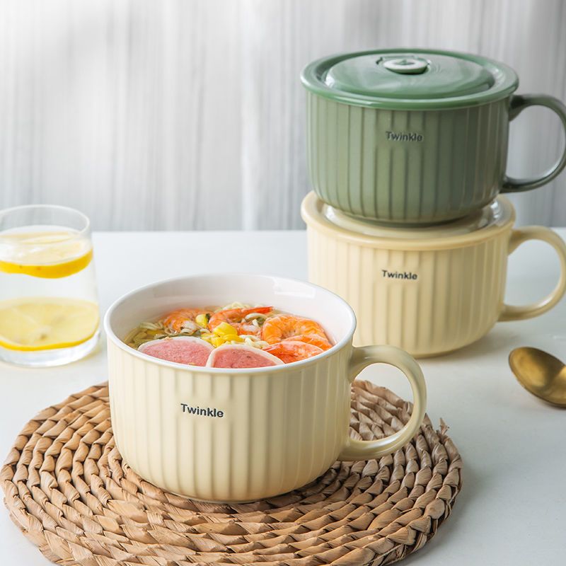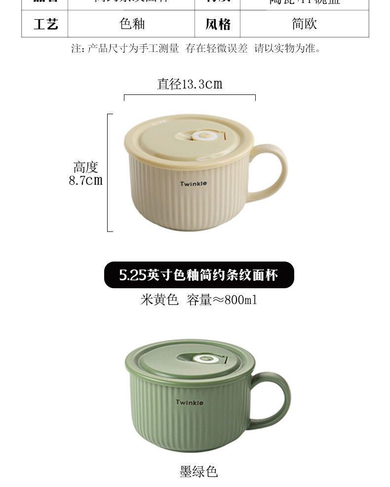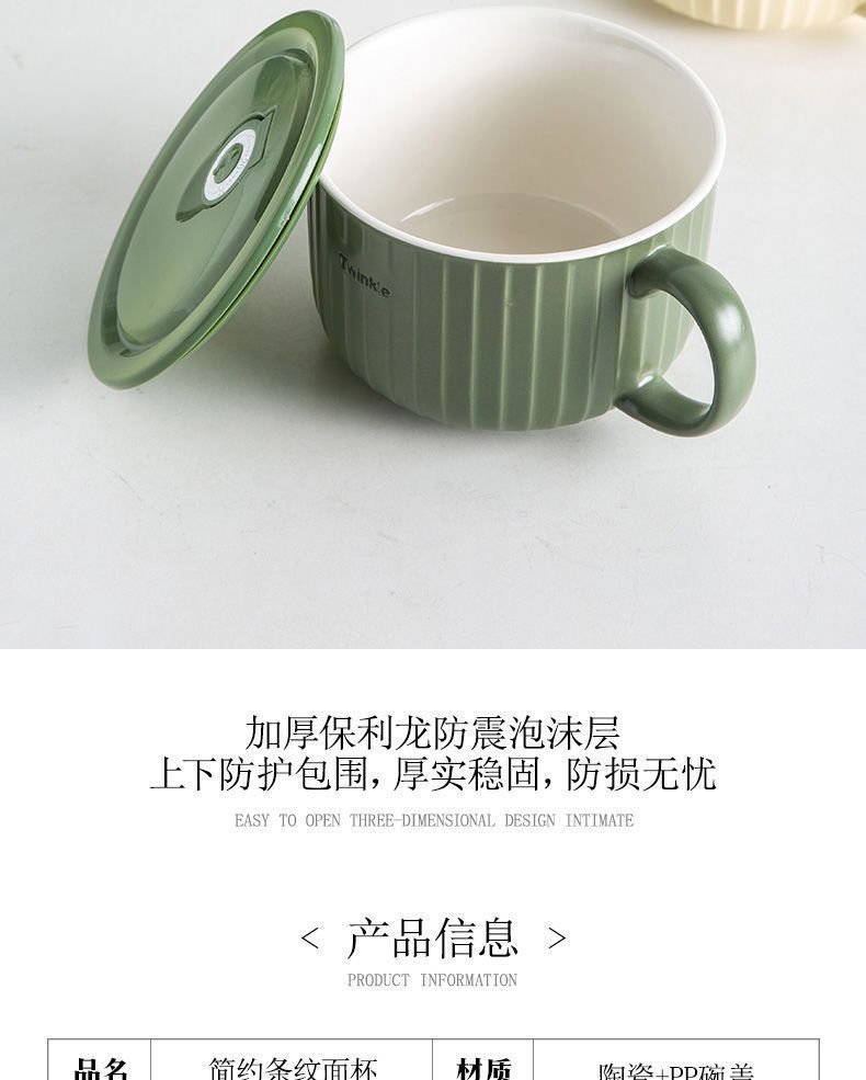简约ins风泡面碗带盖陶瓷单耳宿舍学生家用上班族网红泡面杯饭盒