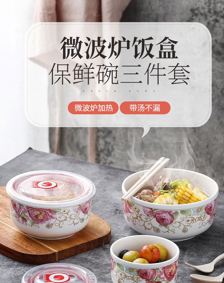 【微波炉专用】保鲜盒陶瓷保鲜碗带盖密封碗冰箱收纳盒饭盒泡面碗