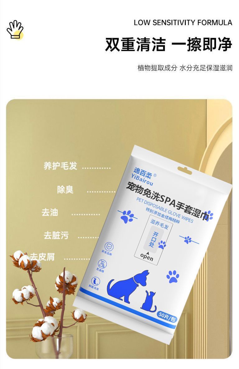 宠物免洗手套猫咪洗澡宠物湿巾狗狗干洗清洁手套杀菌除臭免洗神器