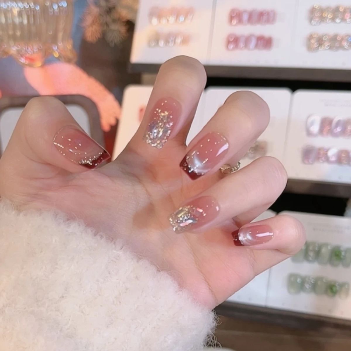【半糖红茶】手工穿戴甲粉红法式猫眼爆闪高级感美甲贴片可拆卸