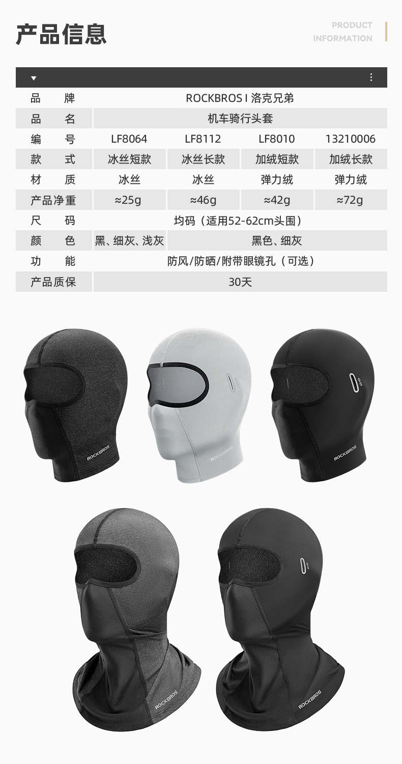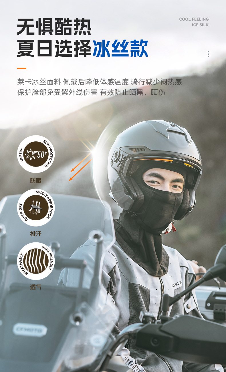 洛克兄弟防晒骑行头套摩托车冰丝全脸面罩春夏季户外防风围脖男女