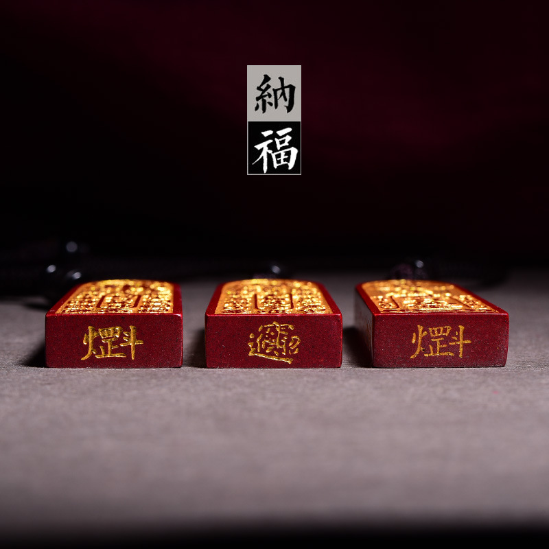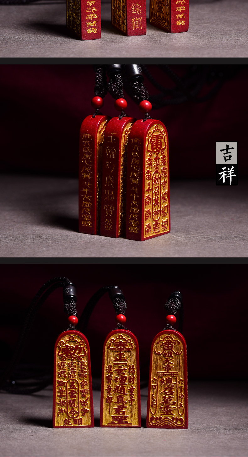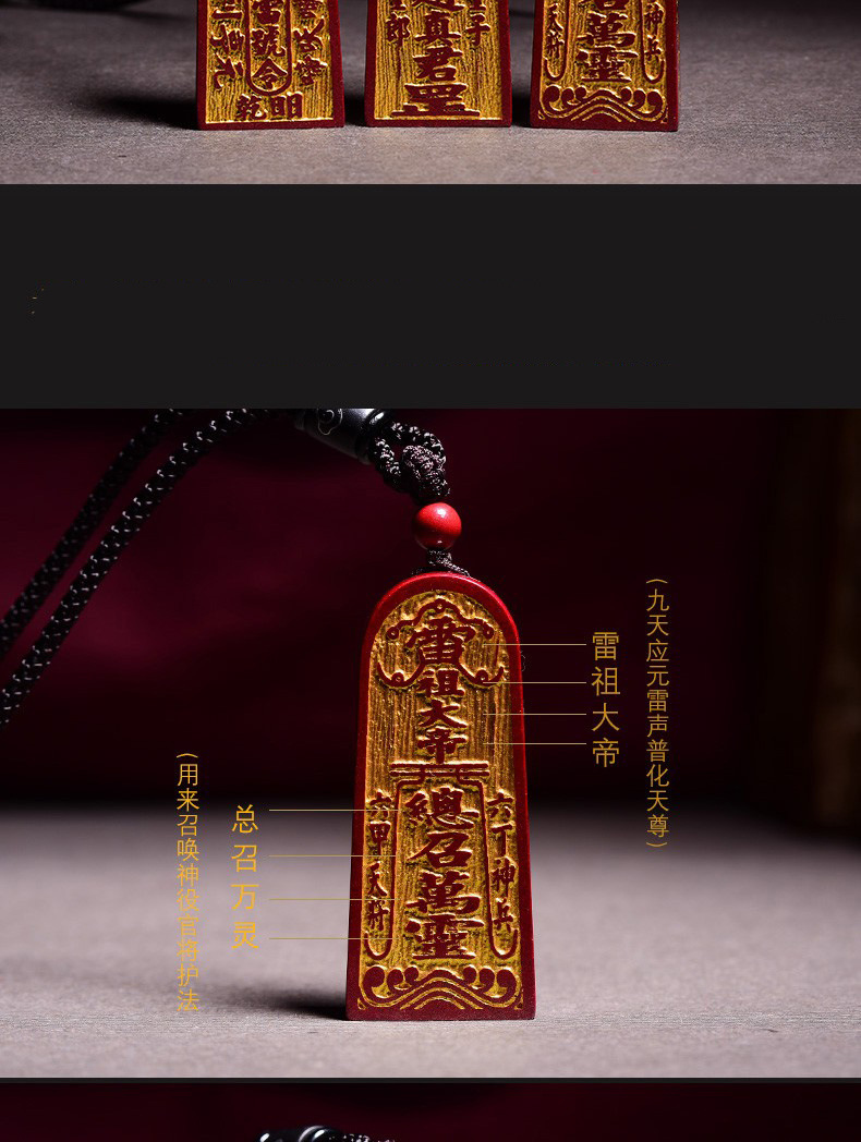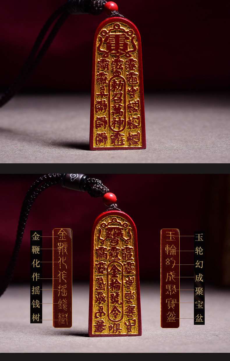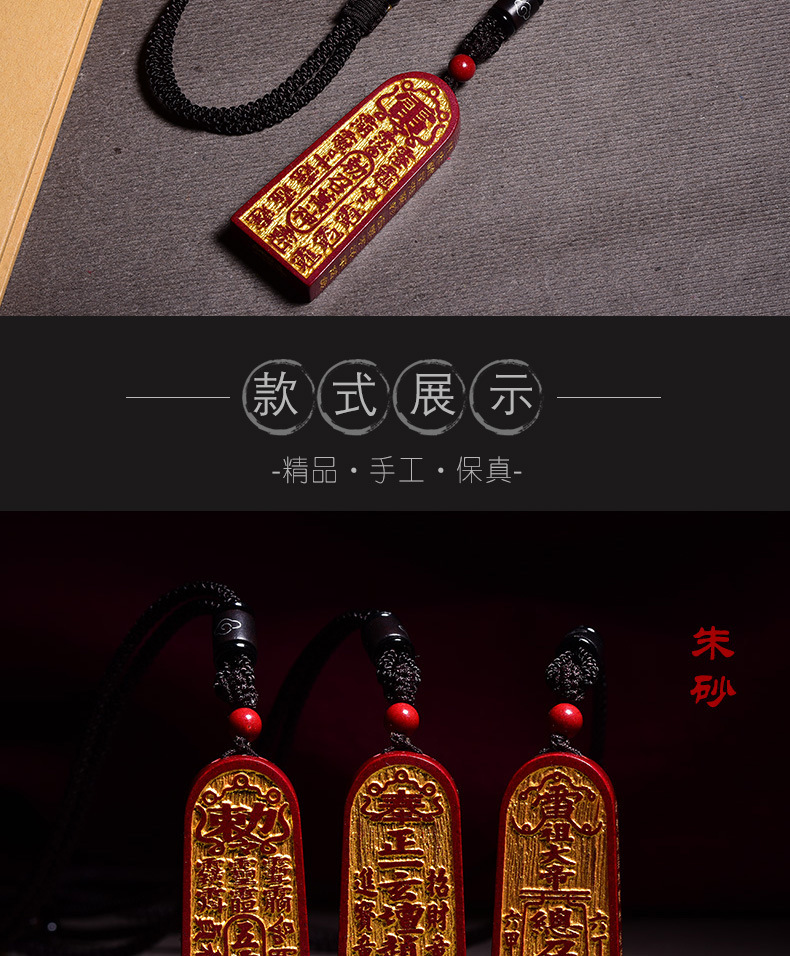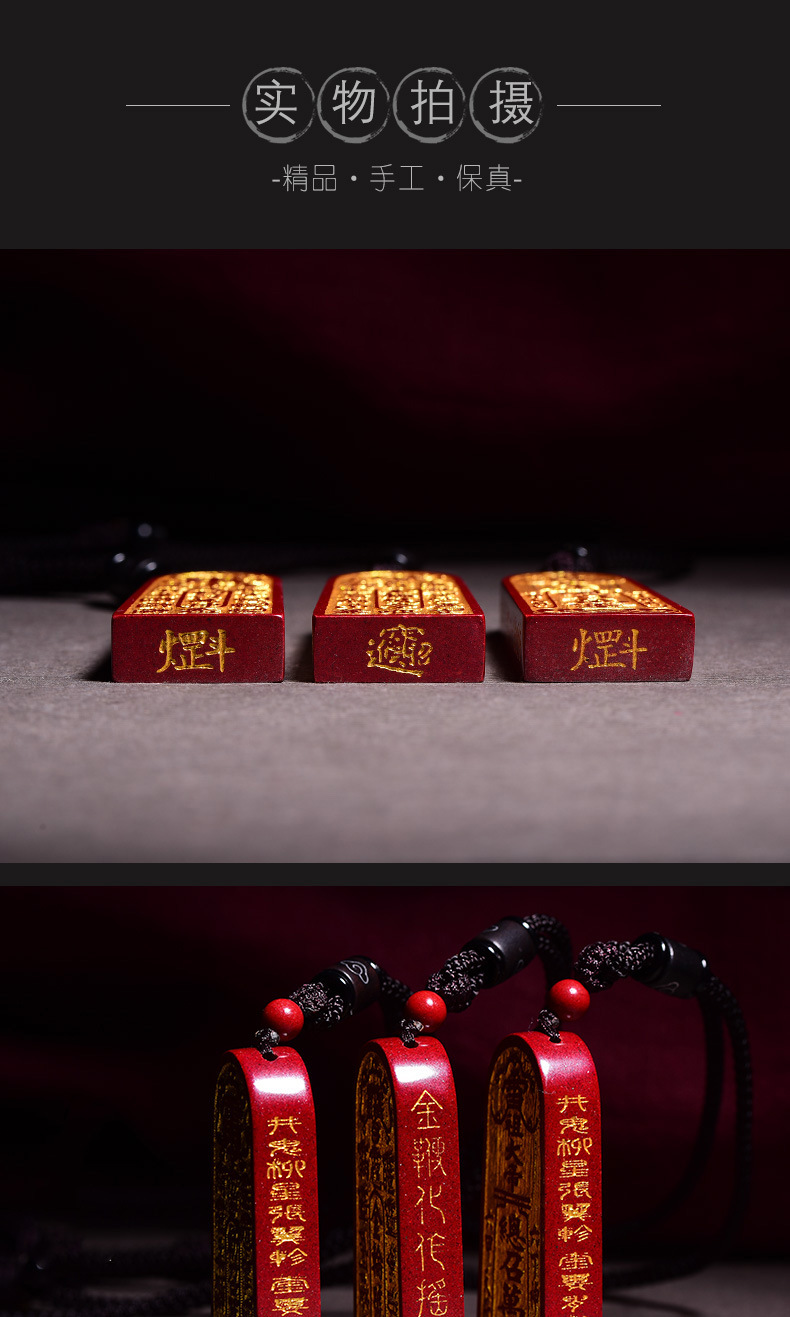 天然朱砂紫金砂鎏金五雷号令吊坠道家饰品挂件本命年金轮号令批发