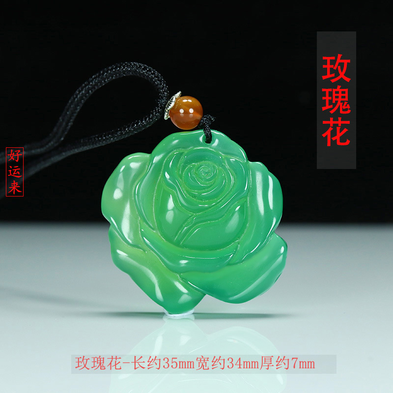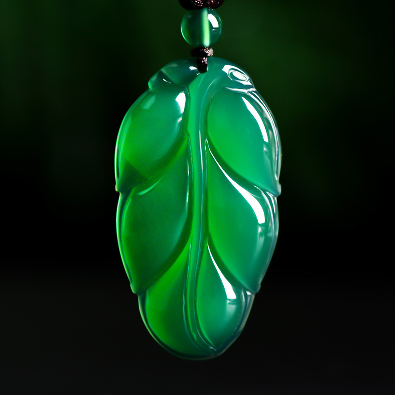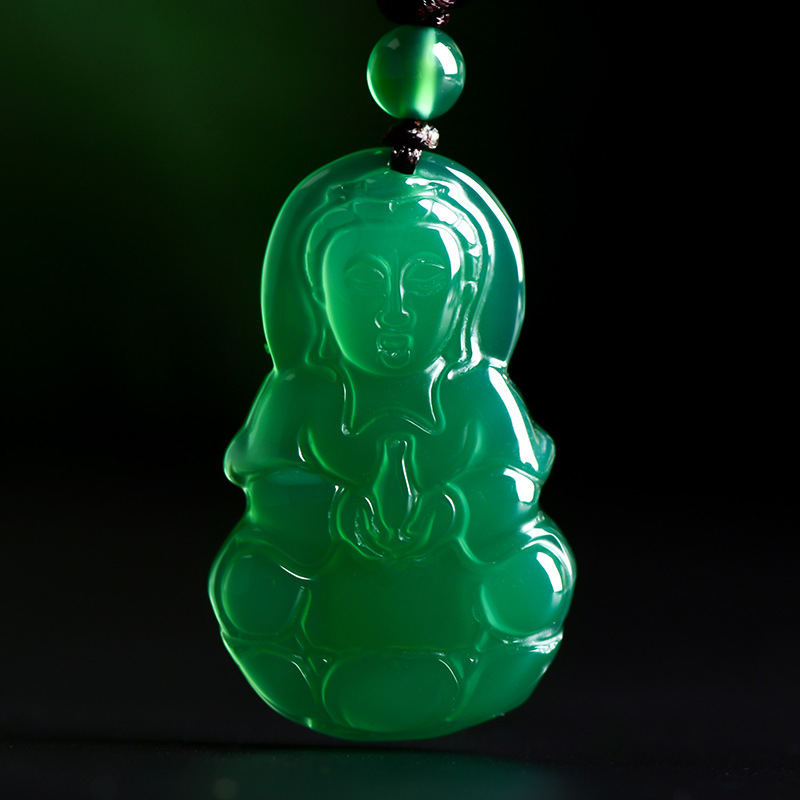 巴西冰透绿玉髓荧光观音佛吊坠玛瑙玉石玉器平安扣树叶挂件直播款