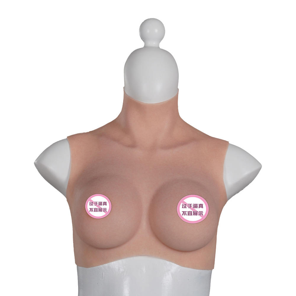 伪娘穿戴假乳房变装用假咪咪高领短款实心小义乳硅胶丝绵填充假胸