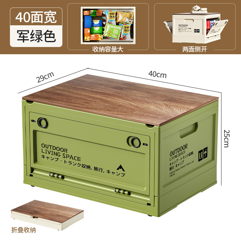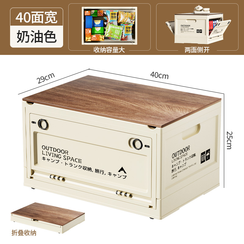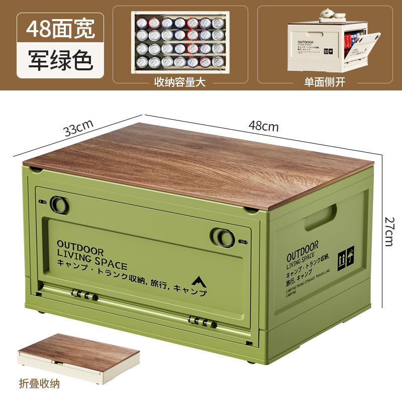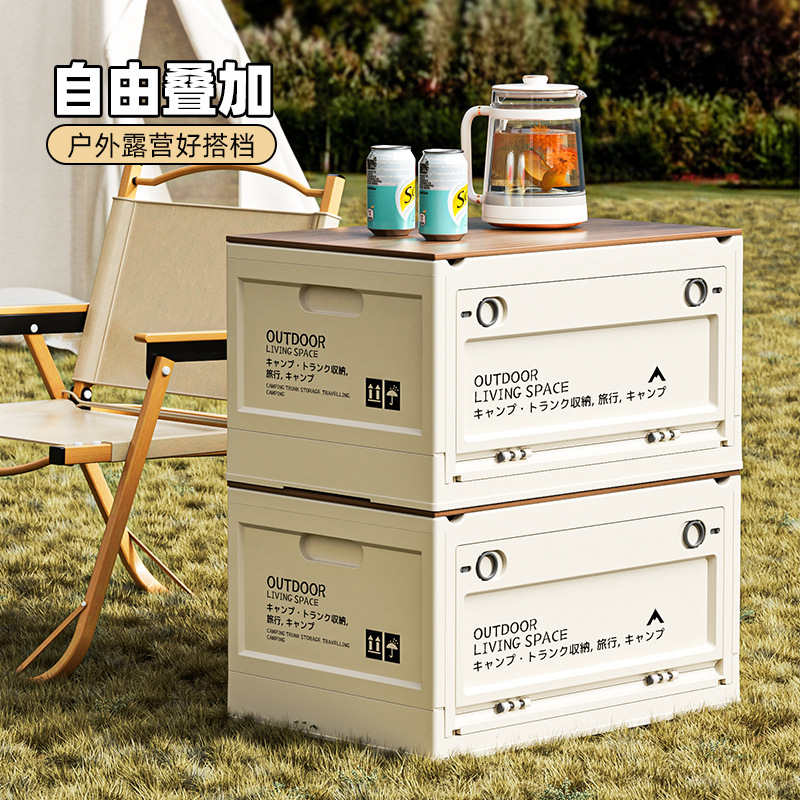 户外收纳箱侧开门露营箱多功能五开门折叠箱车载置物箱木盖整理箱