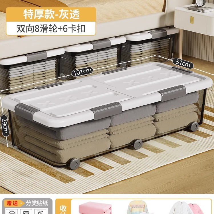 佳帮手床底收纳箱床下扁平被子鞋子衣服玩具带轮抽屉收纳塑料整理