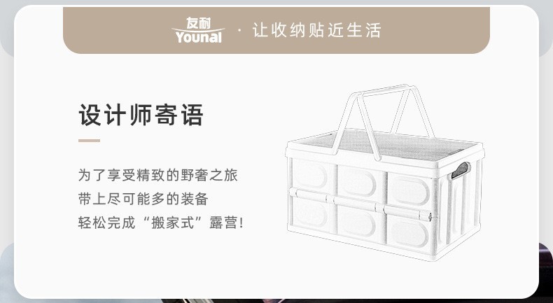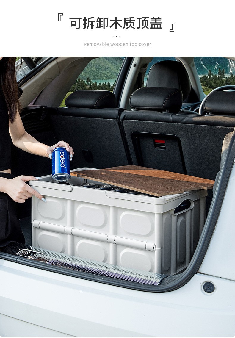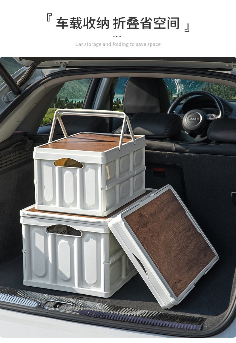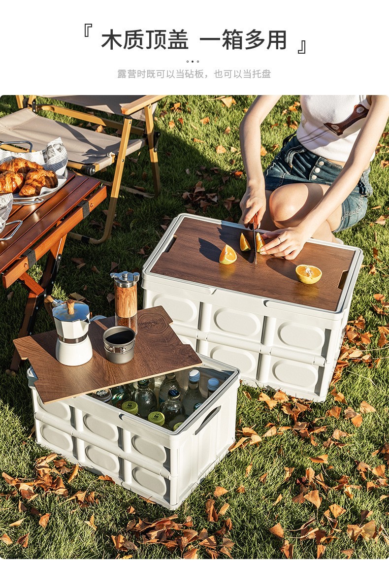 户外露营收纳箱野营木盖置物箱车载后备箱整理箱野餐折叠箱带提手