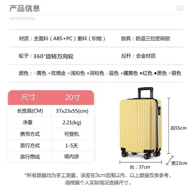 新款20寸行李箱厂家批发普通万向轮拉杆箱密码锁旅行箱商务出行