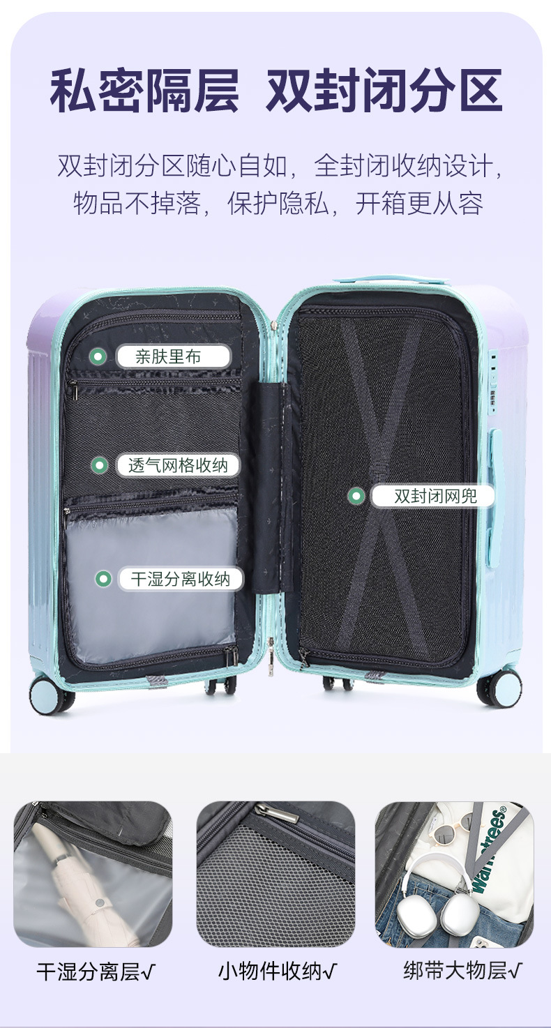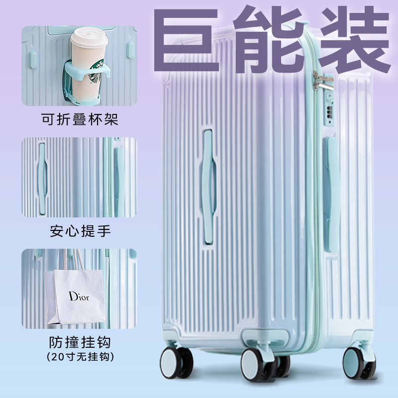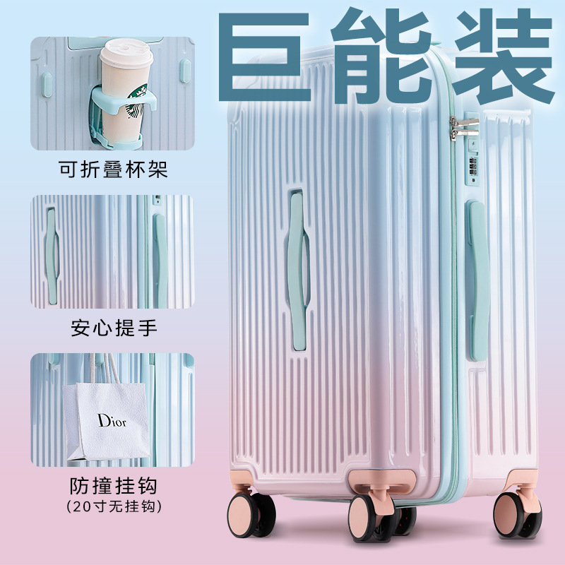 行李箱女2024新款旅行箱渐变色拉杆箱纯pc防爆拉链结实耐用密码箱
