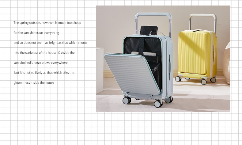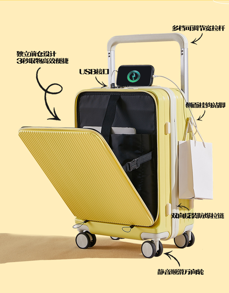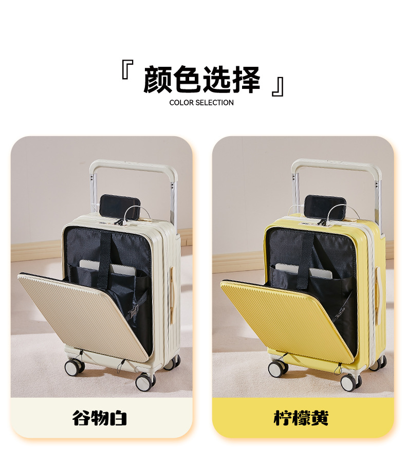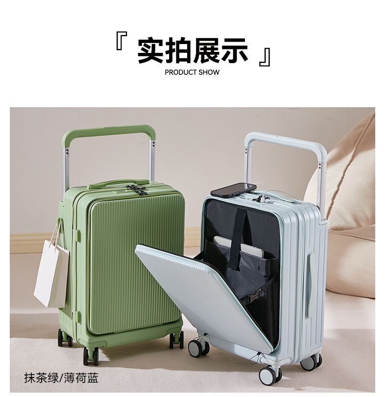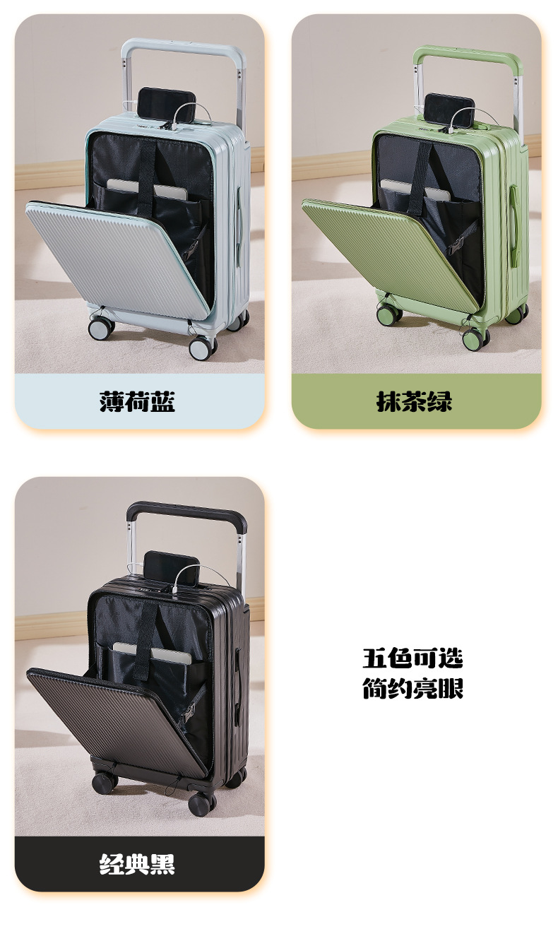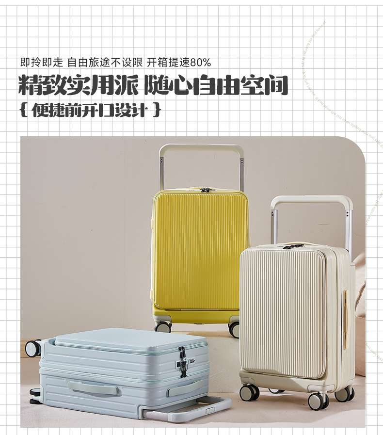 行李箱前开口宽拉杆女20寸轻便登机箱前开盖多功能旅行箱男24寸