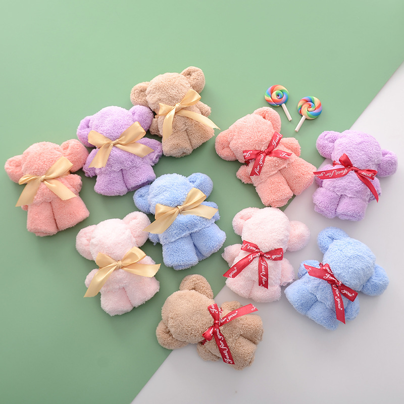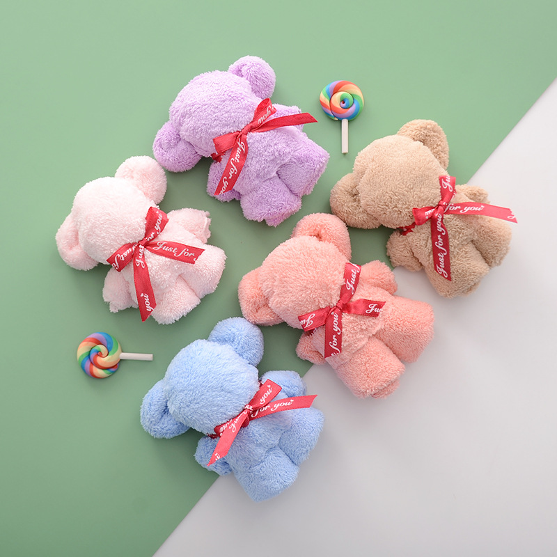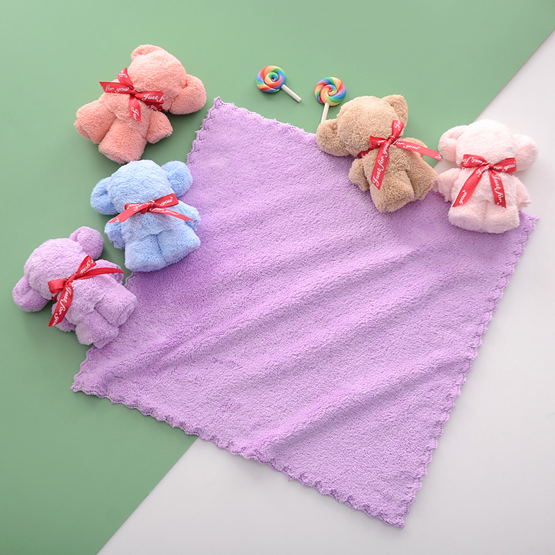 小熊毛巾珊瑚绒 30*30 结婚礼品毛巾简约素色银行幼儿园摆件毛巾