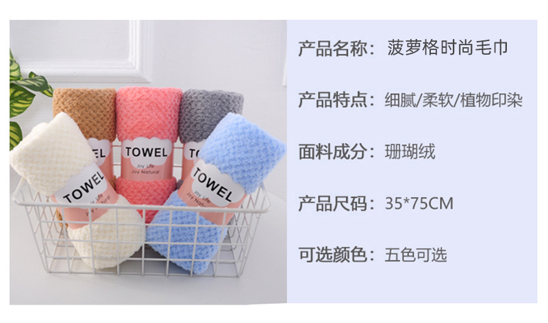 毛巾厂家批发珊瑚绒毛巾成人儿童洗脸巾洗澡巾礼品毛巾菠萝格毛巾