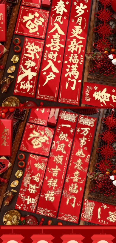 2025蛇年广告对联定制植绒高档春联专版订做福字大礼包现货印LOGO