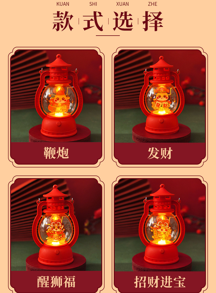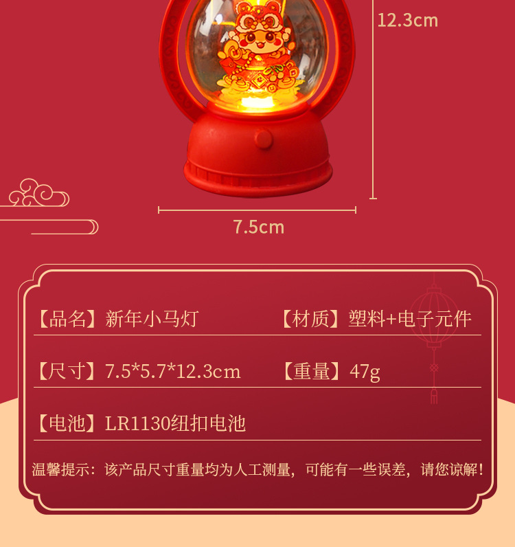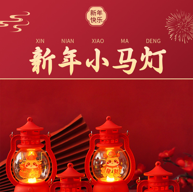 2025新年小灯笼LED电子发光手提小马灯蛇年元宵节花灯新春装饰品