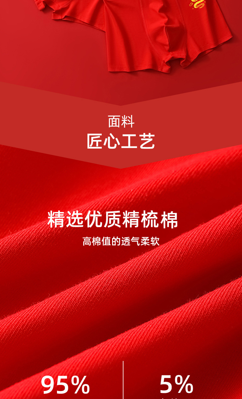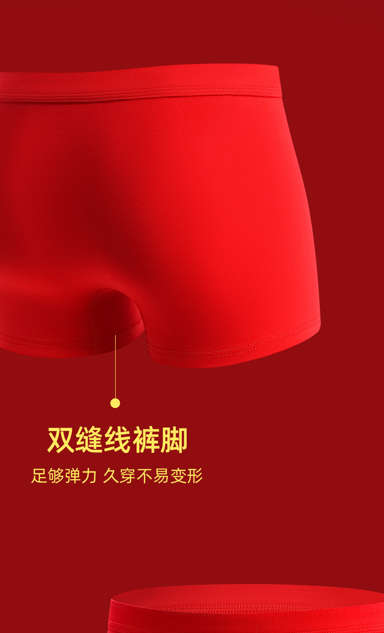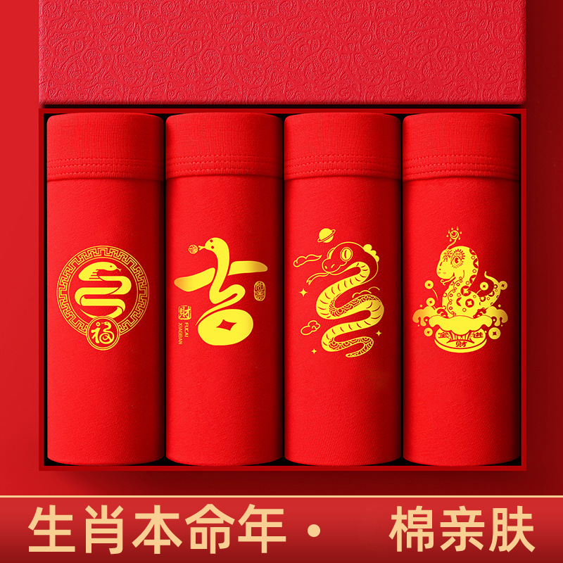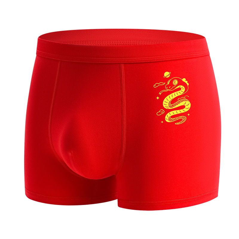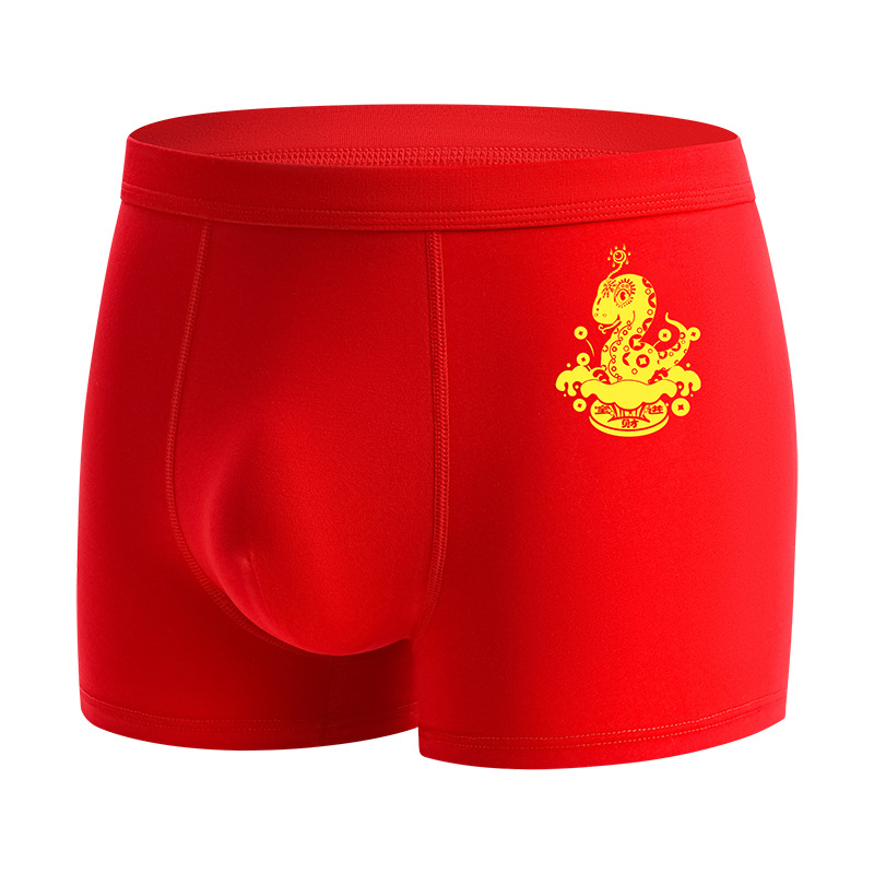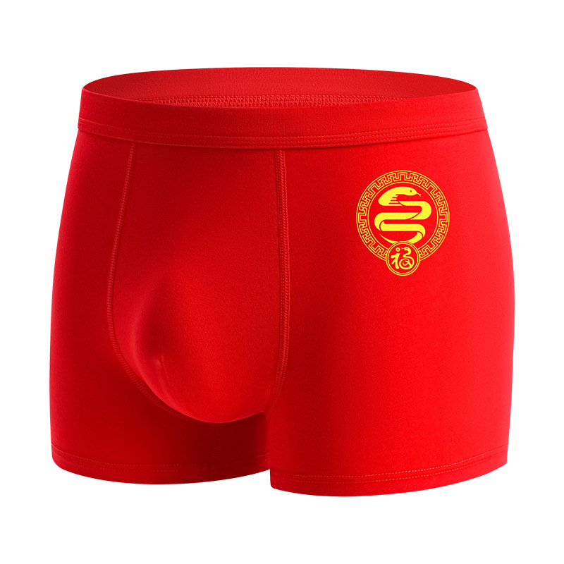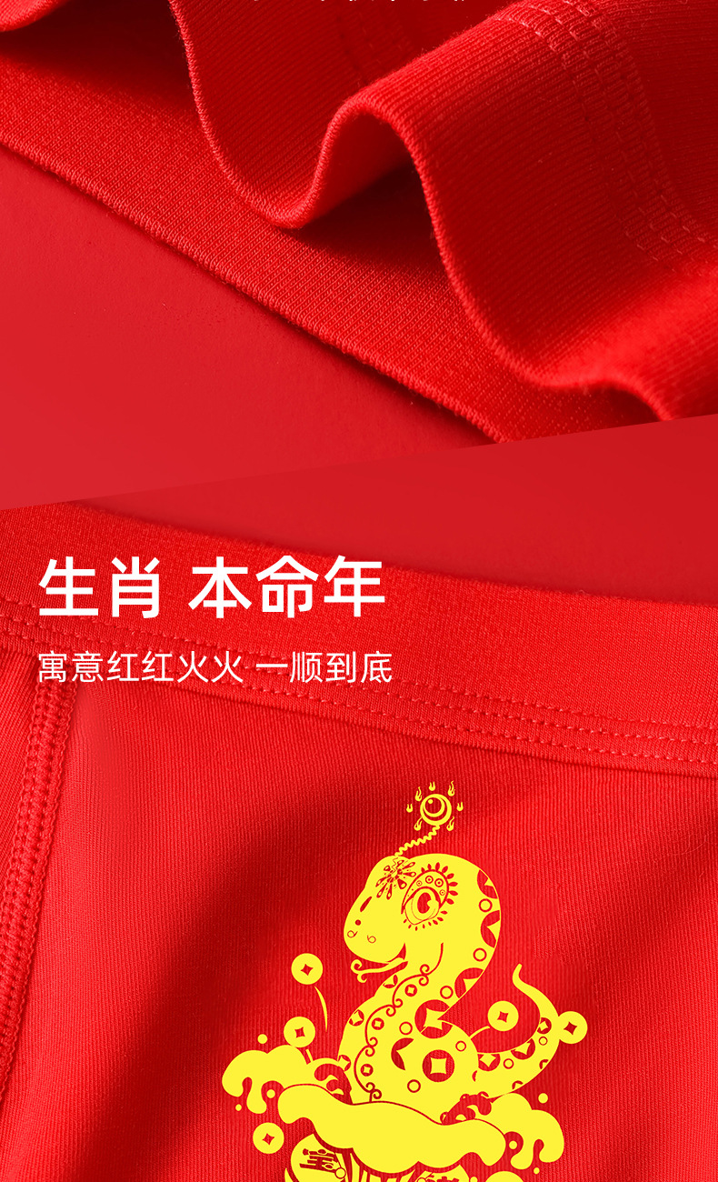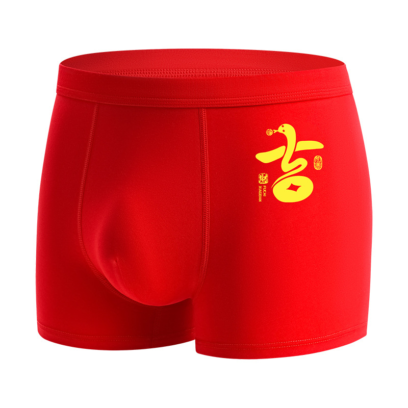 蛇年大红男士平角内裤本命年结婚纯棉短裤新年喜庆红四角内裤批发