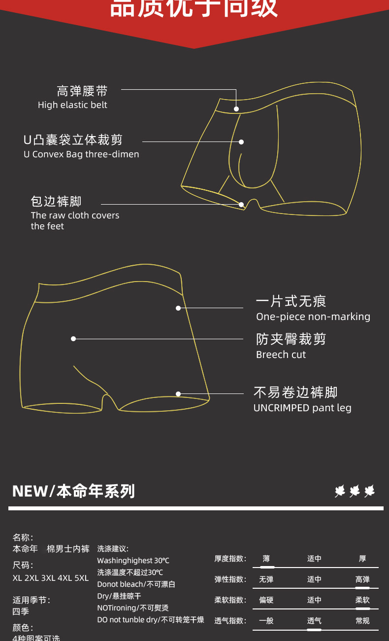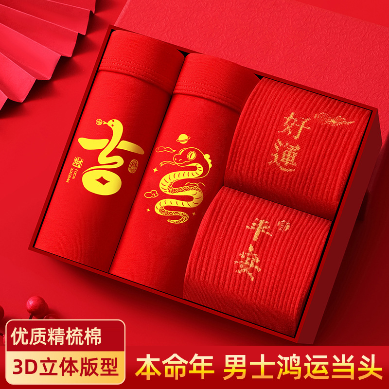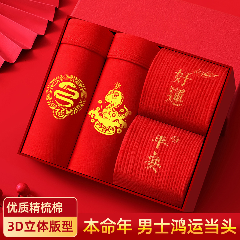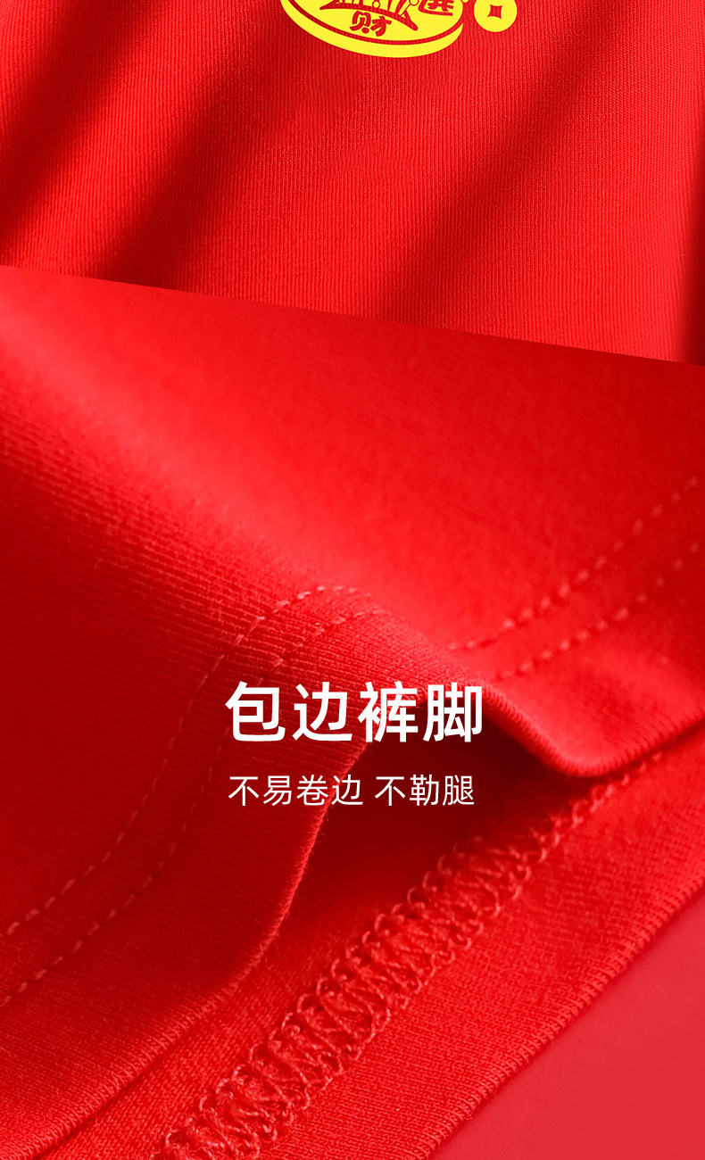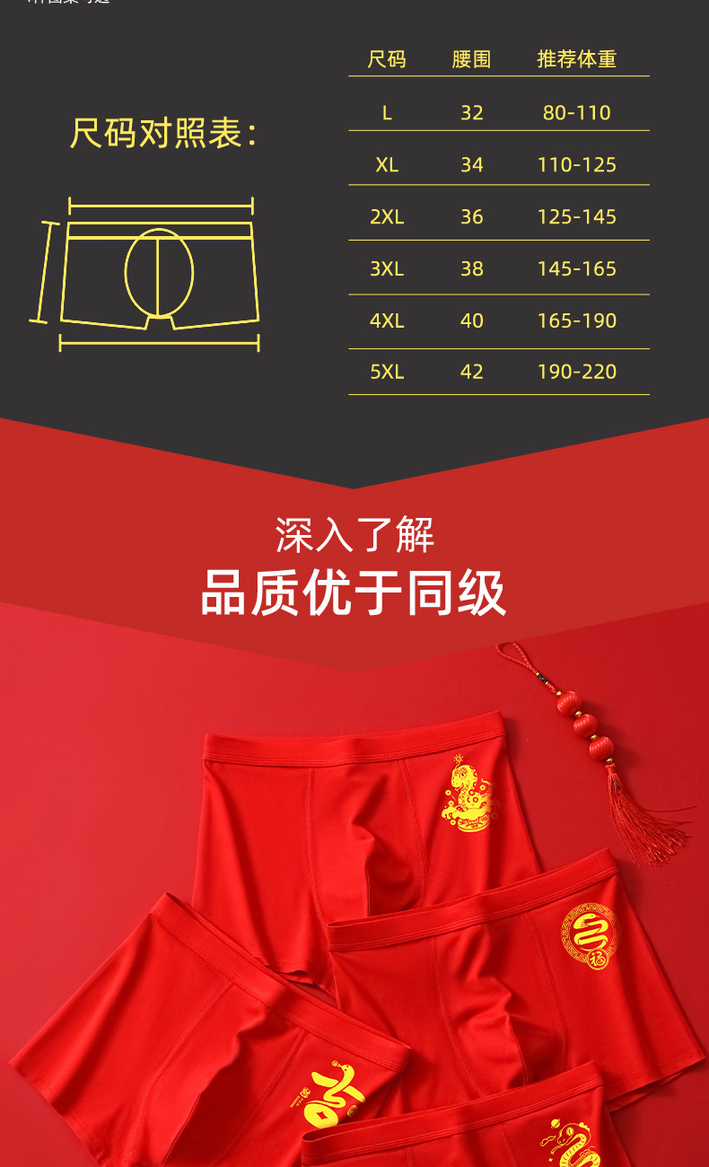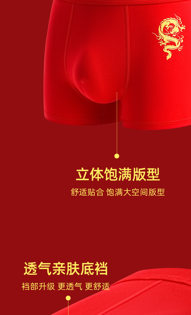 蛇年大红男士平角内裤本命年结婚纯棉短裤新年喜庆红四角内裤批发