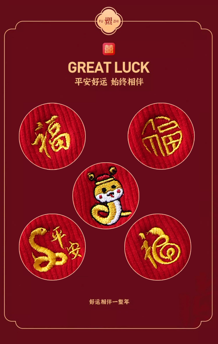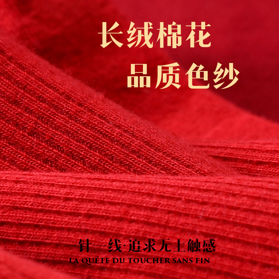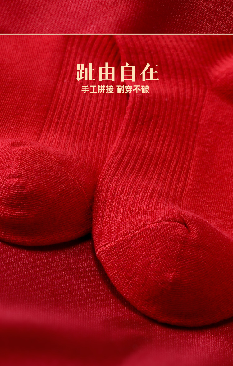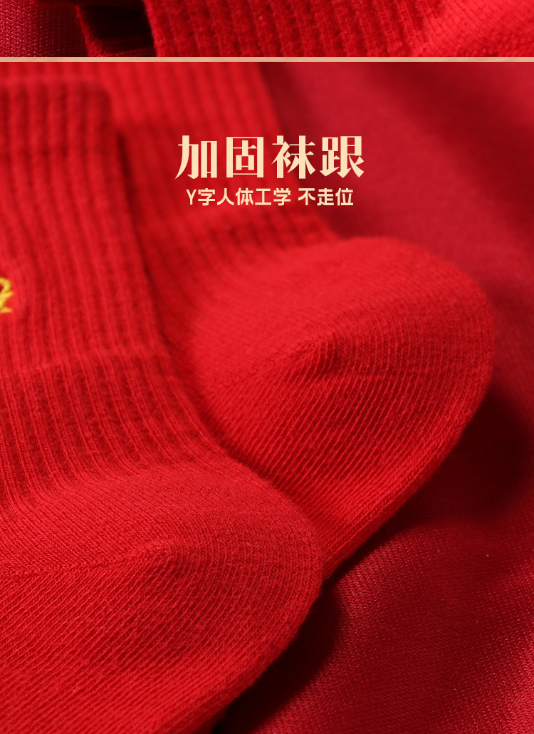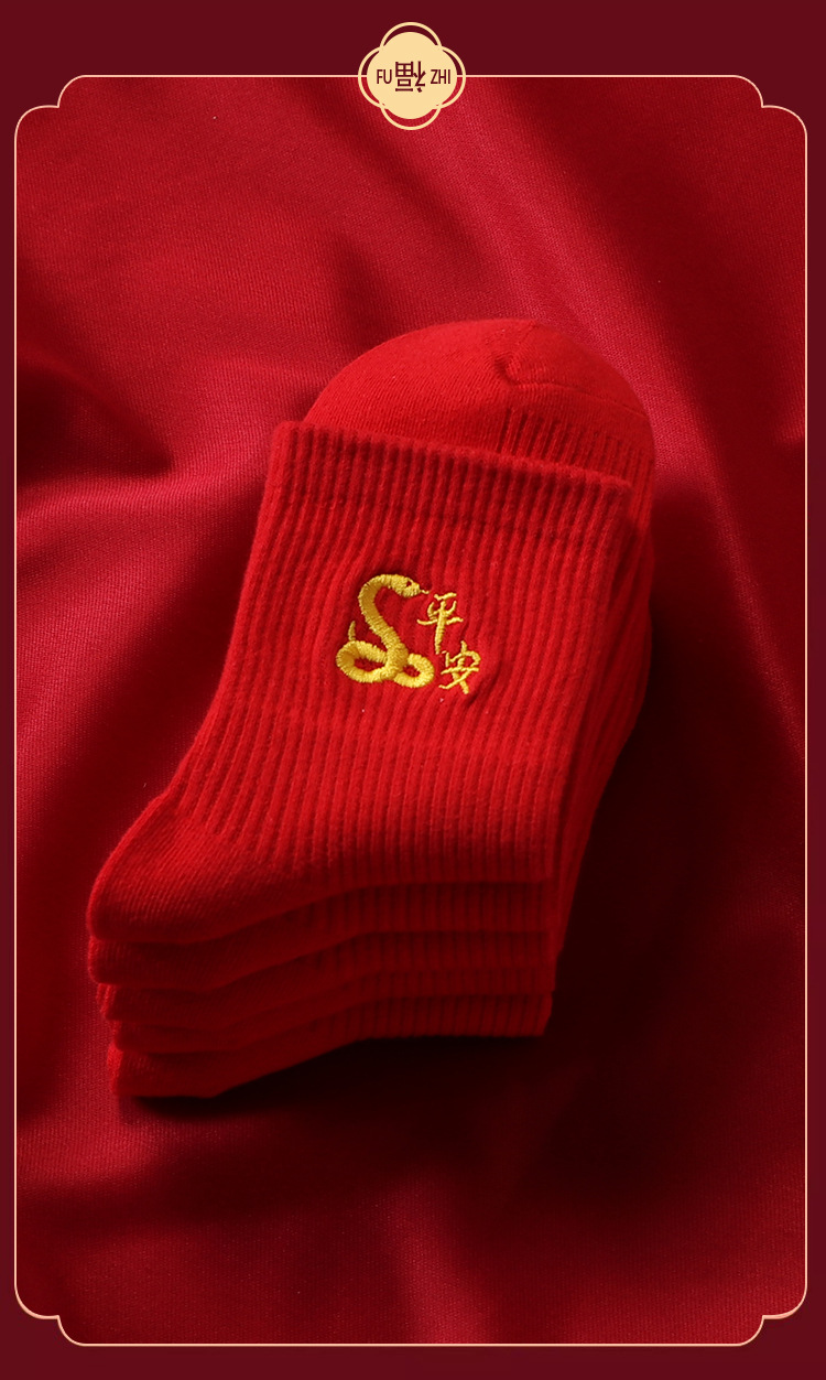 红袜子女款蛇年本命年中筒棉袜刺绣新年大红色情侣结婚福袜