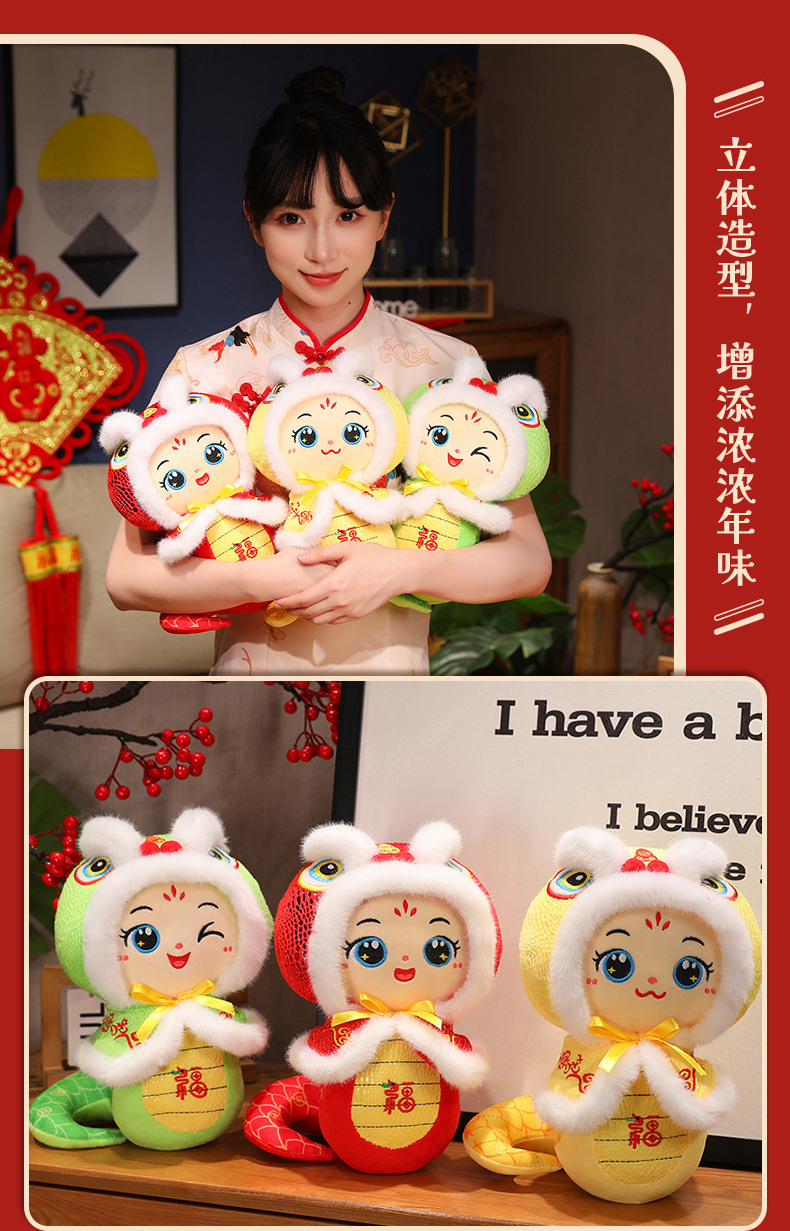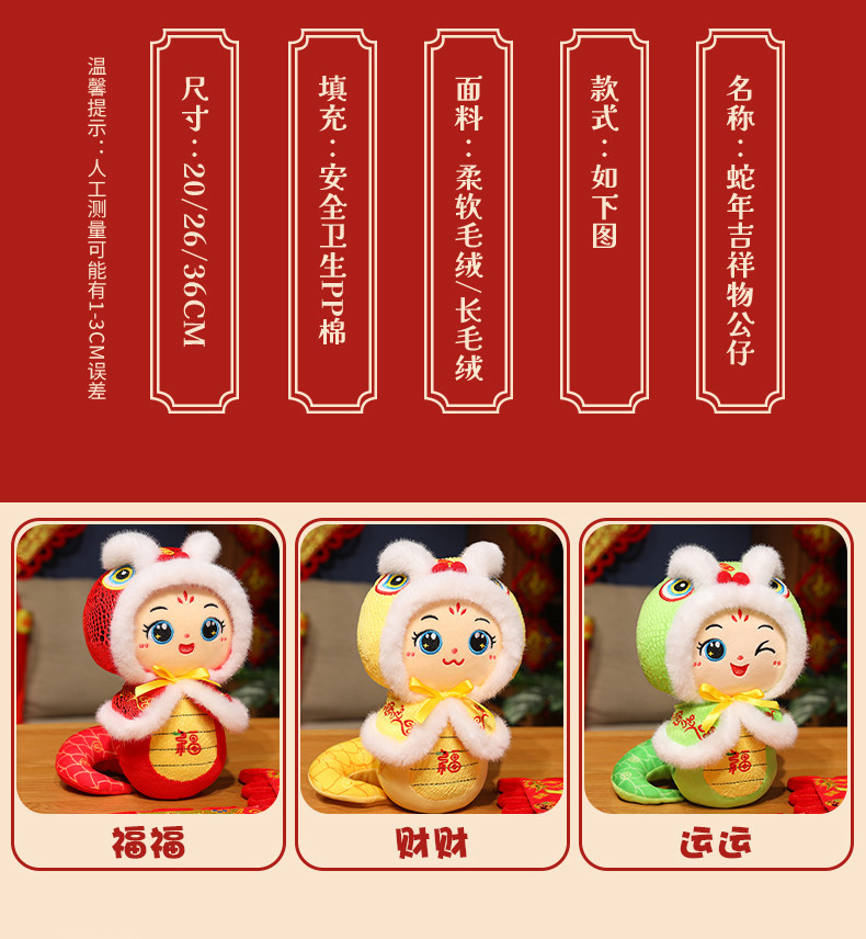 2025蛇年吉祥物公仔毛绒玩具生肖蛇玩偶儿童娃娃公司年会礼品印制