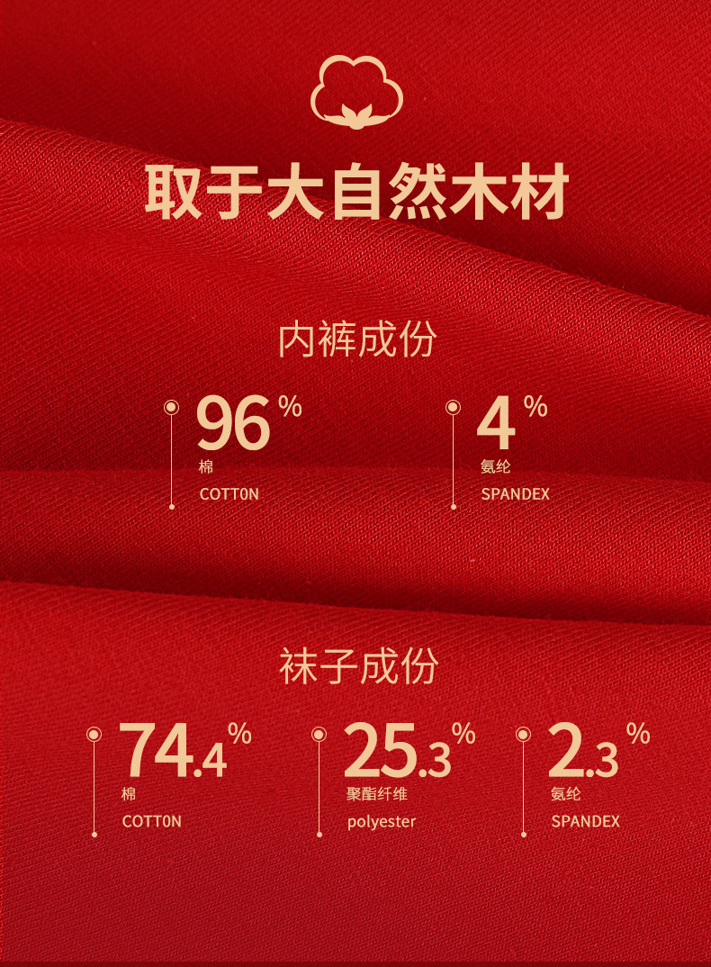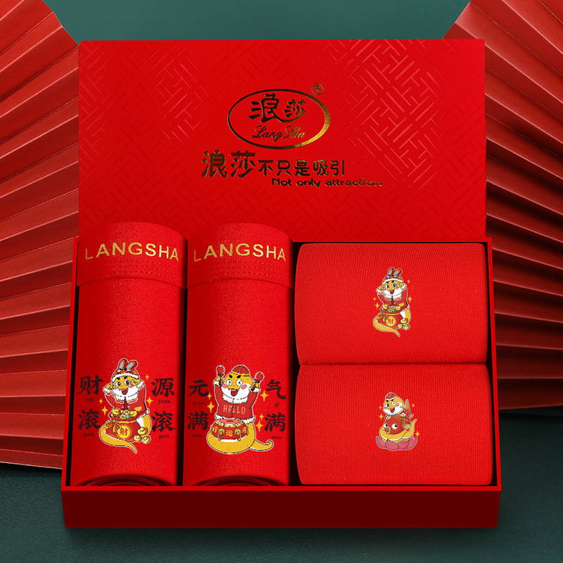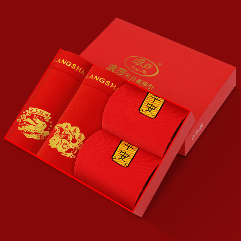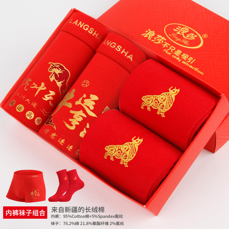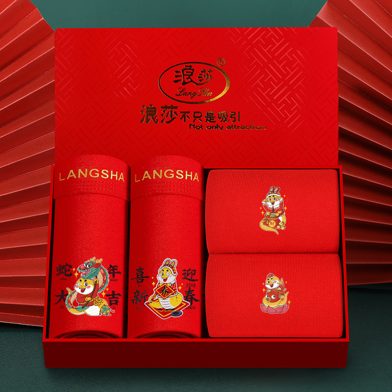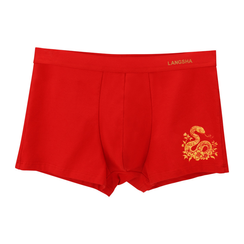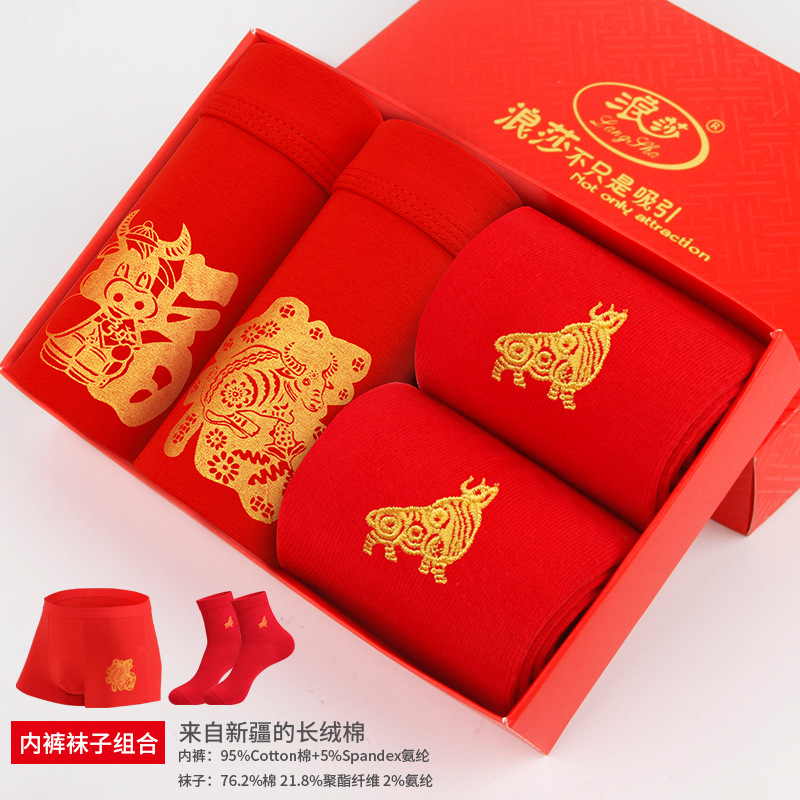 浪莎本命年红内裤男士蛇年纯棉袜子男短裤红色结婚礼物属蛇平角裤