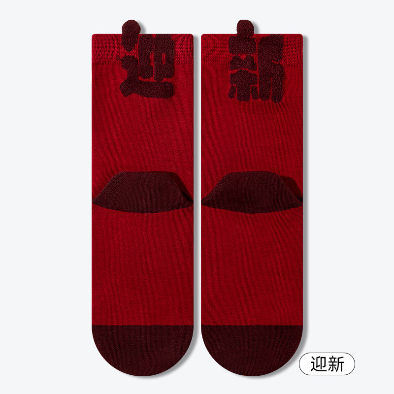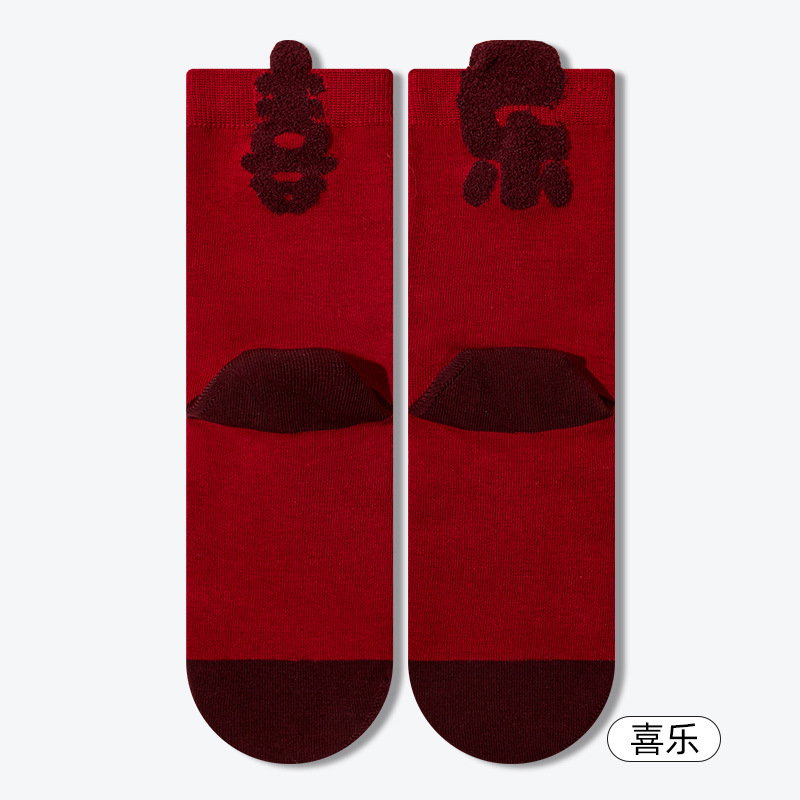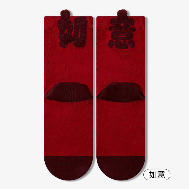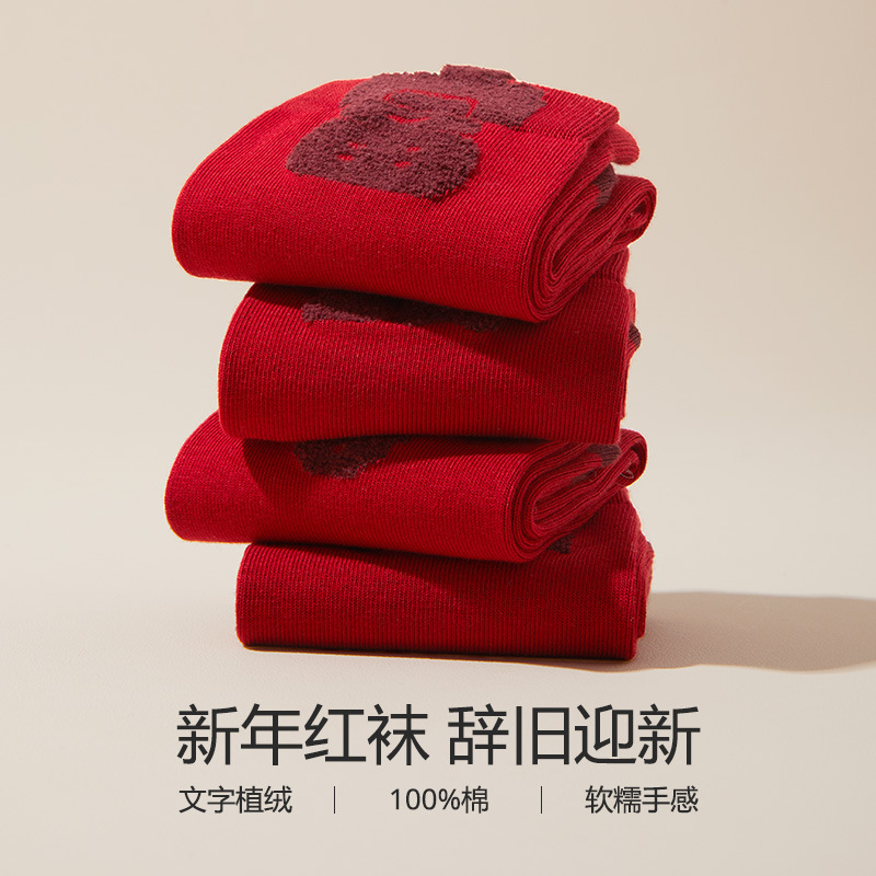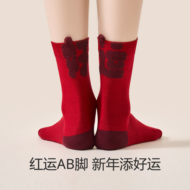 2025蛇年本命年袜子女秋冬季百棉柔软新年袜亲肤舒适弹力中筒袜