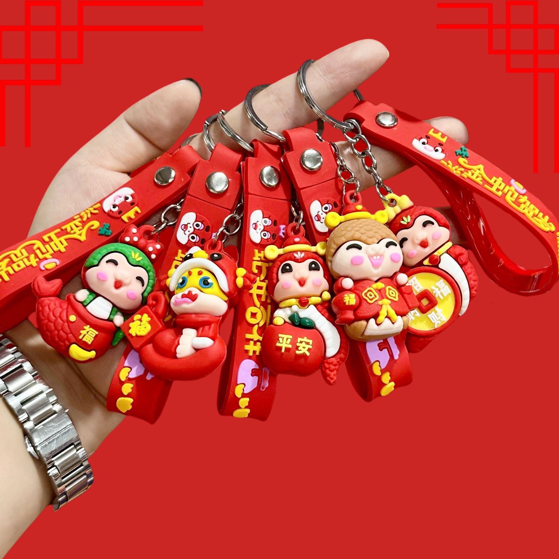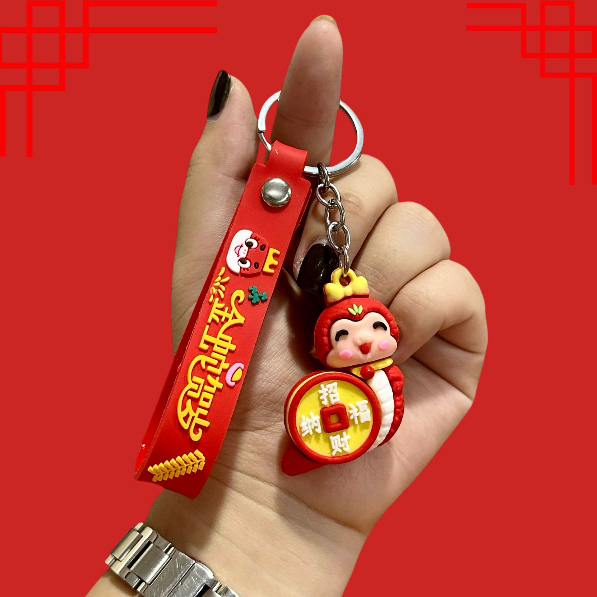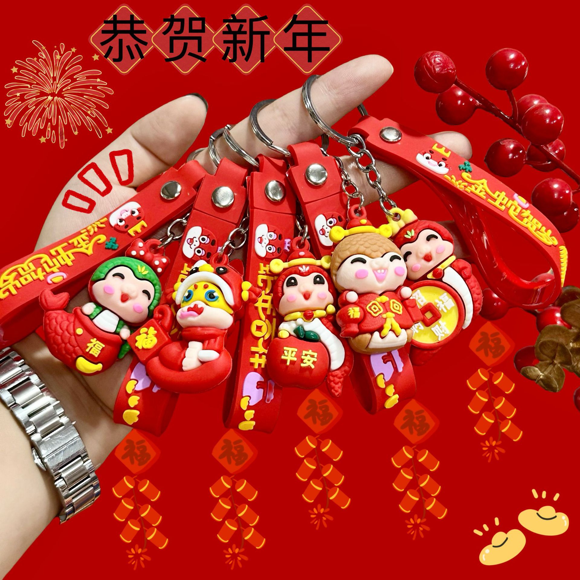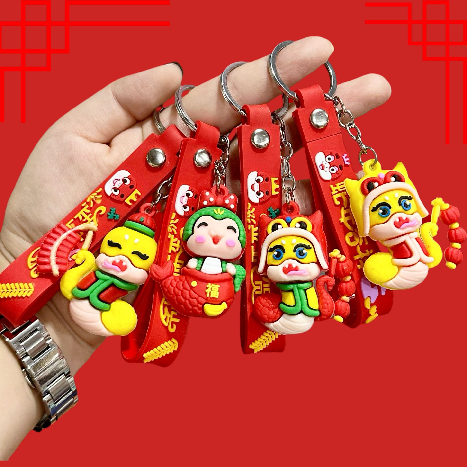 批发卡通2025新年蛇年钥匙扣挂件公仔挂饰立体国潮盲盒钥匙链礼品