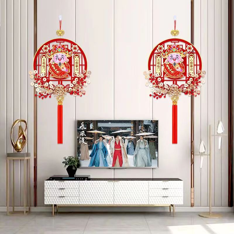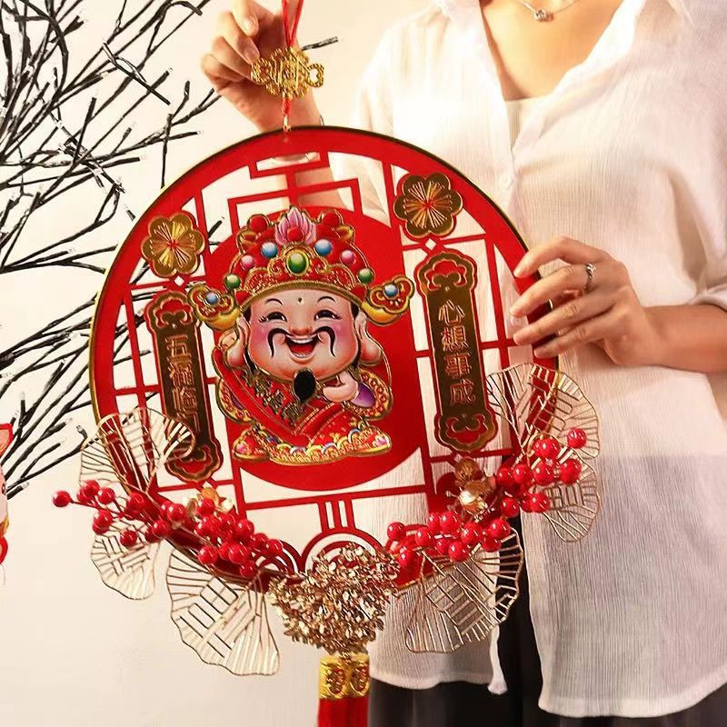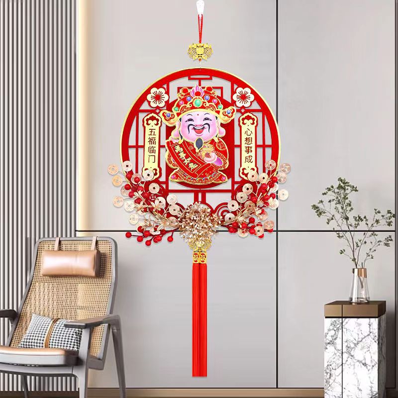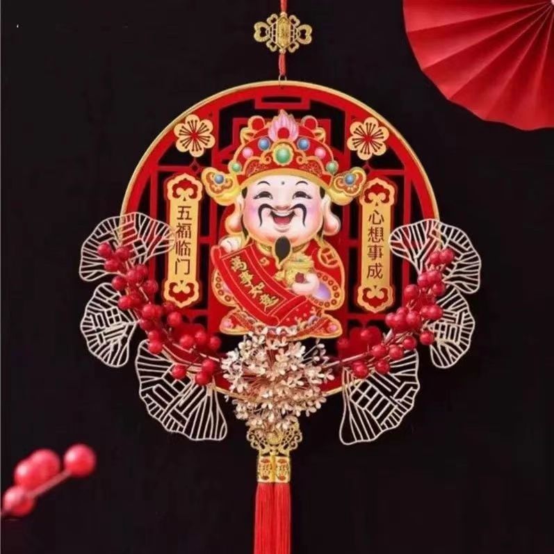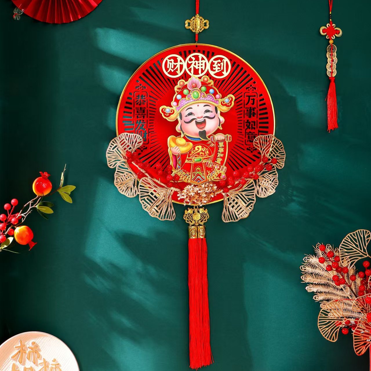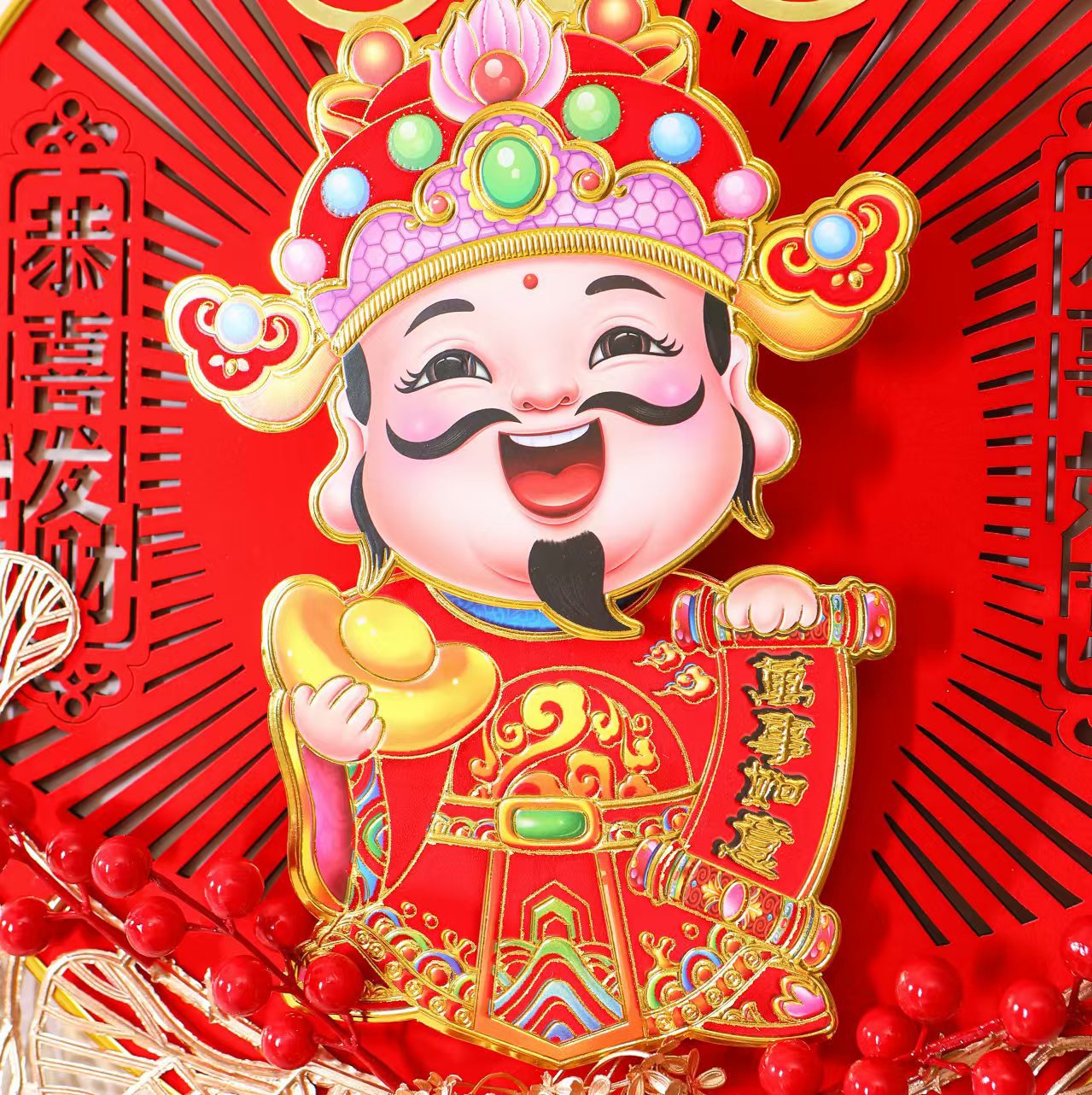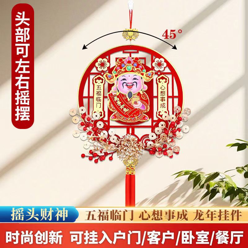 2025新年装饰品蛇年节庆电动摇头财神爷挂件客厅背景墙高档次