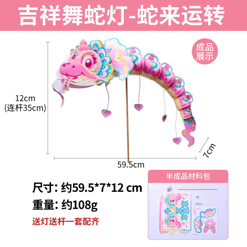 蛇年灯笼吉祥舞蛇灯儿童diy手提蛇灯发光过年新年春节手工花灯