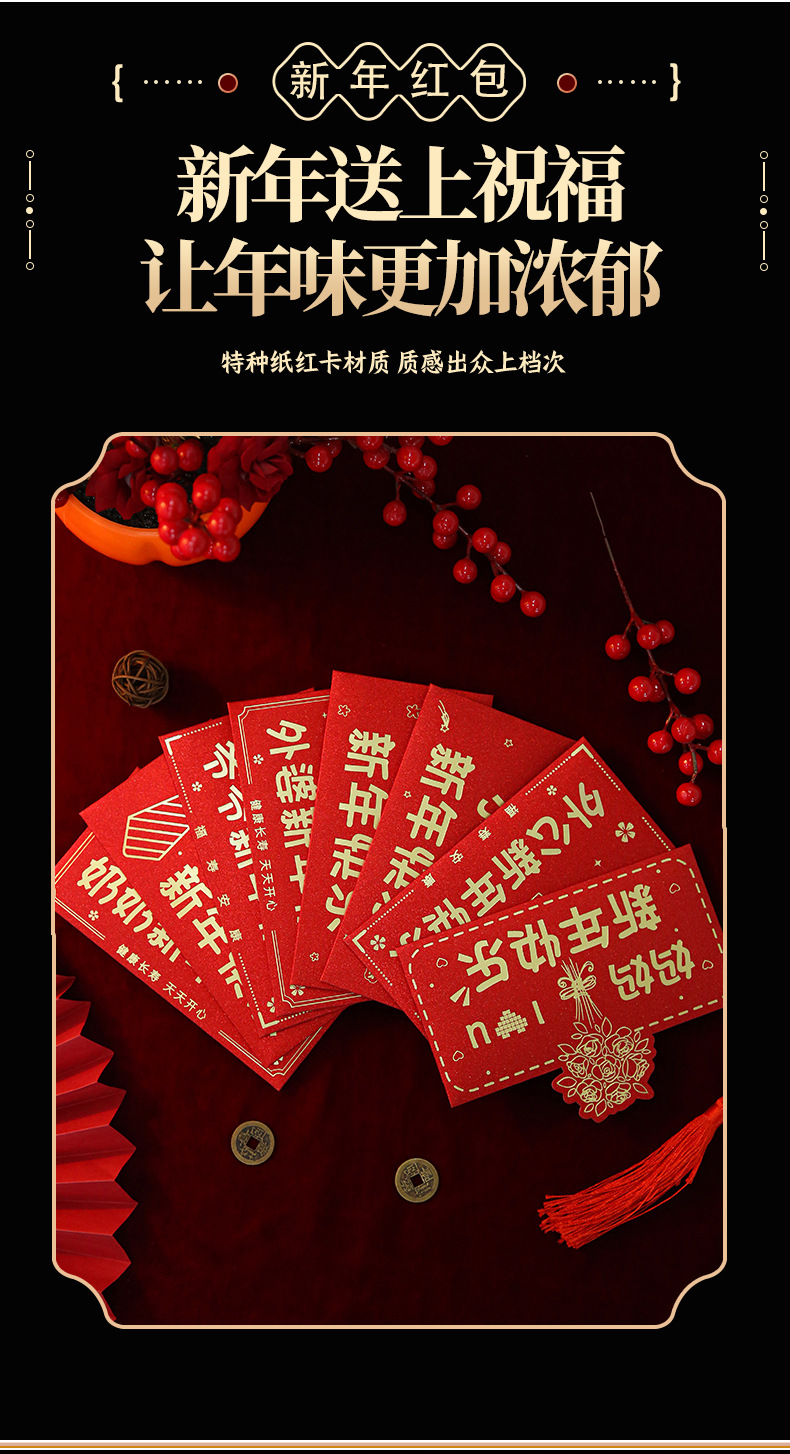 2025蛇年祝福家人新年快乐红包利是封金葱烫金加厚千元百元包