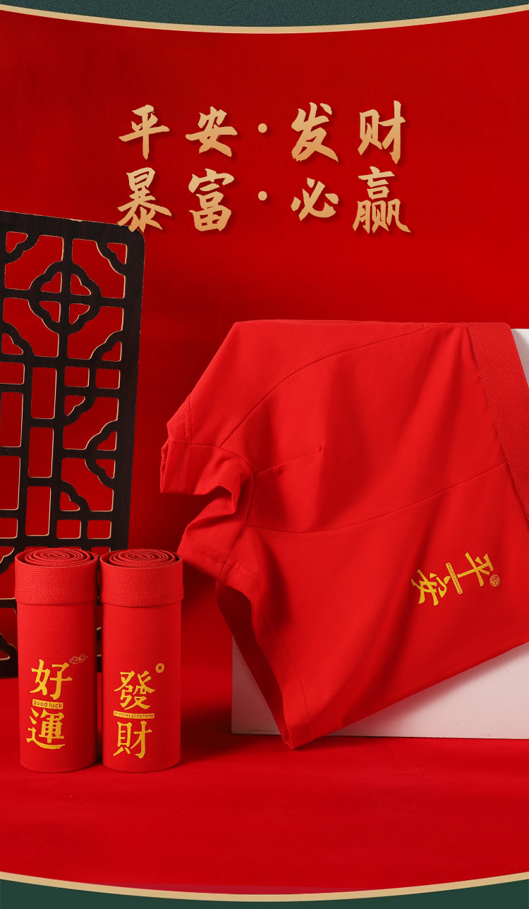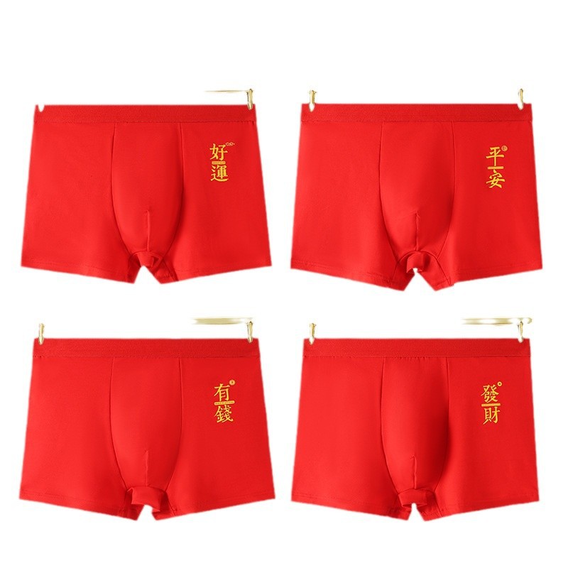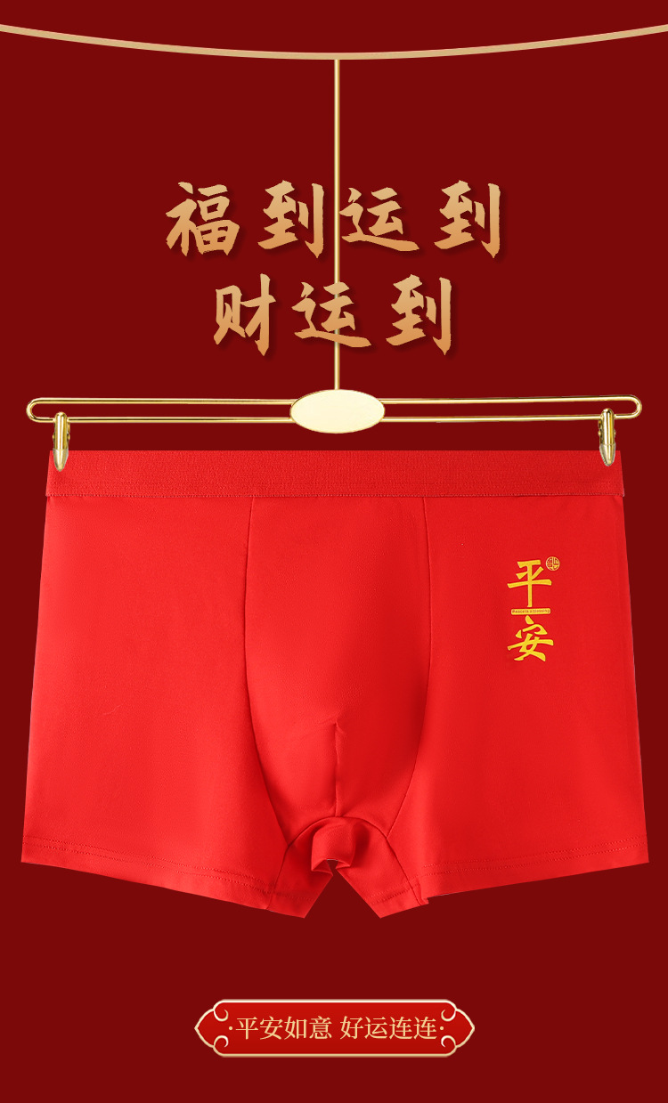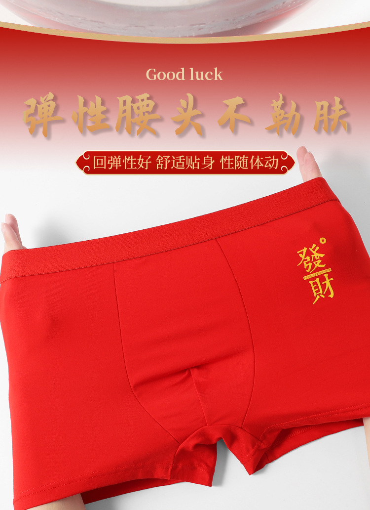 本命年男士内裤蛇年大红中腰平角裤结婚喜庆透气四角裤酒红色裤衩