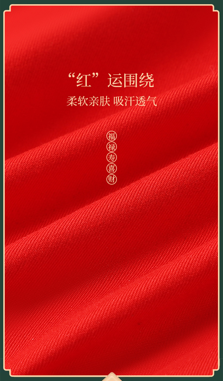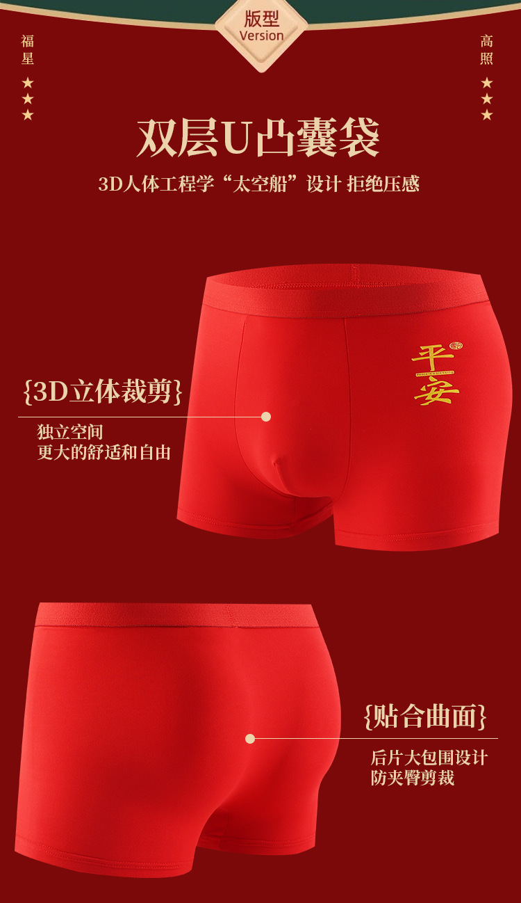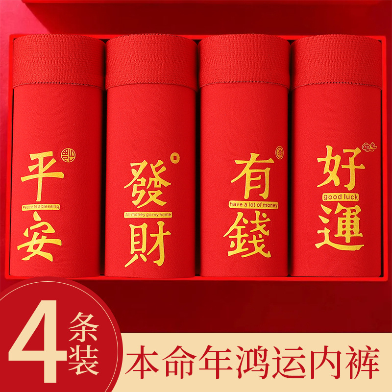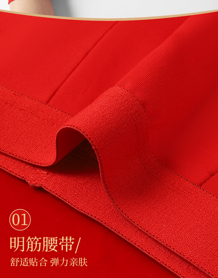 本命年男士内裤蛇年大红中腰平角裤结婚喜庆透气四角裤酒红色裤衩