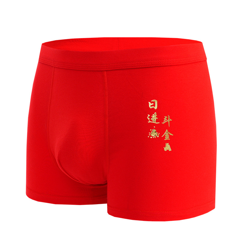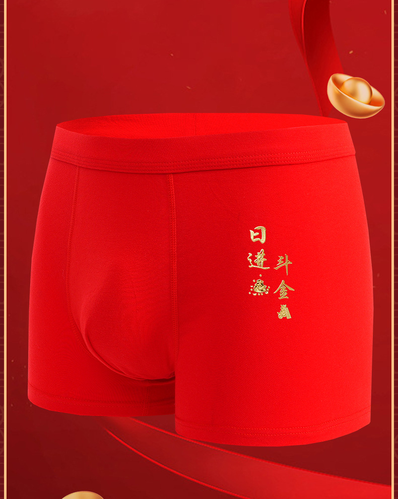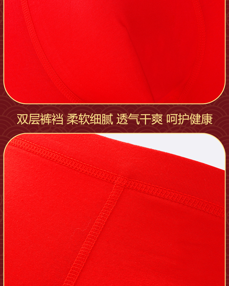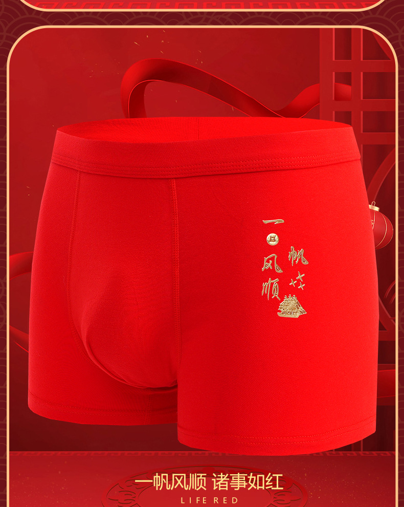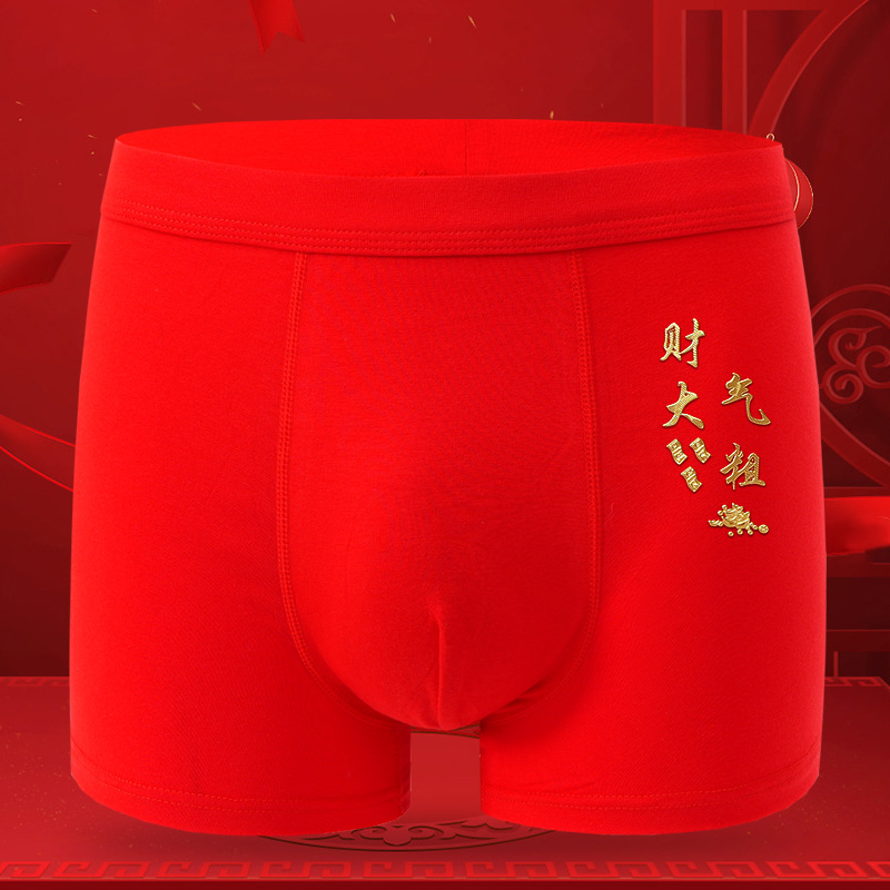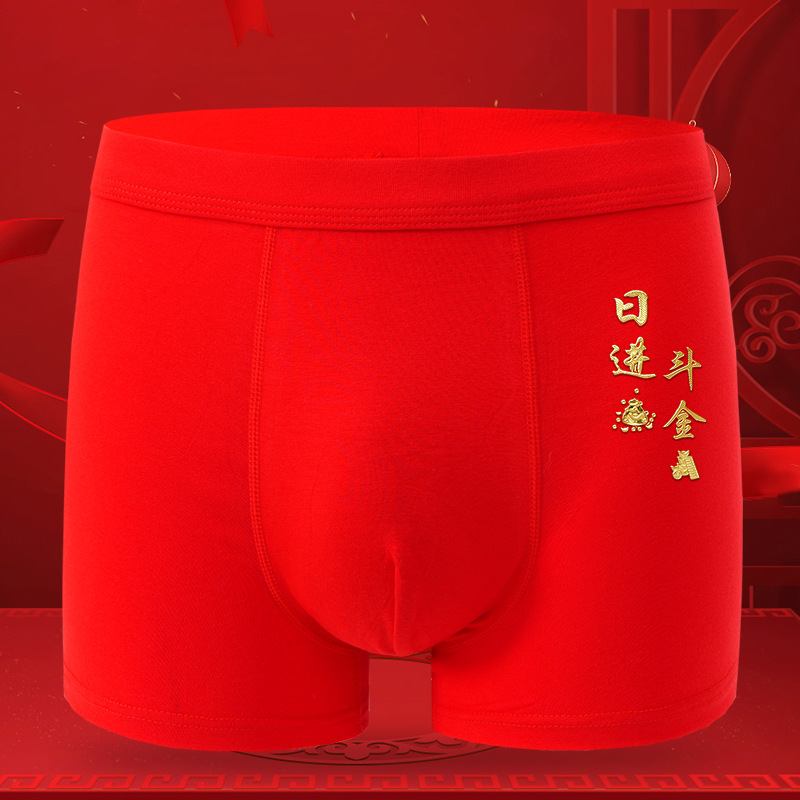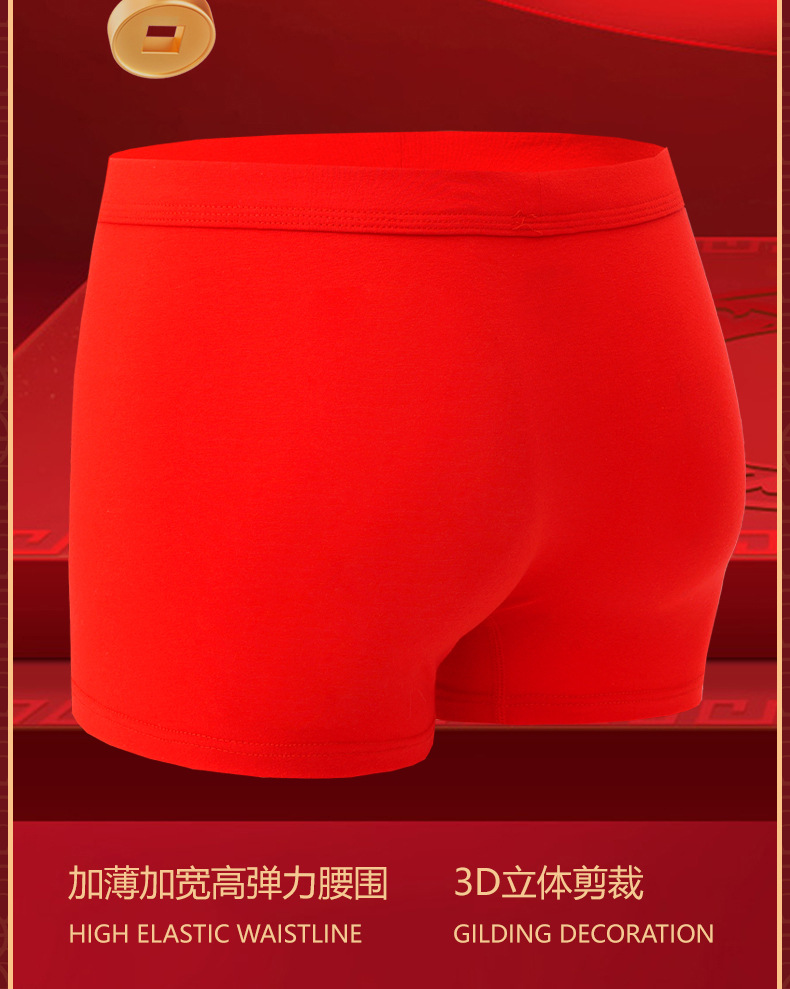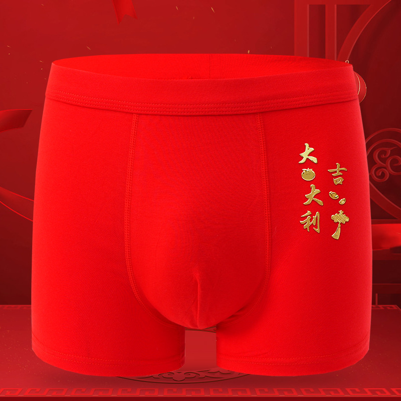 高档男士内裤纯棉大红色本命年四角平角蛇年男人红内裤男款直销