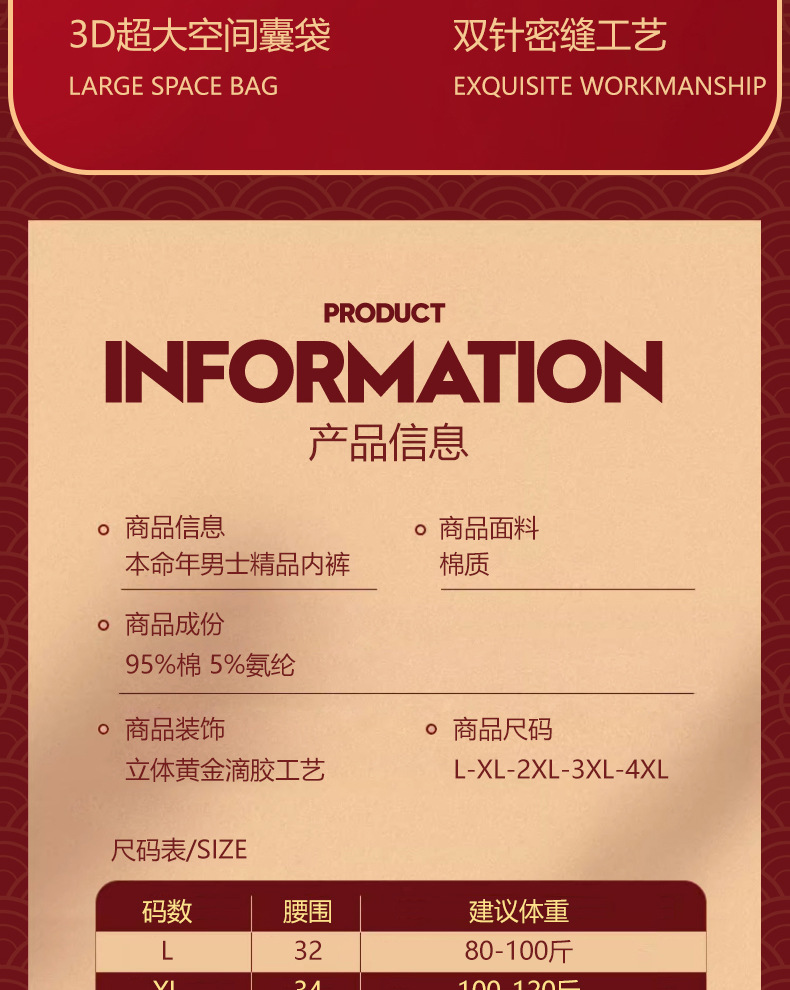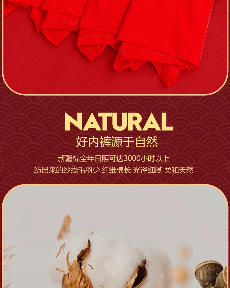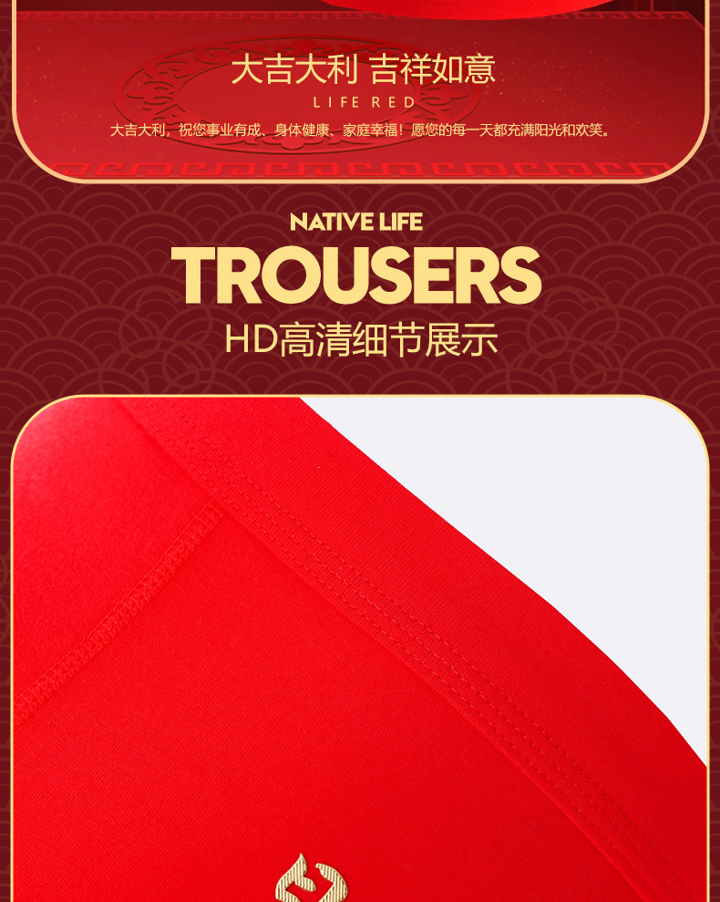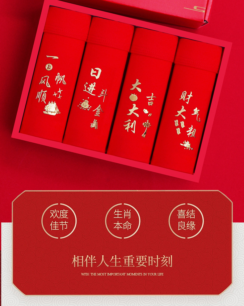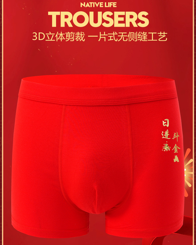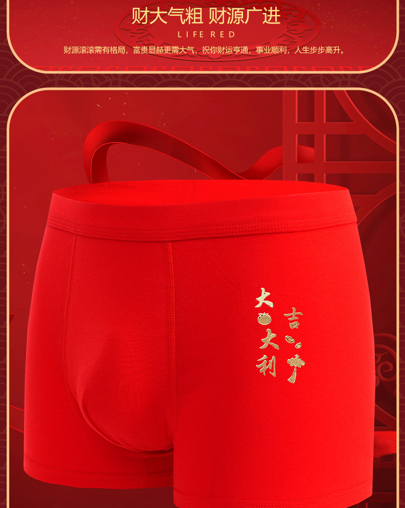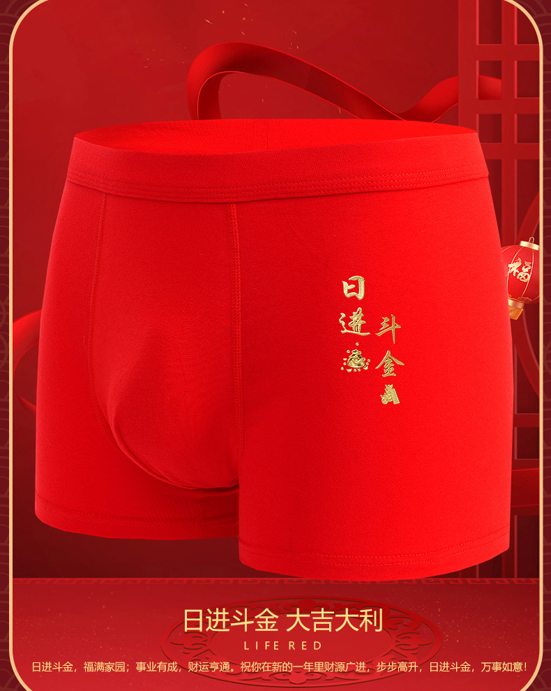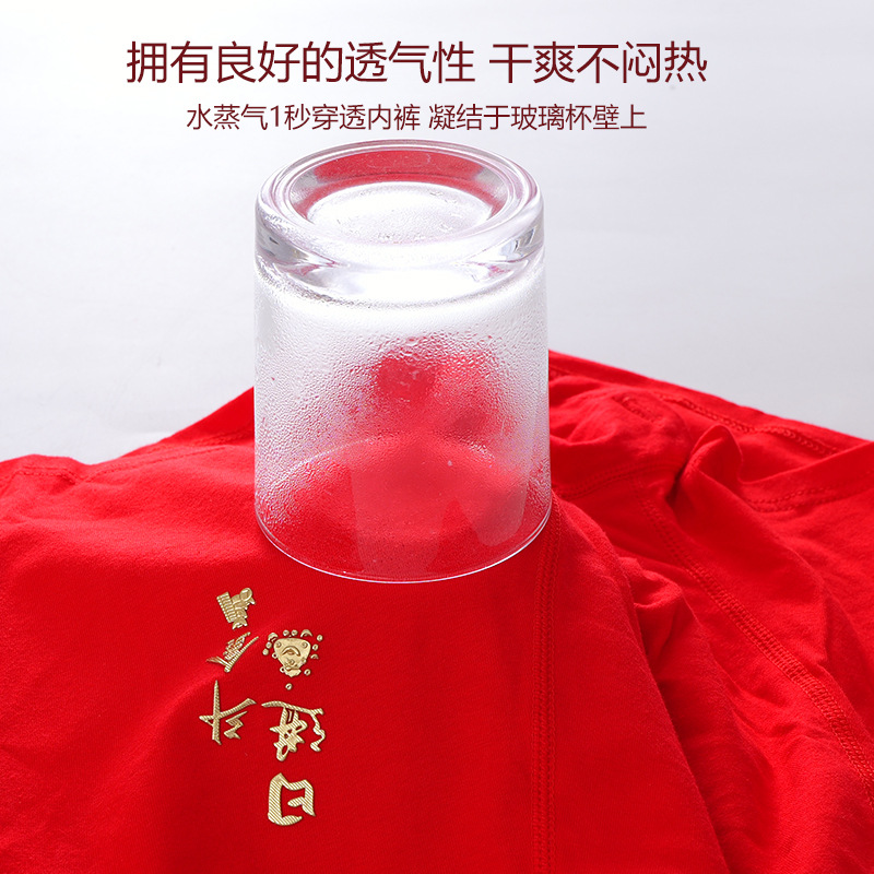 高档男士内裤纯棉大红色本命年四角平角蛇年男人红内裤男款直销