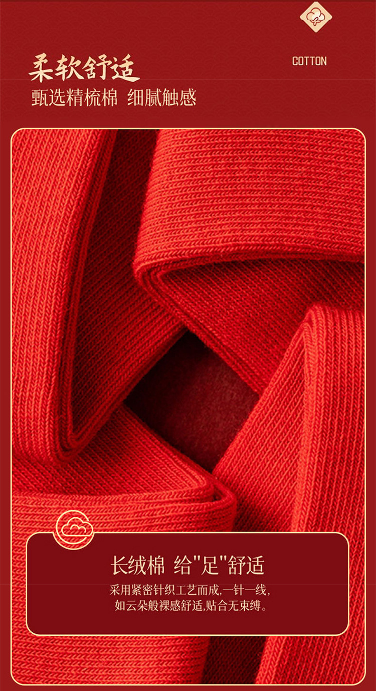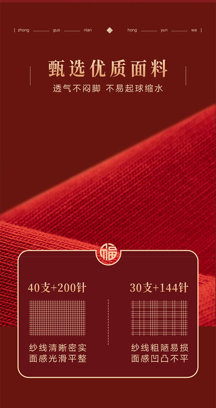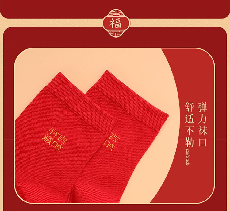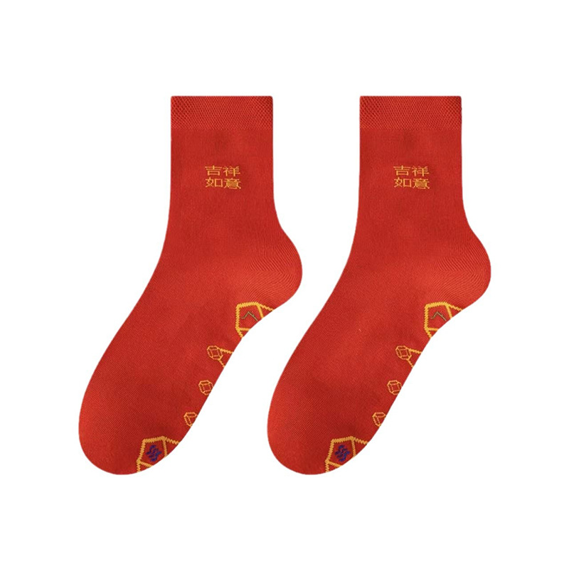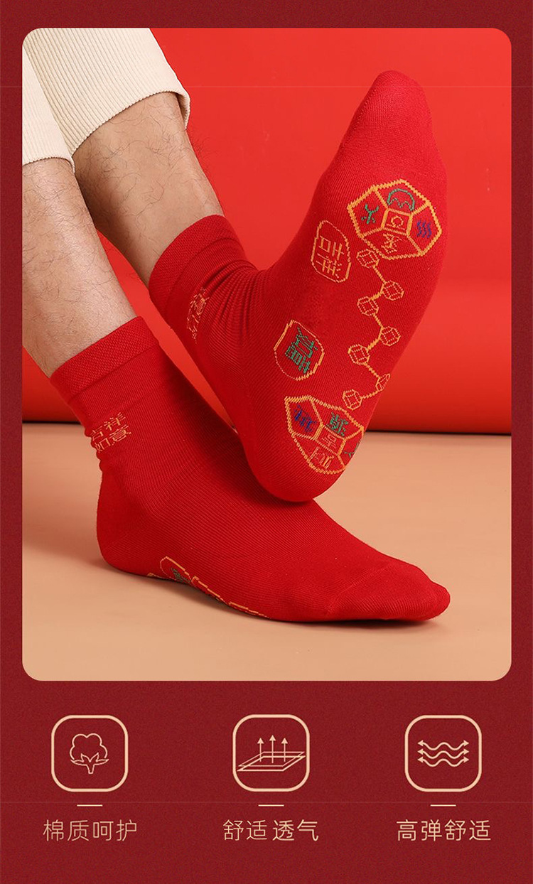脚踏七星大红中筒男女棉袜蛇年本命年结婚七福连珠袜子女工厂批发