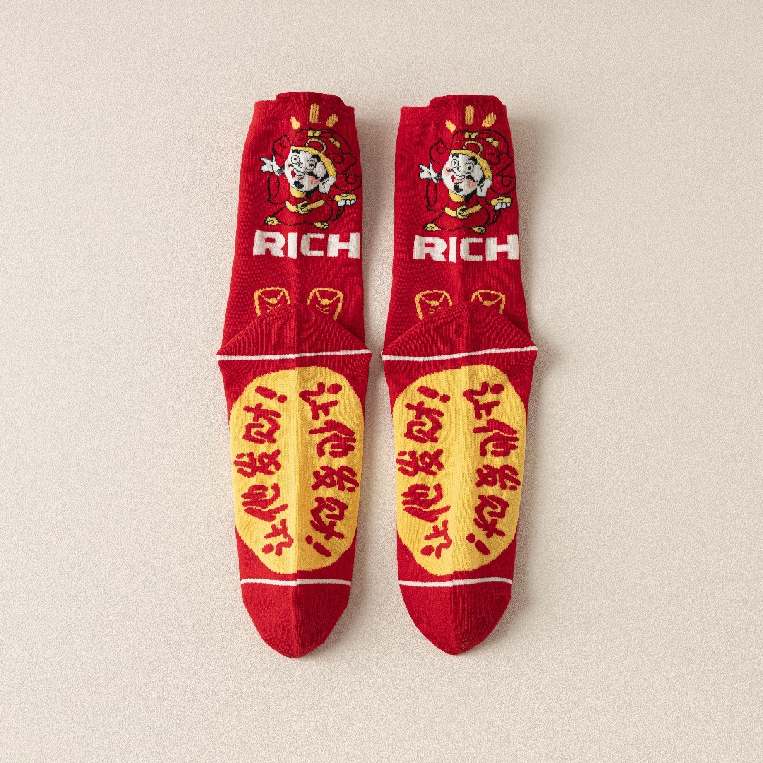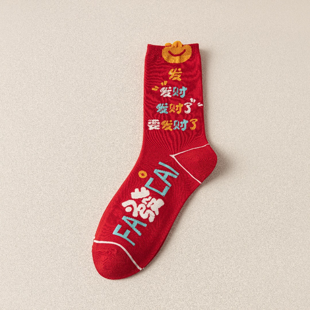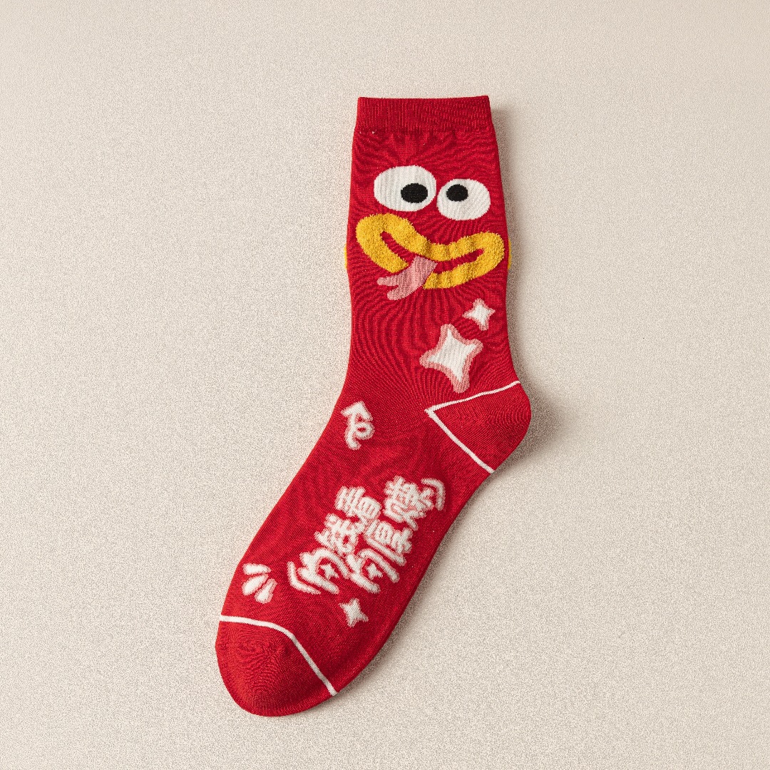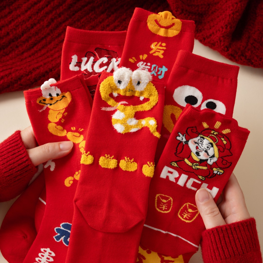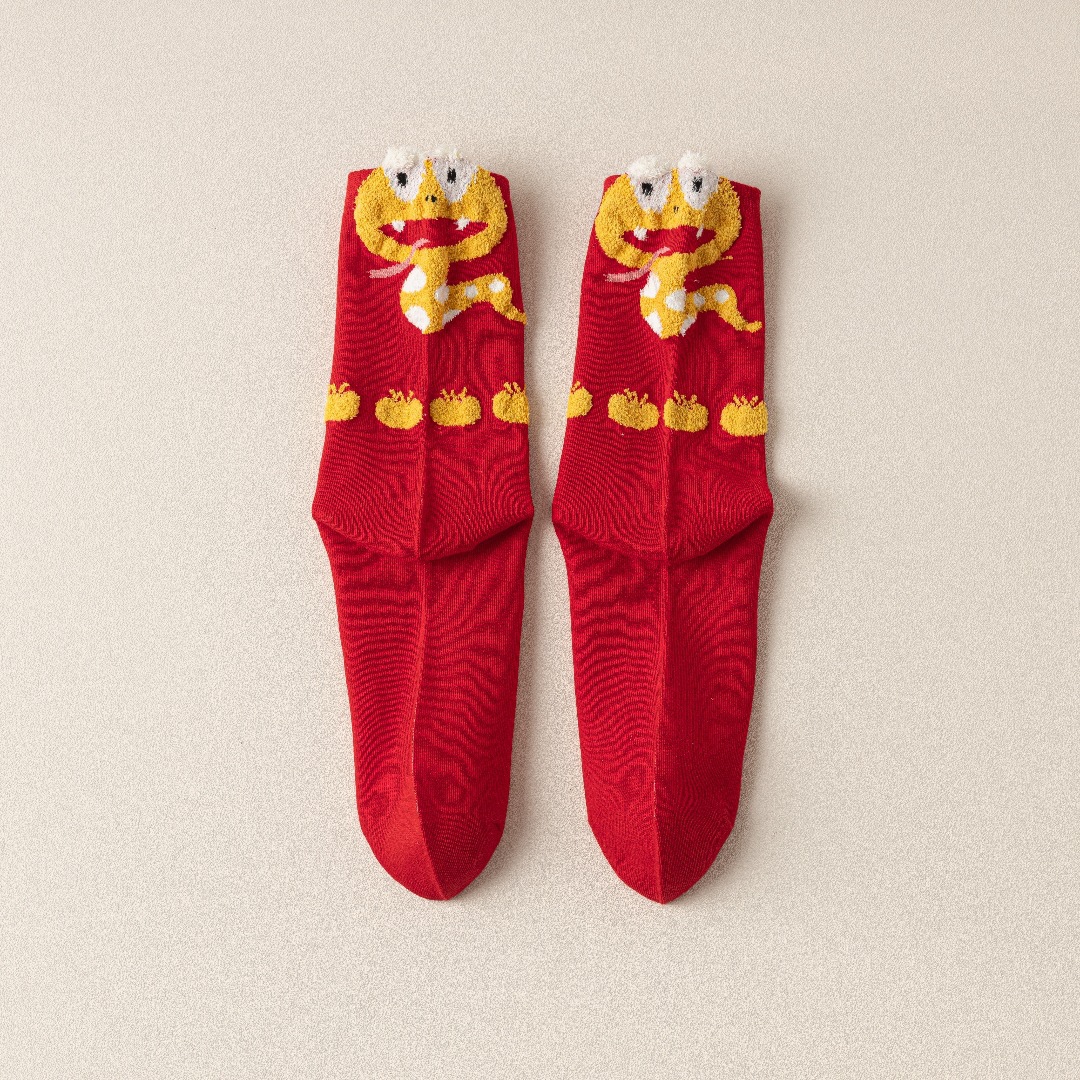 蛇年本命年大红新年袜立体可爱蛇财神国潮文字男女士中筒鸿运袜子